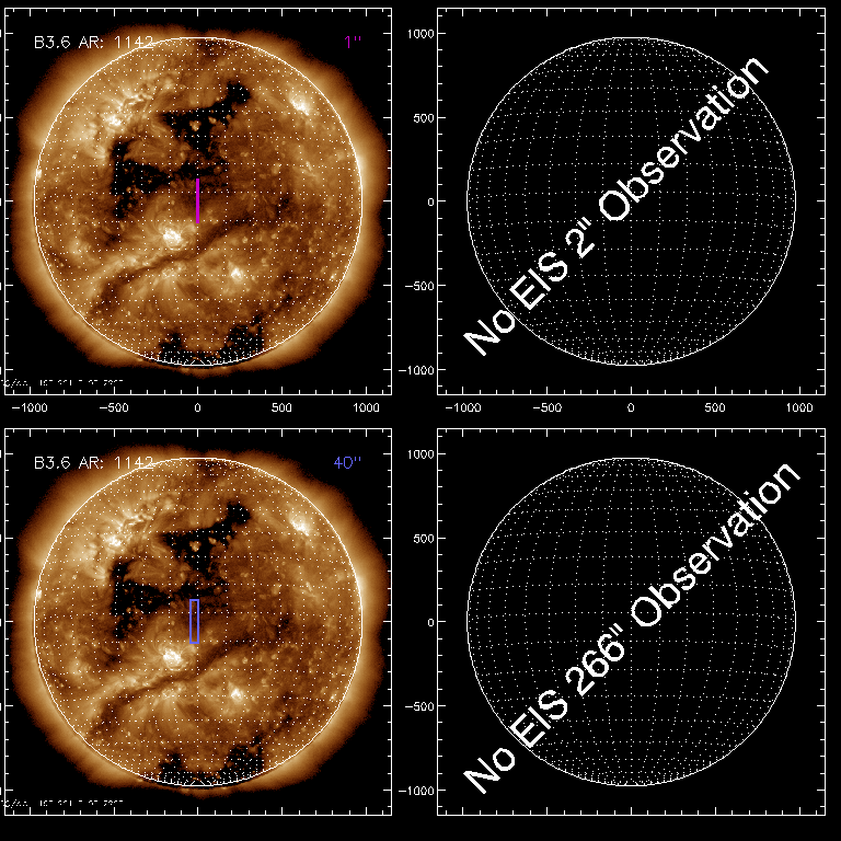 EIS Observation timeline overlay to GOES-Xray curve Code 1" 2" 40" 266" EIS Observations list for this event: STUDY ACRONYM ID DATE OBSERVED DESCRIPTION NOAA# TARGET 0 SYNOP005_A | 20504 | 2011/01/03 18:11:32 | | | Quiet Sun TIMELINE ID DATE OBSERVED FITS FILE XCEN (+W/-E) YCEN (+N/-S) DUR ----------------------------------------------------------------------------------------------------------------- 20504 | 2011/01/03 18:11:32.000 | eis_l0_20110103_181132.fits.gz | -19.44 | -0.50 | 1m30s 20504 | 2011/01/03 18:13:13.000 | eis_l0_20110103_181313.fits.gz | -0.02 | -0.35 | 1m30s : Check study information : Download file : View thumbnails For this event, also check for: