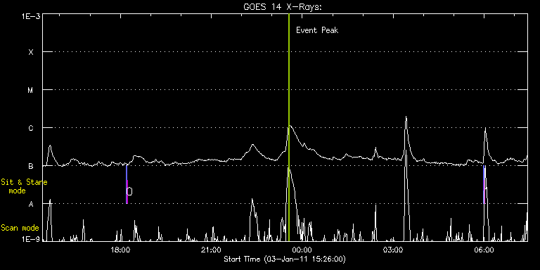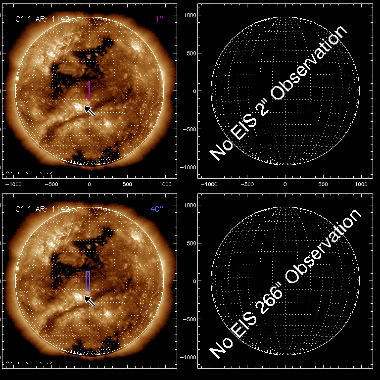 EIS Observation timeline overlay to GOES-Xray curve Code 1" 2" 40" 266" EIS Observations list for this event: STUDY ACRONYM ID DATE OBSERVED DESCRIPTION NOAA# TARGET 0 SYNOP005_A | 20504 | 2011/01/03 18:11:32 | | | Quiet Sun TIMELINE ID DATE OBSERVED FITS FILE XCEN (+W/-E) YCEN (+N/-S) DUR ----------------------------------------------------------------------------------------------------------------- 20504 | 2011/01/03 18:11:32.000 | eis_l0_20110103_181132.fits.gz | -19.44 | -0.50 | 1m30s 20504 | 2011/01/03 18:13:13.000 | eis_l0_20110103_181313.fits.gz | -0.02 | -0.35 | 1m30s 1 SYNOP005_A | 20505 | 2011/01/04 05:58:31 | | | Quiet Sun TIMELINE ID DATE OBSERVED FITS FILE XCEN (+W/-E) YCEN (+N/-S) DUR ----------------------------------------------------------------------------------------------------------------- 20505 | 2011/01/04 05:58:31.000 | eis_l0_20110104_055831.fits.gz | -19.52 | -0.58 | 1m30s 20505 | 2011/01/04 06:00:12.000 | eis_l0_20110104_060012.fits.gz | -0.10 | -0.58 | 1m30s : Check study information : Download file : View thumbnails For this event, also check for: