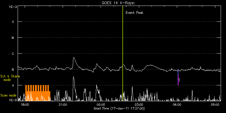 EIS Observation timeline overlay to GOES-Xray curve Code 1" 2" 40" 266" EIS Observations list for this event: STUDY ACRONYM ID DATE OBSERVED DESCRIPTION NOAA# TARGET 0 HH_Flare_180x160_v2 | 20777 | 2011/01/17 18:03:12 | Flaring active region at the E-limb | 1147 | Flare TIMELINE ID DATE OBSERVED FITS FILE XCEN (+W/-E) YCEN (+N/-S) DUR ----------------------------------------------------------------------------------------------------------------- 20777 | 2011/01/17 18:03:12.000 | eis_l0_20110117_180312.fits.gz | -729.58 | 428.84 | 5m46s 20777 | 2011/01/17 18:09:01.000 | eis_l0_20110117_180901.fits.gz | -729.04 | 429.00 | 5m47s 20777 | 2011/01/17 18:14:50.000 | eis_l0_20110117_181450.fits.gz | -728.50 | 428.84 | 5m46s 20777 | 2011/01/17 18:20:39.000 | eis_l0_20110117_182039.fits.gz | -728.04 | 429.15 | 5m47s 20777 | 2011/01/17 18:26:28.000 | eis_l0_20110117_182628.fits.gz | -727.57 | 429.07 | 5m47s 20777 | 2011/01/17 18:32:18.000 | eis_l0_20110117_183218.fits.gz | -727.11 | 429.15 | 5m46s 20777 | 2011/01/17 18:38:07.000 | eis_l0_20110117_183807.fits.gz | -726.57 | 429.15 | 5m47s 20777 | 2011/01/17 18:43:57.000 | eis_l0_20110117_184357.fits.gz | -726.18 | 429.23 | 5m47s 20777 | 2011/01/17 18:49:46.000 | eis_l0_20110117_184946.fits.gz | -725.72 | 429.31 | 5m47s 20777 | 2011/01/17 18:55:36.000 | eis_l0_20110117_185536.fits.gz | -725.18 | 429.31 | 5m47s 20777 | 2011/01/17 19:01:26.000 | eis_l0_20110117_190126.fits.gz | -724.64 | 429.46 | 5m47s 20777 | 2011/01/17 19:07:15.000 | eis_l0_20110117_190715.fits.gz | -724.17 | 429.61 | 5m47s 20777 | 2011/01/17 19:13:04.000 | eis_l0_20110117_191304.fits.gz | -723.71 | 429.54 | 5m47s 20777 | 2011/01/17 19:18:53.000 | eis_l0_20110117_191853.fits.gz | -723.25 | 429.69 | 5m46s 20777 | 2011/01/17 19:24:42.000 | eis_l0_20110117_192442.fits.gz | -722.63 | 429.69 | 5m46s 20777 | 2011/01/17 19:30:31.000 | eis_l0_20110117_193031.fits.gz | -722.17 | 429.61 | 5m46s 20777 | 2011/01/17 19:36:20.000 | eis_l0_20110117_193620.fits.gz | -721.70 | 429.77 | 5m46s 20777 | 2011/01/17 19:42:09.000 | eis_l0_20110117_194209.fits.gz | -721.24 | 429.85 | 5m47s 20777 | 2011/01/17 19:47:59.000 | eis_l0_20110117_194759.fits.gz | -720.85 | 429.92 | 5m47s 20777 | 2011/01/17 19:53:48.000 | eis_l0_20110117_195348.fits.gz | -720.31 | 429.92 | 5m47s 1 SYNOP005_A | 20768 | 2011/01/18 06:03:19 | | | Quiet Sun TIMELINE ID DATE OBSERVED FITS FILE XCEN (+W/-E) YCEN (+N/-S) DUR ----------------------------------------------------------------------------------------------------------------- 20768 | 2011/01/18 06:03:19.000 | eis_l0_20110118_060319.fits.gz | -19.52 | -0.42 | 1m30s 20768 | 2011/01/18 06:05:00.000 | eis_l0_20110118_060500.fits.gz | 0.06 | -0.50 | 1m30s : Check study information : Download file : View thumbnails For this event, also check for: