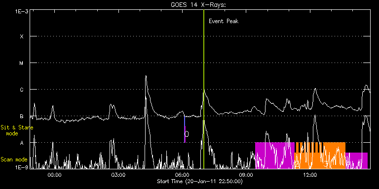 EIS Observation timeline overlay to GOES-Xray curve Code 1" 2" 40" 266" EIS Observations list for this event: STUDY ACRONYM ID DATE OBSERVED DESCRIPTION NOAA# TARGET 0 SYNOP005_A | 20787 | 2011/01/21 06:05:34 | | | Quiet Sun TIMELINE ID DATE OBSERVED FITS FILE XCEN (+W/-E) YCEN (+N/-S) DUR ----------------------------------------------------------------------------------------------------------------- 20787 | 2011/01/21 06:05:34.000 | eis_l0_20110121_060534.fits.gz | -19.44 | -0.50 | 1m30s 20787 | 2011/01/21 06:07:15.000 | eis_l0_20110121_060715.fits.gz | -0.02 | -0.42 | 1m30s 1 HPW021_VEL_240x512v1 | 20803 | 2011/01/21 09:26:07 | Active Region Studies - Warren, Ugarte | 1147 | Active Region TIMELINE ID DATE OBSERVED FITS FILE XCEN (+W/-E) YCEN (+N/-S) DUR ----------------------------------------------------------------------------------------------------------------- 20803 | 2011/01/21 09:26:07.000 | eis_l0_20110121_092607.fits.gz | -119.85 | 475.35 | 1h49m21s 2 IUU_SCAN_STEPS_002 | 20804 | 2011/01/21 11:15:46 | Active Region Studies - Warren, Ugarte | | Active Region TIMELINE ID DATE OBSERVED FITS FILE XCEN (+W/-E) YCEN (+N/-S) DUR ----------------------------------------------------------------------------------------------------------------- 20804 | 2011/01/21 11:15:46.000 | eis_l0_20110121_111546.fits.gz | -105.79 | 475.65 | 5m24s 20804 | 2011/01/21 11:21:14.000 | eis_l0_20110121_112114.fits.gz | -105.02 | 475.42 | 5m23s 20804 | 2011/01/21 11:26:40.000 | eis_l0_20110121_112640.fits.gz | -104.24 | 475.58 | 5m24s 20804 | 2011/01/21 11:32:07.000 | eis_l0_20110121_113207.fits.gz | -103.47 | 475.65 | 5m24s 20804 | 2011/01/21 11:37:34.000 | eis_l0_20110121_113734.fits.gz | -102.70 | 475.73 | 5m23s 20804 | 2011/01/21 11:43:01.000 | eis_l0_20110121_114301.fits.gz | -101.93 | 475.65 | 5m23s 20804 | 2011/01/21 11:48:28.000 | eis_l0_20110121_114828.fits.gz | -101.15 | 475.65 | 5m23s 20804 | 2011/01/21 11:53:54.000 | eis_l0_20110121_115354.fits.gz | -100.46 | 475.65 | 5m24s 20804 | 2011/01/21 11:59:21.000 | eis_l0_20110121_115921.fits.gz | -99.69 | 475.73 | 5m24s 20804 | 2011/01/21 12:04:48.000 | eis_l0_20110121_120448.fits.gz | -98.99 | 475.65 | 5m23s 20804 | 2011/01/21 12:10:15.000 | eis_l0_20110121_121015.fits.gz | -98.14 | 475.73 | 5m23s 20804 | 2011/01/21 12:15:41.000 | eis_l0_20110121_121541.fits.gz | -97.45 | 475.89 | 5m24s 20804 | 2011/01/21 12:21:08.000 | eis_l0_20110121_122108.fits.gz | -96.67 | 475.89 | 5m24s 20804 | 2011/01/21 12:26:35.000 | eis_l0_20110121_122635.fits.gz | -95.98 | 475.81 | 5m23s 20804 | 2011/01/21 12:32:02.000 | eis_l0_20110121_123202.fits.gz | -95.13 | 475.89 | 5m23s 3 Atlas_60 | 20805 | 2011/01/21 12:37:57 | Active Region Studies - Warren, Ugarte | 1147 | Quiet Sun TIMELINE ID DATE OBSERVED FITS FILE XCEN (+W/-E) YCEN (+N/-S) DUR ----------------------------------------------------------------------------------------------------------------- 20805 | 2011/01/21 12:37:57.000 | eis_l0_20110121_123757.fits.gz | -93.20 | 475.81 | 1h1m39s 4 HPW021_VEL_120x512v1 | 20806 | 2011/01/21 13:39:54 | HPW021 Compression Test with Q65 | 1147 | Active Region TIMELINE ID DATE OBSERVED FITS FILE XCEN (+W/-E) YCEN (+N/-S) DUR ----------------------------------------------------------------------------------------------------------------- 20806 | 2011/01/21 13:39:54.000 | eis_l0_20110121_133954.fits.gz | -84.64 | 475.96 | 1h1m53s : Check study information : Download file : View thumbnails For this event, also check for: