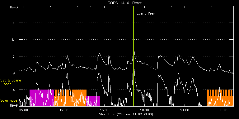 EIS Observation timeline overlay to GOES-Xray curve Code 1" 2" 40" 266" EIS Observations list for this event: STUDY ACRONYM ID DATE OBSERVED DESCRIPTION NOAA# TARGET 0 HPW021_VEL_240x512v1 | 20803 | 2011/01/21 09:26:07 | Active Region Studies - Warren, Ugarte | 1147 | Active Region TIMELINE ID DATE OBSERVED FITS FILE XCEN (+W/-E) YCEN (+N/-S) DUR ----------------------------------------------------------------------------------------------------------------- 20803 | 2011/01/21 09:26:07.000 | eis_l0_20110121_092607.fits.gz | -119.85 | 475.35 | 1h49m21s 1 IUU_SCAN_STEPS_002 | 20804 | 2011/01/21 11:15:46 | Active Region Studies - Warren, Ugarte | | Active Region TIMELINE ID DATE OBSERVED FITS FILE XCEN (+W/-E) YCEN (+N/-S) DUR ----------------------------------------------------------------------------------------------------------------- 20804 | 2011/01/21 11:15:46.000 | eis_l0_20110121_111546.fits.gz | -105.79 | 475.65 | 5m24s 20804 | 2011/01/21 11:21:14.000 | eis_l0_20110121_112114.fits.gz | -105.02 | 475.42 | 5m23s 20804 | 2011/01/21 11:26:40.000 | eis_l0_20110121_112640.fits.gz | -104.24 | 475.58 | 5m24s 20804 | 2011/01/21 11:32:07.000 | eis_l0_20110121_113207.fits.gz | -103.47 | 475.65 | 5m24s 20804 | 2011/01/21 11:37:34.000 | eis_l0_20110121_113734.fits.gz | -102.70 | 475.73 | 5m23s 20804 | 2011/01/21 11:43:01.000 | eis_l0_20110121_114301.fits.gz | -101.93 | 475.65 | 5m23s 20804 | 2011/01/21 11:48:28.000 | eis_l0_20110121_114828.fits.gz | -101.15 | 475.65 | 5m23s 20804 | 2011/01/21 11:53:54.000 | eis_l0_20110121_115354.fits.gz | -100.46 | 475.65 | 5m24s 20804 | 2011/01/21 11:59:21.000 | eis_l0_20110121_115921.fits.gz | -99.69 | 475.73 | 5m24s 20804 | 2011/01/21 12:04:48.000 | eis_l0_20110121_120448.fits.gz | -98.99 | 475.65 | 5m23s 20804 | 2011/01/21 12:10:15.000 | eis_l0_20110121_121015.fits.gz | -98.14 | 475.73 | 5m23s 20804 | 2011/01/21 12:15:41.000 | eis_l0_20110121_121541.fits.gz | -97.45 | 475.89 | 5m24s 20804 | 2011/01/21 12:21:08.000 | eis_l0_20110121_122108.fits.gz | -96.67 | 475.89 | 5m24s 20804 | 2011/01/21 12:26:35.000 | eis_l0_20110121_122635.fits.gz | -95.98 | 475.81 | 5m23s 20804 | 2011/01/21 12:32:02.000 | eis_l0_20110121_123202.fits.gz | -95.13 | 475.89 | 5m23s 2 Atlas_60 | 20805 | 2011/01/21 12:37:57 | Active Region Studies - Warren, Ugarte | 1147 | Quiet Sun TIMELINE ID DATE OBSERVED FITS FILE XCEN (+W/-E) YCEN (+N/-S) DUR ----------------------------------------------------------------------------------------------------------------- 20805 | 2011/01/21 12:37:57.000 | eis_l0_20110121_123757.fits.gz | -93.20 | 475.81 | 1h1m39s 3 HPW021_VEL_120x512v1 | 20806 | 2011/01/21 13:39:54 | HPW021 Compression Test with Q65 | 1147 | Active Region TIMELINE ID DATE OBSERVED FITS FILE XCEN (+W/-E) YCEN (+N/-S) DUR ----------------------------------------------------------------------------------------------------------------- 20806 | 2011/01/21 13:39:54.000 | eis_l0_20110121_133954.fits.gz | -84.64 | 475.96 | 1h1m53s 4 HH_Flare_180x160_v2 | 20795 | 2011/01/21 22:40:27 | observe flaring active region | | Flare TIMELINE ID DATE OBSERVED FITS FILE XCEN (+W/-E) YCEN (+N/-S) DUR ----------------------------------------------------------------------------------------------------------------- 20795 | 2011/01/21 22:40:27.000 | eis_l0_20110121_224027.fits.gz | 918.03 | -430.46 | 5m46s 20795 | 2011/01/21 22:46:16.000 | eis_l0_20110121_224616.fits.gz | 917.88 | -430.23 | 5m47s 20795 | 2011/01/21 22:52:06.000 | eis_l0_20110121_225206.fits.gz | 917.80 | -430.39 | 5m46s 20795 | 2011/01/21 22:57:55.000 | eis_l0_20110121_225755.fits.gz | 917.96 | -430.39 | 5m47s 20795 | 2011/01/21 23:03:45.000 | eis_l0_20110121_230345.fits.gz | 917.96 | -430.46 | 5m46s 20795 | 2011/01/21 23:09:34.000 | eis_l0_20110121_230934.fits.gz | 917.88 | -430.39 | 5m46s 20795 | 2011/01/21 23:15:23.000 | eis_l0_20110121_231523.fits.gz | 918.03 | -430.39 | 5m47s 20795 | 2011/01/21 23:21:13.000 | eis_l0_20110121_232113.fits.gz | 917.96 | -430.46 | 5m46s 20795 | 2011/01/21 23:27:02.000 | eis_l0_20110121_232702.fits.gz | 917.96 | -430.31 | 5m47s 20795 | 2011/01/21 23:32:51.000 | eis_l0_20110121_233251.fits.gz | 917.96 | -430.39 | 5m46s 20795 | 2011/01/21 23:38:40.000 | eis_l0_20110121_233840.fits.gz | 917.88 | -430.31 | 5m47s 20795 | 2011/01/21 23:44:29.000 | eis_l0_20110121_234429.fits.gz | 917.96 | -430.39 | 5m47s 20795 | 2011/01/21 23:50:19.000 | eis_l0_20110121_235019.fits.gz | 917.96 | -430.39 | 5m46s 20795 | 2011/01/21 23:56:08.000 | eis_l0_20110121_235608.fits.gz | 917.96 | -430.31 | 5m47s 20795 | 2011/01/22 00:01:58.000 | eis_l0_20110122_000158.fits.gz | 917.88 | -430.31 | 5m47s 20795 | 2011/01/22 00:07:47.000 | eis_l0_20110122_000747.fits.gz | 917.96 | -430.39 | 5m47s 20795 | 2011/01/22 00:13:37.000 | eis_l0_20110122_001337.fits.gz | 917.88 | -430.23 | 5m47s 20795 | 2011/01/22 00:19:27.000 | eis_l0_20110122_001927.fits.gz | 917.96 | -430.31 | 5m47s 20795 | 2011/01/22 00:25:16.000 | eis_l0_20110122_002516.fits.gz | 917.96 | -430.46 | 5m47s 20795 | 2011/01/22 00:31:06.000 | eis_l0_20110122_003106.fits.gz | 917.96 | -430.39 | 5m46s : Check study information : Download file : View thumbnails For this event, also check for: