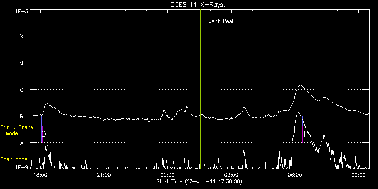 EIS Observation timeline overlay to GOES-Xray curve Code 1" 2" 40" 266" EIS Observations list for this event: STUDY ACRONYM ID DATE OBSERVED DESCRIPTION NOAA# TARGET 0 SYNOP005_A | 20815 | 2011/01/23 18:03:14 | Synoptic | | Quiet Sun TIMELINE ID DATE OBSERVED FITS FILE XCEN (+W/-E) YCEN (+N/-S) DUR ----------------------------------------------------------------------------------------------------------------- 20815 | 2011/01/23 18:03:14.000 | eis_l0_20110123_180314.fits.gz | -19.52 | -0.42 | 1m30s 20815 | 2011/01/23 18:04:55.000 | eis_l0_20110123_180455.fits.gz | -0.02 | -0.42 | 1m30s 1 SYNOP005_A | 20816 | 2011/01/24 06:19:33 | Synoptic | | Quiet Sun TIMELINE ID DATE OBSERVED FITS FILE XCEN (+W/-E) YCEN (+N/-S) DUR ----------------------------------------------------------------------------------------------------------------- 20816 | 2011/01/24 06:19:33.000 | eis_l0_20110124_061933.fits.gz | -19.52 | -0.58 | 1m30s 20816 | 2011/01/24 06:21:14.000 | eis_l0_20110124_062114.fits.gz | -0.02 | -0.50 | 1m30s : Check study information : Download file : View thumbnails For this event, also check for: