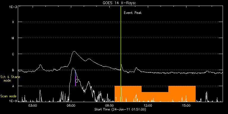 EIS Observation timeline overlay to GOES-Xray curve Code 1" 2" 40" 266" EIS Observations list for this event: STUDY ACRONYM ID DATE OBSERVED DESCRIPTION NOAA# TARGET 0 SYNOP005_A | 20816 | 2011/01/24 06:19:33 | Synoptic | | Quiet Sun TIMELINE ID DATE OBSERVED FITS FILE XCEN (+W/-E) YCEN (+N/-S) DUR ----------------------------------------------------------------------------------------------------------------- 20816 | 2011/01/24 06:19:33.000 | eis_l0_20110124_061933.fits.gz | -19.52 | -0.58 | 1m30s 20816 | 2011/01/24 06:21:14.000 | eis_l0_20110124_062114.fits.gz | -0.02 | -0.50 | 1m30s 1 cam_ar_limb_lite_v2 | 20812 | 2011/01/24 09:24:26 | AR Temperature Diagnostic - Mason | 1147 | Active Region TIMELINE ID DATE OBSERVED FITS FILE XCEN (+W/-E) YCEN (+N/-S) DUR ----------------------------------------------------------------------------------------------------------------- 20812 | 2011/01/24 09:24:26.000 | eis_l0_20110124_092426.fits.gz | 537.31 | 413.47 | 2h6m1s 20812 | 2011/01/24 11:30:33.000 | eis_l0_20110124_113033.fits.gz | 552.06 | 412.47 | 2h6m1s 20812 | 2011/01/24 13:36:39.000 | eis_l0_20110124_133639.fits.gz | 566.35 | 411.38 | 2h6m1s : Check study information : Download file : View thumbnails For this event, also check for: