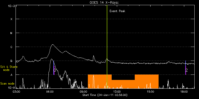 EIS Observation timeline overlay to GOES-Xray curve Code 1" 2" 40" 266" EIS Observations list for this event: STUDY ACRONYM ID DATE OBSERVED DESCRIPTION NOAA# TARGET 0 SYNOP005_A | 20816 | 2011/01/24 06:19:33 | Synoptic | | Quiet Sun TIMELINE ID DATE OBSERVED FITS FILE XCEN (+W/-E) YCEN (+N/-S) DUR ----------------------------------------------------------------------------------------------------------------- 20816 | 2011/01/24 06:19:33.000 | eis_l0_20110124_061933.fits.gz | -19.52 | -0.58 | 1m30s 20816 | 2011/01/24 06:21:14.000 | eis_l0_20110124_062114.fits.gz | -0.02 | -0.50 | 1m30s 1 cam_ar_limb_lite_v2 | 20812 | 2011/01/24 09:24:26 | AR Temperature Diagnostic - Mason | 1147 | Active Region TIMELINE ID DATE OBSERVED FITS FILE XCEN (+W/-E) YCEN (+N/-S) DUR ----------------------------------------------------------------------------------------------------------------- 20812 | 2011/01/24 09:24:26.000 | eis_l0_20110124_092426.fits.gz | 537.31 | 413.47 | 2h6m1s 20812 | 2011/01/24 11:30:33.000 | eis_l0_20110124_113033.fits.gz | 552.06 | 412.47 | 2h6m1s 20812 | 2011/01/24 13:36:39.000 | eis_l0_20110124_133639.fits.gz | 566.35 | 411.38 | 2h6m1s 2 SYNOP005_A | 20817 | 2011/01/24 18:07:19 | Synoptic | | Quiet Sun TIMELINE ID DATE OBSERVED FITS FILE XCEN (+W/-E) YCEN (+N/-S) DUR ----------------------------------------------------------------------------------------------------------------- 20817 | 2011/01/24 18:07:19.000 | eis_l0_20110124_180719.fits.gz | -19.44 | -0.58 | 1m30s 20817 | 2011/01/24 18:09:00.000 | eis_l0_20110124_180900.fits.gz | -0.02 | -0.58 | 1m30s : Check study information : Download file : View thumbnails For this event, also check for: