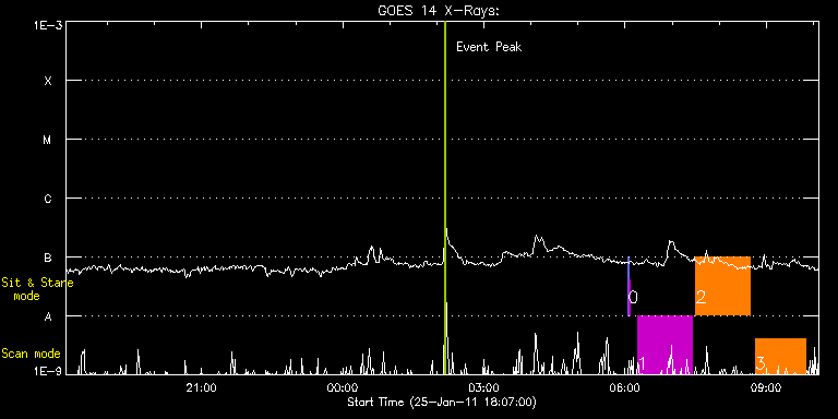 EIS Observation timeline overlay to GOES-Xray curve Code 1" 2" 40" 266" EIS Observations list for this event: STUDY ACRONYM ID DATE OBSERVED DESCRIPTION NOAA# TARGET 0 SYNOP005_A | 20831 | 2011/01/26 06:03:34 | Synoptic observations | | Quiet Sun TIMELINE ID DATE OBSERVED FITS FILE XCEN (+W/-E) YCEN (+N/-S) DUR ----------------------------------------------------------------------------------------------------------------- 20831 | 2011/01/26 06:03:34.000 | eis_l0_20110126_060334.fits.gz | -19.52 | -0.73 | 1m30s 20831 | 2011/01/26 06:05:15.000 | eis_l0_20110126_060515.fits.gz | -0.02 | -0.50 | 1m31s 1 prom_rast_v1 | 20827 | 2011/01/26 06:15:40 | Prominence observation - Berger | | Eruptive Filame TIMELINE ID DATE OBSERVED FITS FILE XCEN (+W/-E) YCEN (+N/-S) DUR ----------------------------------------------------------------------------------------------------------------- 20827 | 2011/01/26 06:15:40.000 | eis_l0_20110126_061540.fits.gz | 698.07 | -655.25 | 1h9m45s 2 BL_SUMER_EIS_p2 | 20828 | 2011/01/26 07:30:26 | Prominence observation - Berger | | Quiet Sun TIMELINE ID DATE OBSERVED FITS FILE XCEN (+W/-E) YCEN (+N/-S) DUR ----------------------------------------------------------------------------------------------------------------- 20828 | 2011/01/26 07:30:26.000 | eis_l0_20110126_073026.fits.gz | 697.50 | -655.25 | 1h9m27s 3 GDZ_PLUME1_2_300_50s | 20829 | 2011/01/26 08:45:40 | Prominence observation - Berger | | Coronal Hole TIMELINE ID DATE OBSERVED FITS FILE XCEN (+W/-E) YCEN (+N/-S) DUR ----------------------------------------------------------------------------------------------------------------- 20829 | 2011/01/26 08:45:40.000 | eis_l0_20110126_084540.fits.gz | 696.75 | -655.17 | 1h4m53s : Check study information : Download file : View thumbnails For this event, also check for: