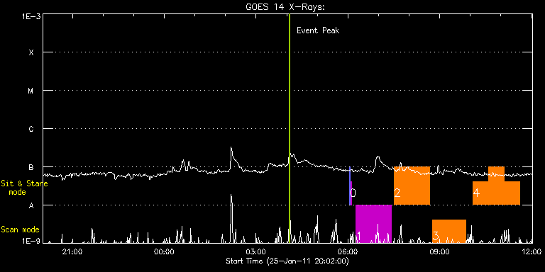 EIS Observation timeline overlay to GOES-Xray curve Code 1" 2" 40" 266" EIS Observations list for this event: STUDY ACRONYM ID DATE OBSERVED DESCRIPTION NOAA# TARGET 0 SYNOP005_A | 20831 | 2011/01/26 06:03:34 | Synoptic observations | | Quiet Sun TIMELINE ID DATE OBSERVED FITS FILE XCEN (+W/-E) YCEN (+N/-S) DUR ----------------------------------------------------------------------------------------------------------------- 20831 | 2011/01/26 06:03:34.000 | eis_l0_20110126_060334.fits.gz | -19.52 | -0.73 | 1m30s 20831 | 2011/01/26 06:05:15.000 | eis_l0_20110126_060515.fits.gz | -0.02 | -0.50 | 1m31s 1 prom_rast_v1 | 20827 | 2011/01/26 06:15:40 | Prominence observation - Berger | | Eruptive Filame TIMELINE ID DATE OBSERVED FITS FILE XCEN (+W/-E) YCEN (+N/-S) DUR ----------------------------------------------------------------------------------------------------------------- 20827 | 2011/01/26 06:15:40.000 | eis_l0_20110126_061540.fits.gz | 698.07 | -655.25 | 1h9m45s 2 BL_SUMER_EIS_p2 | 20828 | 2011/01/26 07:30:26 | Prominence observation - Berger | | Quiet Sun TIMELINE ID DATE OBSERVED FITS FILE XCEN (+W/-E) YCEN (+N/-S) DUR ----------------------------------------------------------------------------------------------------------------- 20828 | 2011/01/26 07:30:26.000 | eis_l0_20110126_073026.fits.gz | 697.50 | -655.25 | 1h9m27s 3 GDZ_PLUME1_2_300_50s | 20829 | 2011/01/26 08:45:40 | Prominence observation - Berger | | Coronal Hole TIMELINE ID DATE OBSERVED FITS FILE XCEN (+W/-E) YCEN (+N/-S) DUR ----------------------------------------------------------------------------------------------------------------- 20829 | 2011/01/26 08:45:40.000 | eis_l0_20110126_084540.fits.gz | 696.75 | -655.17 | 1h4m53s 4 YKK_EqCHab_st | 20823 | 2011/01/26 10:05:13 | EIS observations for the STEREO-Earth | | Quiet Sun TIMELINE ID DATE OBSERVED FITS FILE XCEN (+W/-E) YCEN (+N/-S) DUR ----------------------------------------------------------------------------------------------------------------- 20823 | 2011/01/26 10:05:13.000 | eis_l0_20110126_100513.fits.gz | -10109.90 | -9963.20 | 30m21s 20823 | 2011/01/26 10:35:40.000 | eis_l0_20110126_103540.fits.gz | -10109.90 | -9963.20 | 30m21s 20823 | 2011/01/26 11:06:06.000 | eis_l0_20110126_110606.fits.gz | -10109.90 | -9963.20 | 30m21s : Check study information : Download file : View thumbnails For this event, also check for: