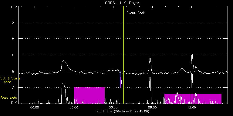 EIS Observation timeline overlay to GOES-Xray curve Code 1" 2" 40" 266" EIS Observations list for this event: STUDY ACRONYM ID DATE OBSERVED DESCRIPTION NOAA# TARGET 0 SYNOP006 | 20834 | 2011/01/27 03:00:40 | Synoptic observations | 1147 | Quiet Sun TIMELINE ID DATE OBSERVED FITS FILE XCEN (+W/-E) YCEN (+N/-S) DUR ----------------------------------------------------------------------------------------------------------------- 20834 | 2011/01/27 03:00:40.000 | eis_l0_20110127_030040.fits.gz | 866.31 | 370.98 | 2h19m2s 1 SYNOP005_A | 20833 | 2011/01/27 06:31:33 | Synoptic observations | | Quiet Sun TIMELINE ID DATE OBSERVED FITS FILE XCEN (+W/-E) YCEN (+N/-S) DUR ----------------------------------------------------------------------------------------------------------------- 20833 | 2011/01/27 06:31:33.000 | eis_l0_20110127_063133.fits.gz | -19.60 | -0.58 | 1m30s 20833 | 2011/01/27 06:33:14.000 | eis_l0_20110127_063314.fits.gz | -0.02 | -0.58 | 1m30s 2 PRY_loop_velocity | 20848 | 2011/01/27 09:55:40 | Outflows from Small Active Regions - Y | 1147 | Active Region TIMELINE ID DATE OBSERVED FITS FILE XCEN (+W/-E) YCEN (+N/-S) DUR ----------------------------------------------------------------------------------------------------------------- 20848 | 2011/01/27 09:55:40.000 | eis_l0_20110127_095540.fits.gz | 870.27 | 359.55 | 4h19m31s : Check study information : Download file : View thumbnails For this event, also check for: