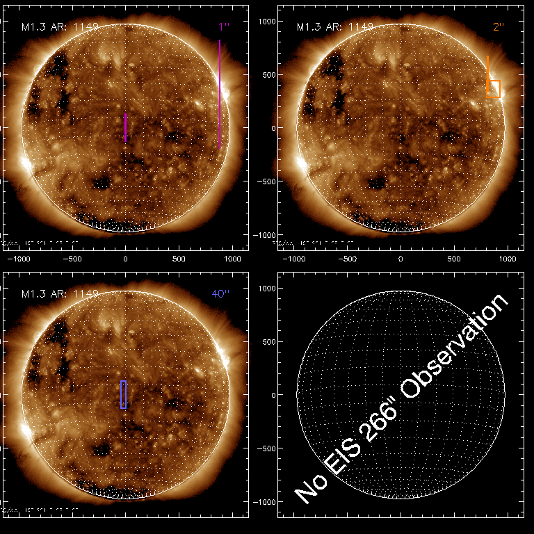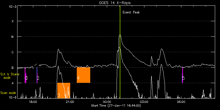 EIS Observation timeline overlay to GOES-Xray curve Code 1" 2" 40" 266" EIS Observations list for this event: STUDY ACRONYM ID DATE OBSERVED DESCRIPTION NOAA# TARGET 0 regcal071 | 20849 | 2011/01/27 17:20:11 | Dark exposures, CCD bottom rows (100s | | Engineering TIMELINE ID DATE OBSERVED FITS FILE XCEN (+W/-E) YCEN (+N/-S) DUR ----------------------------------------------------------------------------------------------------------------- 20849 | 2011/01/27 17:20:11.000 | eis_l0_20110127_172011.fits.gz | 884.63 | 54.63 | 3m22s 1 regcal072 | 20850 | 2011/01/27 17:24:00 | Dark exposures, top CCD rows (100s exp | | Engineering TIMELINE ID DATE OBSERVED FITS FILE XCEN (+W/-E) YCEN (+N/-S) DUR ----------------------------------------------------------------------------------------------------------------- 20850 | 2011/01/27 17:24:00.000 | eis_l0_20110127_172400.fits.gz | 884.63 | 565.63 | 3m22s 2 SYNOP005_A | 20844 | 2011/01/27 18:18:21 | Synoptic observation | | Quiet Sun TIMELINE ID DATE OBSERVED FITS FILE XCEN (+W/-E) YCEN (+N/-S) DUR ----------------------------------------------------------------------------------------------------------------- 20844 | 2011/01/27 18:18:21.000 | eis_l0_20110127_181821.fits.gz | -19.60 | -0.58 | 1m30s 20844 | 2011/01/27 18:20:02.000 | eis_l0_20110127_182002.fits.gz | -0.02 | -0.58 | 1m30s 3 Atlas_60 | 20851 | 2011/01/27 19:58:53 | EIS Spectral Atlas Synoptic Programme | 1147 | Quiet Sun TIMELINE ID DATE OBSERVED FITS FILE XCEN (+W/-E) YCEN (+N/-S) DUR ----------------------------------------------------------------------------------------------------------------- 20851 | 2011/01/27 19:58:53.000 | eis_l0_20110127_195853.fits.gz | 869.61 | 359.40 | 1h1m40s 4 inn_ar_lmb_ss03 | 20856 | 2011/01/27 21:33:12 | Oscillations and Outflows in AR at the | | Active Region TIMELINE ID DATE OBSERVED FITS FILE XCEN (+W/-E) YCEN (+N/-S) DUR ----------------------------------------------------------------------------------------------------------------- 20856 | 2011/01/27 21:33:12.000 | eis_l0_20110127_213312.fits.gz | 817.61 | 503.40 | 1h4m30s 5 SYNOP005_A | 20845 | 2011/01/28 06:04:20 | Synoptic observation | | Quiet Sun TIMELINE ID DATE OBSERVED FITS FILE XCEN (+W/-E) YCEN (+N/-S) DUR ----------------------------------------------------------------------------------------------------------------- 20845 | 2011/01/28 06:04:20.000 | eis_l0_20110128_060420.fits.gz | -19.60 | -0.58 | 1m30s 20845 | 2011/01/28 06:06:01.000 | eis_l0_20110128_060601.fits.gz | -0.02 | -0.65 | 1m31s : Check study information : Download file : View thumbnails For this event, also check for: