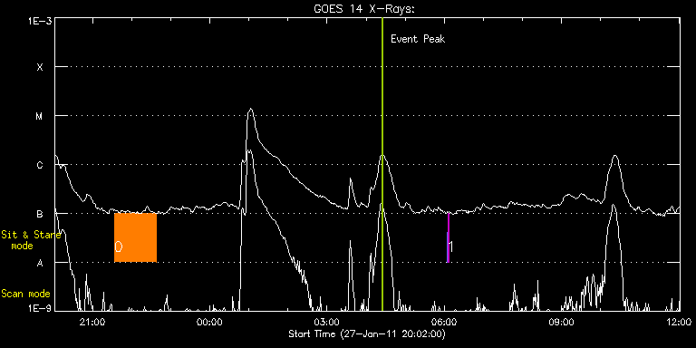EIS Observation timeline overlay to GOES-Xray curve Code 1" 2" 40" 266" EIS Observations list for this event: STUDY ACRONYM ID DATE OBSERVED DESCRIPTION NOAA# TARGET 0 inn_ar_lmb_ss03 | 20856 | 2011/01/27 21:33:12 | Oscillations and Outflows in AR at the | | Active Region TIMELINE ID DATE OBSERVED FITS FILE XCEN (+W/-E) YCEN (+N/-S) DUR ----------------------------------------------------------------------------------------------------------------- 20856 | 2011/01/27 21:33:12.000 | eis_l0_20110127_213312.fits.gz | 817.61 | 503.40 | 1h4m30s 1 SYNOP005_A | 20845 | 2011/01/28 06:04:20 | Synoptic observation | | Quiet Sun TIMELINE ID DATE OBSERVED FITS FILE XCEN (+W/-E) YCEN (+N/-S) DUR ----------------------------------------------------------------------------------------------------------------- 20845 | 2011/01/28 06:04:20.000 | eis_l0_20110128_060420.fits.gz | -19.60 | -0.58 | 1m30s 20845 | 2011/01/28 06:06:01.000 | eis_l0_20110128_060601.fits.gz | -0.02 | -0.65 | 1m31s : Check study information : Download file : View thumbnails For this event, also check for: