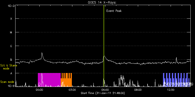 EIS Observation timeline overlay to GOES-Xray curve Code 1" 2" 40" 266" EIS Observations list for this event: STUDY ACRONYM ID DATE OBSERVED DESCRIPTION NOAA# TARGET 0 HPW021_VEL_240x512v1 | 20874 | 2011/01/31 23:52:25 | Studies of returning active region (Wa | 1150 | Active Region TIMELINE ID DATE OBSERVED FITS FILE XCEN (+W/-E) YCEN (+N/-S) DUR ----------------------------------------------------------------------------------------------------------------- 20874 | 2011/01/31 23:52:25.000 | eis_l0_20110131_235225.fits.gz | -462.21 | -256.27 | 2h3m48s 1 IUU_SCAN_STEPS_002 | 20875 | 2011/02/01 01:56:31 | Studies of returning active region (Wa | 1150 | Active Region TIMELINE ID DATE OBSERVED FITS FILE XCEN (+W/-E) YCEN (+N/-S) DUR ----------------------------------------------------------------------------------------------------------------- 20875 | 2011/02/01 01:56:31.000 | eis_l0_20110201_015631.fits.gz | -401.17 | -255.26 | 5m24s 20875 | 2011/02/01 02:01:58.000 | eis_l0_20110201_020158.fits.gz | -400.47 | -255.34 | 5m24s 20875 | 2011/02/01 02:07:25.000 | eis_l0_20110201_020725.fits.gz | -399.70 | -255.34 | 5m23s 20875 | 2011/02/01 02:12:52.000 | eis_l0_20110201_021252.fits.gz | -399.08 | -255.26 | 5m23s 20875 | 2011/02/01 02:18:19.000 | eis_l0_20110201_021819.fits.gz | -398.39 | -255.18 | 5m23s 20875 | 2011/02/01 02:23:45.000 | eis_l0_20110201_022345.fits.gz | -397.69 | -255.11 | 3m14s 20875 | 2011/02/01 02:27:22.000 | eis_l0_20110201_022722.fits.gz | -397.23 | -255.03 | 1m47s 20875 | 2011/02/01 02:29:12.000 | eis_l0_20110201_022912.fits.gz | -397.07 | -255.11 | 5m24s 20875 | 2011/02/01 02:34:39.000 | eis_l0_20110201_023439.fits.gz | -396.38 | -255.03 | 5m23s 20875 | 2011/02/01 02:40:06.000 | eis_l0_20110201_024006.fits.gz | -395.68 | -254.95 | 5m23s 20875 | 2011/02/01 02:45:32.000 | eis_l0_20110201_024532.fits.gz | -394.99 | -254.88 | 5m24s 20875 | 2011/02/01 02:50:59.000 | eis_l0_20110201_025059.fits.gz | -394.29 | -254.88 | 5m24s 20875 | 2011/02/01 02:56:26.000 | eis_l0_20110201_025626.fits.gz | -393.60 | -254.80 | 1m3s 2 full_sun_slot_scan_1 | 20879 | 2011/02/01 11:17:20 | HOP 130 (01T pointing) | | Quiet Sun TIMELINE ID DATE OBSERVED FITS FILE XCEN (+W/-E) YCEN (+N/-S) DUR ----------------------------------------------------------------------------------------------------------------- 20879 | 2011/02/01 11:17:20.000 | eis_l0_20110201_111720.fits.gz | 920.76 | 185.81 | 5m27s 3 full_sun_slot_scan_1 | 20880 | 2011/02/01 11:22:53 | HOP130 (01B) | | Quiet Sun TIMELINE ID DATE OBSERVED FITS FILE XCEN (+W/-E) YCEN (+N/-S) DUR ----------------------------------------------------------------------------------------------------------------- 20880 | 2011/02/01 11:22:53.000 | eis_l0_20110201_112253.fits.gz | 920.76 | -286.42 | 5m26s 4 full_sun_slot_scan_1 | 20881 | 2011/02/01 11:34:14 | HOP 130 (02T pointing) | | Quiet Sun TIMELINE ID DATE OBSERVED FITS FILE XCEN (+W/-E) YCEN (+N/-S) DUR ----------------------------------------------------------------------------------------------------------------- 20881 | 2011/02/01 11:34:14.000 | eis_l0_20110201_113414.fits.gz | 452.72 | 185.35 | 5m27s 5 full_sun_slot_scan_1 | 20882 | 2011/02/01 11:39:46 | HOP130 (02B) | | Quiet Sun TIMELINE ID DATE OBSERVED FITS FILE XCEN (+W/-E) YCEN (+N/-S) DUR ----------------------------------------------------------------------------------------------------------------- 20882 | 2011/02/01 11:39:46.000 | eis_l0_20110201_113946.fits.gz | 452.57 | -286.42 | 5m26s 6 full_sun_slot_scan_1 | 20883 | 2011/02/01 11:50:15 | HOP 130 (03T pointing) | | Quiet Sun TIMELINE ID DATE OBSERVED FITS FILE XCEN (+W/-E) YCEN (+N/-S) DUR ----------------------------------------------------------------------------------------------------------------- 20883 | 2011/02/01 11:50:15.000 | eis_l0_20110201_115015.fits.gz | -15.32 | 185.42 | 5m27s 7 full_sun_slot_scan_1 | 20884 | 2011/02/01 11:55:47 | HOP130 (03B) | 1150 | Quiet Sun TIMELINE ID DATE OBSERVED FITS FILE XCEN (+W/-E) YCEN (+N/-S) DUR ----------------------------------------------------------------------------------------------------------------- 20884 | 2011/02/01 11:55:47.000 | eis_l0_20110201_115547.fits.gz | -15.32 | -286.42 | 5m27s 8 full_sun_slot_scan_1 | 20885 | 2011/02/01 12:06:14 | HOP 130 (04T pointing) | | Quiet Sun TIMELINE ID DATE OBSERVED FITS FILE XCEN (+W/-E) YCEN (+N/-S) DUR ----------------------------------------------------------------------------------------------------------------- 20885 | 2011/02/01 12:06:14.000 | eis_l0_20110201_120614.fits.gz | -483.29 | 185.35 | 5m27s 9 full_sun_slot_scan_1 | 20886 | 2011/02/01 12:11:46 | HOP130 (04B) | 1150 | Quiet Sun TIMELINE ID DATE OBSERVED FITS FILE XCEN (+W/-E) YCEN (+N/-S) DUR ----------------------------------------------------------------------------------------------------------------- 20886 | 2011/02/01 12:11:46.000 | eis_l0_20110201_121146.fits.gz | -483.37 | -286.42 | 5m27s 10 full_sun_slot_scan_1 | 20887 | 2011/02/01 12:22:14 | HOP 130 (05T pointing) | | Quiet Sun TIMELINE ID DATE OBSERVED FITS FILE XCEN (+W/-E) YCEN (+N/-S) DUR ----------------------------------------------------------------------------------------------------------------- 20887 | 2011/02/01 12:22:14.000 | eis_l0_20110201_122214.fits.gz | -9884.72 | -9777.20 | 5m27s 11 full_sun_slot_scan_1 | 20888 | 2011/02/01 12:27:46 | HOP130 (05B) | | Quiet Sun TIMELINE ID DATE OBSERVED FITS FILE XCEN (+W/-E) YCEN (+N/-S) DUR ----------------------------------------------------------------------------------------------------------------- 20888 | 2011/02/01 12:27:46.000 | eis_l0_20110201_122746.fits.gz | -9884.72 | -10249.20 | 5m26s 12 full_sun_slot_scan_1 | 20889 | 2011/02/01 12:38:14 | HOP130 (06T) | | Quiet Sun TIMELINE ID DATE OBSERVED FITS FILE XCEN (+W/-E) YCEN (+N/-S) DUR ----------------------------------------------------------------------------------------------------------------- 20889 | 2011/02/01 12:38:14.000 | eis_l0_20110201_123814.fits.gz | 79