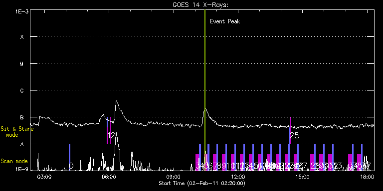 EIS Observation timeline overlay to GOES-Xray curve Code 1" 2" 40" 266" EIS Observations list for this event: STUDY ACRONYM ID DATE OBSERVED DESCRIPTION NOAA# TARGET 0 PRY_slot_contextLITE | 20951 | 2011/02/02 04:08:21 | context image | 1150 | Active Region TIMELINE ID DATE OBSERVED FITS FILE XCEN (+W/-E) YCEN (+N/-S) DUR ----------------------------------------------------------------------------------------------------------------- 20951 | 2011/02/02 04:08:21.000 | eis_l0_20110202_040821.fits.gz | -179.78 | -251.25 | 2m56s 1 SYNOP005_A | 20947 | 2011/02/02 05:54:13 | | | Quiet Sun TIMELINE ID DATE OBSERVED FITS FILE XCEN (+W/-E) YCEN (+N/-S) DUR ----------------------------------------------------------------------------------------------------------------- 20947 | 2011/02/02 05:54:13.000 | eis_l0_20110202_055413.fits.gz | -19.44 | -0.35 | 1m30s 20947 | 2011/02/02 05:55:54.000 | eis_l0_20110202_055554.fits.gz | -0.10 | -0.42 | 1m30s 2 regcal077 | 20948 | 2011/02/02 06:04:12 | Flatfield, 2 exposures, led 80ms, full | | Engineering TIMELINE ID DATE OBSERVED FITS FILE XCEN (+W/-E) YCEN (+N/-S) DUR ----------------------------------------------------------------------------------------------------------------- 20948 | 2011/02/02 06:04:12.000 | eis_l0_20110202_060412.fits.gz | -133.57 | -301.09 | 4s 3 SK_DEEP_5x512_SLIT1 | 20952 | 2011/02/02 10:01:44 | HOP79: S-N scans (1/20) | | Quiet Sun TIMELINE ID DATE OBSERVED FITS FILE XCEN (+W/-E) YCEN (+N/-S) DUR ----------------------------------------------------------------------------------------------------------------- 20952 | 2011/02/02 10:01:44.000 | eis_l0_20110202_100144.fits.gz | -11.92 | -945.47 | 10m8s 4 PRY_slot_contextLITE | 20953 | 2011/02/02 10:12:17 | HOP79: S-N scans (context 1/20) | | Active Region TIMELINE ID DATE OBSERVED FITS FILE XCEN (+W/-E) YCEN (+N/-S) DUR ----------------------------------------------------------------------------------------------------------------- 20953 | 2011/02/02 10:12:17.000 | eis_l0_20110202_101217.fits.gz | -27.14 | -945.39 | 2m56s 5 SK_DEEP_5x512_SLIT1 | 20954 | 2011/02/02 10:25:20 | HOP79: S-N scans (2/20) | | Quiet Sun TIMELINE ID DATE OBSERVED FITS FILE XCEN (+W/-E) YCEN (+N/-S) DUR ----------------------------------------------------------------------------------------------------------------- 20954 | 2011/02/02 10:25:20.000 | eis_l0_20110202_102520.fits.gz | -11.92 | -855.24 | 10m8s 6 PRY_slot_contextLITE | 20955 | 2011/02/02 10:35:54 | HOP79: S-N scans (context 2/20) | | Active Region TIMELINE ID DATE OBSERVED FITS FILE XCEN (+W/-E) YCEN (+N/-S) DUR ----------------------------------------------------------------------------------------------------------------- 20955 | 2011/02/02 10:35:54.000 | eis_l0_20110202_103554.fits.gz | -27.14 | -855.48 | 2m56s 7 SK_DEEP_5x512_SLIT1 | 20956 | 2011/02/02 10:50:20 | HOP79: S-N scans (3/20) | | Quiet Sun TIMELINE ID DATE OBSERVED FITS FILE XCEN (+W/-E) YCEN (+N/-S) DUR ----------------------------------------------------------------------------------------------------------------- 20956 | 2011/02/02 10:50:20.000 | eis_l0_20110202_105020.fits.gz | -11.99 | -755.36 | 10m8s 8 PRY_slot_contextLITE | 20957 | 2011/02/02 11:00:54 | HOP79: S-N scans (context 3/20) | | Active Region TIMELINE ID DATE OBSERVED FITS FILE XCEN (+W/-E) YCEN (+N/-S) DUR ----------------------------------------------------------------------------------------------------------------- 20957 | 2011/02/02 11:00:54.000 | eis_l0_20110202_110054.fits.gz | -27.14 | -755.36 | 2m55s 9 SK_DEEP_5x512_SLIT1 | 20958 | 2011/02/02 11:15:20 | HOP79: S-N scans (4/20) | | Quiet Sun TIMELINE ID DATE OBSERVED FITS FILE XCEN (+W/-E) YCEN (+N/-S) DUR ----------------------------------------------------------------------------------------------------------------- 20958 | 2011/02/02 11:15:20.000 | eis_l0_20110202_111520.fits.gz | -11.92 | -655.25 | 10m8s 10 PRY_slot_contextLITE | 20959 | 2011/02/02 11:25:54 | HOP79: S-N scans (context 4/20) | | Active Region TIMELINE ID DATE OBSERVED FITS FILE XCEN (+W/-E) YCEN (+N/-S) DUR ----------------------------------------------------------------------------------------------------------------- 20959 | 2011/02/02 11:25:54.000 | eis_l0_20110202_112554.fits.gz | -27.06 | -655.25 | 2m56s 11 SK_DEEP_5x512_SLIT1 | 20960 | 2011/02/02 11:40:20 | HOP79: S-N scans (5/20) | | Quiet Sun TIMELINE ID DATE OBSERVED FITS FILE XCEN (+W/-E) YCEN (+N/-S) DUR ----------------------------------------------------------------------------------------------------------------- 20960 | 2011/02/02 11:40:20.000 | eis_l0_20110202_114020.fits.gz | -11.84 | -555.60 | 10m8s 12 PRY_slot_contextLITE | 20961 | 2011/02/02 11:50:53 | HOP79: S-N scans (context 5/20) | | Active Region TIMELINE ID DATE OBSERVED FITS FILE XCEN (+W/-E) YCEN (+N/-S) DUR ----------------------------------------------------------------------------------------------------------------- 20961 | 2011/02/02 11:50:53.000 | eis_l0_20110202_115053.fits.gz | -27.22 | -555.52 | 2m57s 13 SK_DEEP_5x512_SLIT1 | 20962 | 2011/02/02 12:05:20 | HOP79: S-N scans (6/20) | | Quiet Sun TIMELINE ID DATE OBSERVED FITS FILE XCEN (+W/-E) YCEN (+N/-S) DUR ----------------------------------------------------------------------------------------------------------------- 20962 | 2011/02/02 12:05:20.000 | eis_l0_20110202_120520.fits.gz | -11.92 | -455.33 | 10m8s 14 PRY_slot_contextLITE | 20963 | 2011/02/02 12:15:54 | HOP79: S-N scans (context 6/20) | 1150 | Active Region TIMELINE ID DATE OBSERVED FITS FILE XCEN (+W/-E) YCEN (+N/-S) DUR ----------------------------------------------------------------------------------------------------------------- 20963 | 2011/02/02 12:15:54.000 | eis_l0_20110202_121554.fits.gz | -27.22 | -455.49 | 2m56s 15 SK_DEEP_5x512_SLIT1 | 20964 | 2011/02/02 12:30:20 | HOP79: S-N scans (7/20) | | Quiet Sun TIMELINE ID DATE OBSERVED FITS FILE XCEN (+W/-E) YCEN (+N/-S) DUR -------------------------------------------------------------------