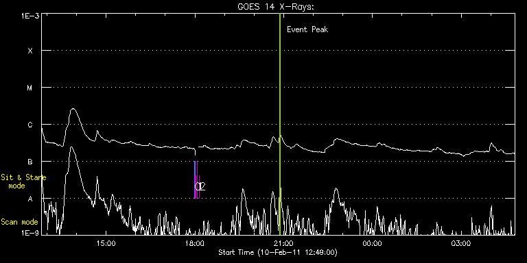 EIS Observation timeline overlay to GOES-Xray curve Code 1" 2" 40" 266" EIS Observations list for this event: STUDY ACRONYM ID DATE OBSERVED DESCRIPTION NOAA# TARGET 0 SYNOP005_A | 21045 | 2011/02/10 17:59:20 | Sensitivity monitoring during XRT syno | | Quiet Sun TIMELINE ID DATE OBSERVED FITS FILE XCEN (+W/-E) YCEN (+N/-S) DUR ----------------------------------------------------------------------------------------------------------------- 21045 | 2011/02/10 17:59:20.000 | eis_l0_20110210_175920.fits.gz | 888.37 | 249.32 | 1m30s 21045 | 2011/02/10 18:01:01.000 | eis_l0_20110210_180101.fits.gz | 907.87 | 249.32 | 1m30s 1 regcal070 | 21049 | 2011/02/10 18:05:12 | Flat field with overscan pixels (50*8) | | Engineering TIMELINE ID DATE OBSERVED FITS FILE XCEN (+W/-E) YCEN (+N/-S) DUR ----------------------------------------------------------------------------------------------------------------- 21049 | 2011/02/10 18:05:12.000 | eis_l0_20110210_180512.fits.gz | 922.48 | 455.32 | 3s 2 regcal076 | 21050 | 2011/02/10 18:09:13 | Flatfield, 1 exposure, led 100ms, ccd | | Engineering TIMELINE ID DATE OBSERVED FITS FILE XCEN (+W/-E) YCEN (+N/-S) DUR ----------------------------------------------------------------------------------------------------------------- 21050 | 2011/02/10 18:09:13.000 | eis_l0_20110210_180913.fits.gz | 922.48 | 199.32 | 1s : Check study information : Download file : View thumbnails For this event, also check for: