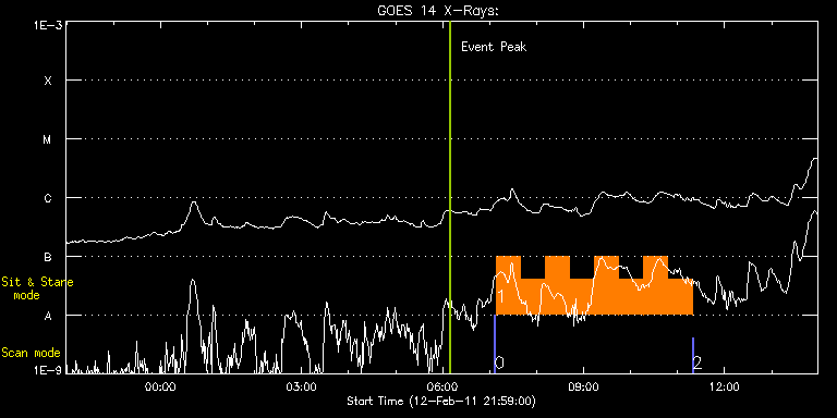 EIS Observation timeline overlay to GOES-Xray curve Code 1" 2" 40" 266" EIS Observations list for this event: STUDY ACRONYM ID DATE OBSERVED DESCRIPTION NOAA# TARGET 0 eis:eitwave_context | 21060 | 2011/02/13 07:06:03 | HOP 180 EIT WAVES | 1158 | Quiet Sun TIMELINE ID DATE OBSERVED FITS FILE XCEN (+W/-E) YCEN (+N/-S) DUR ----------------------------------------------------------------------------------------------------------------- 21060 | 2011/02/13 07:06:03.000 | eis_l0_20110213_070603.fits.gz | -193.88 | -26.24 | 1m32s 1 eis:eitwave_obssns | 21061 | 2011/02/13 07:08:00 | HOP 180 EIT WAVES | | Quiet Sun TIMELINE ID DATE OBSERVED FITS FILE XCEN (+W/-E) YCEN (+N/-S) DUR ----------------------------------------------------------------------------------------------------------------- 21061 | 2011/02/13 07:08:00.000 | eis_l0_20110213_070800.fits.gz | -174.91 | -26.24 | 31m15s 21061 | 2011/02/13 07:39:19.000 | eis_l0_20110213_073919.fits.gz | -170.43 | -26.32 | 31m14s 21061 | 2011/02/13 08:10:37.000 | eis_l0_20110213_081037.fits.gz | -166.03 | -26.17 | 31m15s 21061 | 2011/02/13 08:41:56.000 | eis_l0_20110213_084156.fits.gz | -161.55 | -26.01 | 31m15s 21061 | 2011/02/13 09:13:15.000 | eis_l0_20110213_091315.fits.gz | -157.07 | -25.86 | 31m16s 21061 | 2011/02/13 09:44:34.000 | eis_l0_20110213_094434.fits.gz | -152.59 | -25.93 | 31m15s 21061 | 2011/02/13 10:15:53.000 | eis_l0_20110213_101553.fits.gz | -148.19 | -25.62 | 31m15s 21061 | 2011/02/13 10:47:12.000 | eis_l0_20110213_104712.fits.gz | -143.63 | -25.55 | 31m16s 2 eis:eitwave_context | 21062 | 2011/02/13 11:18:40 | HOP 180 EIT WAVES | 1158 | Quiet Sun TIMELINE ID DATE OBSERVED FITS FILE XCEN (+W/-E) YCEN (+N/-S) DUR ----------------------------------------------------------------------------------------------------------------- 21062 | 2011/02/13 11:18:40.000 | eis_l0_20110213_111840.fits.gz | -157.88 | -25.70 | 1m32s : Check study information : Download file : View thumbnails For this event, also check for: