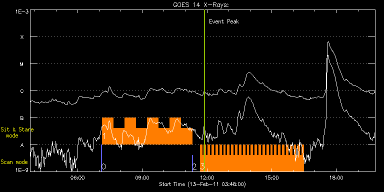 EIS Observation timeline overlay to GOES-Xray curve Code 1" 2" 40" 266" EIS Observations list for this event: STUDY ACRONYM ID DATE OBSERVED DESCRIPTION NOAA# TARGET 0 eis:eitwave_context | 21060 | 2011/02/13 07:06:03 | HOP 180 EIT WAVES | 1158 | Quiet Sun TIMELINE ID DATE OBSERVED FITS FILE XCEN (+W/-E) YCEN (+N/-S) DUR ----------------------------------------------------------------------------------------------------------------- 21060 | 2011/02/13 07:06:03.000 | eis_l0_20110213_070603.fits.gz | -193.88 | -26.24 | 1m32s 1 eis:eitwave_obssns | 21061 | 2011/02/13 07:08:00 | HOP 180 EIT WAVES | | Quiet Sun TIMELINE ID DATE OBSERVED FITS FILE XCEN (+W/-E) YCEN (+N/-S) DUR ----------------------------------------------------------------------------------------------------------------- 21061 | 2011/02/13 07:08:00.000 | eis_l0_20110213_070800.fits.gz | -174.91 | -26.24 | 31m15s 21061 | 2011/02/13 07:39:19.000 | eis_l0_20110213_073919.fits.gz | -170.43 | -26.32 | 31m14s 21061 | 2011/02/13 08:10:37.000 | eis_l0_20110213_081037.fits.gz | -166.03 | -26.17 | 31m15s 21061 | 2011/02/13 08:41:56.000 | eis_l0_20110213_084156.fits.gz | -161.55 | -26.01 | 31m15s 21061 | 2011/02/13 09:13:15.000 | eis_l0_20110213_091315.fits.gz | -157.07 | -25.86 | 31m16s 21061 | 2011/02/13 09:44:34.000 | eis_l0_20110213_094434.fits.gz | -152.59 | -25.93 | 31m15s 21061 | 2011/02/13 10:15:53.000 | eis_l0_20110213_101553.fits.gz | -148.19 | -25.62 | 31m15s 21061 | 2011/02/13 10:47:12.000 | eis_l0_20110213_104712.fits.gz | -143.63 | -25.55 | 31m16s 2 eis:eitwave_context | 21062 | 2011/02/13 11:18:40 | HOP 180 EIT WAVES | 1158 | Quiet Sun TIMELINE ID DATE OBSERVED FITS FILE XCEN (+W/-E) YCEN (+N/-S) DUR ----------------------------------------------------------------------------------------------------------------- 21062 | 2011/02/13 11:18:40.000 | eis_l0_20110213_111840.fits.gz | -157.88 | -25.70 | 1m32s 3 IUU_SCAN_STEPS_002 | 21067 | 2011/02/13 11:40:32 | EIS Fast Scan AR Core | | Active Region TIMELINE ID DATE OBSERVED FITS FILE XCEN (+W/-E) YCEN (+N/-S) DUR ----------------------------------------------------------------------------------------------------------------- 21067 | 2011/02/13 11:40:32.000 | eis_l0_20110213_114032.fits.gz | -143.72 | -231.55 | 5m24s 21067 | 2011/02/13 11:45:59.000 | eis_l0_20110213_114559.fits.gz | -143.02 | -231.39 | 5m23s 21067 | 2011/02/13 11:51:26.000 | eis_l0_20110213_115126.fits.gz | -142.25 | -231.39 | 5m23s 21067 | 2011/02/13 11:56:53.000 | eis_l0_20110213_115653.fits.gz | -141.55 | -231.32 | 5m23s 21067 | 2011/02/13 12:02:19.000 | eis_l0_20110213_120219.fits.gz | -140.63 | -231.32 | 5m24s 21067 | 2011/02/13 12:07:46.000 | eis_l0_20110213_120746.fits.gz | -139.85 | -231.32 | 5m24s 21067 | 2011/02/13 12:13:13.000 | eis_l0_20110213_121313.fits.gz | -139.08 | -231.24 | 5m23s 21067 | 2011/02/13 12:18:40.000 | eis_l0_20110213_121840.fits.gz | -138.31 | -231.32 | 5m23s 21067 | 2011/02/13 12:24:06.000 | eis_l0_20110213_122406.fits.gz | -137.54 | -231.24 | 5m24s 21067 | 2011/02/13 12:29:33.000 | eis_l0_20110213_122933.fits.gz | -136.76 | -231.39 | 5m24s 21067 | 2011/02/13 12:35:00.000 | eis_l0_20110213_123500.fits.gz | -135.99 | -231.24 | 5m23s 21067 | 2011/02/13 12:40:27.000 | eis_l0_20110213_124027.fits.gz | -135.22 | -231.32 | 5m23s 21067 | 2011/02/13 12:45:54.000 | eis_l0_20110213_124554.fits.gz | -134.45 | -231.08 | 5m23s 21067 | 2011/02/13 12:51:20.000 | eis_l0_20110213_125120.fits.gz | -133.68 | -231.16 | 5m24s 21067 | 2011/02/13 12:56:47.000 | eis_l0_20110213_125647.fits.gz | -132.90 | -231.16 | 5m24s 21067 | 2011/02/13 13:02:14.000 | eis_l0_20110213_130214.fits.gz | -132.05 | -231.24 | 5m23s 21067 | 2011/02/13 13:07:41.000 | eis_l0_20110213_130741.fits.gz | -131.28 | -231.16 | 5m23s 21067 | 2011/02/13 13:13:07.000 | eis_l0_20110213_131307.fits.gz | -130.51 | -231.24 | 5m24s 21067 | 2011/02/13 13:18:34.000 | eis_l0_20110213_131834.fits.gz | -129.74 | -231.24 | 5m24s 21067 | 2011/02/13 13:24:01.000 | eis_l0_20110213_132401.fits.gz | -129.04 | -231.24 | 5m23s 21067 | 2011/02/13 13:29:28.000 | eis_l0_20110213_132928.fits.gz | -128.19 | -231.08 | 5m23s 21067 | 2011/02/13 13:34:55.000 | eis_l0_20110213_133455.fits.gz | -127.42 | -231.16 | 5m23s 21067 | 2011/02/13 13:40:21.000 | eis_l0_20110213_134021.fits.gz | -126.72 | -231.01 | 5m24s 21067 | 2011/02/13 13:45:48.000 | eis_l0_20110213_134548.fits.gz | -125.80 | -231.01 | 5m24s 21067 | 2011/02/13 13:51:15.000 | eis_l0_20110213_135115.fits.gz | -124.95 | -231.08 | 5m23s 21067 | 2011/02/13 13:56:42.000 | eis_l0_20110213_135642.fits.gz | -124.25 | -231.01 | 5m23s 21067 | 2011/02/13 14:02:08.000 | eis_l0_20110213_140208.fits.gz | -123.48 | -230.93 | 5m24s 21067 | 2011/02/13 14:07:35.000 | eis_l0_20110213_140735.fits.gz | -122.63 | -231.08 | 5m24s 21067 | 2011/02/13 14:13:02.000 | eis_l0_20110213_141302.fits.gz | -121.86 | -231.01 | 5m23s 21067 | 2011/02/13 14:18:29.000 | eis_l0_20110213_141829.fits.gz | -121.16 | -230.93 | 5m23s 21067 | 2011/02/13 14:23:56.000 | eis_l0_20110213_142356.fits.gz | -120.39 | -230.93 | 5m23s 21067 | 2011/02/13 14:29:23.000 | eis_l0_20110213_142923.fits.gz | -119.62 | -231.01 | 5m23s 21067 | 2011/02/13 14:34:49.000 | eis_l0_20110213_143449.fits.gz | -118.84 | -230.93 | 5m24s 21067 | 2011/02/13 14:40:16.000 | eis_l0_20110213_144016.fits.gz | -118.07 | -230.93 | 5m23s 21067 | 2011/02/13 14:45:43.000 | eis_l0_20110213_144543.fits.gz | -117.22 | -230.85 | 5m23s 21067 | 2011/02/13 14:51:09.000 | eis_l0_20110213_145109.fits.gz | -116.45 | -230.85 | 5m24s 21067 | 2011/02/13 14:56:36.000 | eis_l0_20110213_145636.fits.gz | -115.75 | -230.93 | 5m24s 21067 | 2011/02/13 15:02:03.000 | eis_l0_20110213_150203.fits.gz | -114.83 | -230.93 | 5m23s 21067 | 2011/02/13 15:07:30.000 | eis_l0_20110213_150730.fits.gz | -114.05 | -230.85 | 5m23s 21067 | 2011/02/13 15:12:57.000 | eis_l0_20110213_151257.fits.gz | -113.36 | -230.85 | 5m23s 21067 | 2011/02/13 15:18:23.000 | eis_l0_20110213_151823.fits.gz | -112.59 | -230.85 | 5m24s 21067 | 2011/