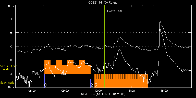 EIS Observation timeline overlay to GOES-Xray curve Code 1" 2" 40" 266" EIS Observations list for this event: STUDY ACRONYM ID DATE OBSERVED DESCRIPTION NOAA# TARGET 0 eis:eitwave_context | 21060 | 2011/02/13 07:06:03 | HOP 180 EIT WAVES | 1158 | Quiet Sun TIMELINE ID DATE OBSERVED FITS FILE XCEN (+W/-E) YCEN (+N/-S) DUR ----------------------------------------------------------------------------------------------------------------- 21060 | 2011/02/13 07:06:03.000 | eis_l0_20110213_070603.fits.gz | -193.88 | -26.24 | 1m32s 1 eis:eitwave_obssns | 21061 | 2011/02/13 07:08:00 | HOP 180 EIT WAVES | | Quiet Sun TIMELINE ID DATE OBSERVED FITS FILE XCEN (+W/-E) YCEN (+N/-S) DUR ----------------------------------------------------------------------------------------------------------------- 21061 | 2011/02/13 07:08:00.000 | eis_l0_20110213_070800.fits.gz | -174.91 | -26.24 | 31m15s 21061 | 2011/02/13 07:39:19.000 | eis_l0_20110213_073919.fits.gz | -170.43 | -26.32 | 31m14s 21061 | 2011/02/13 08:10:37.000 | eis_l0_20110213_081037.fits.gz | -166.03 | -26.17 | 31m15s 21061 | 2011/02/13 08:41:56.000 | eis_l0_20110213_084156.fits.gz | -161.55 | -26.01 | 31m15s 21061 | 2011/02/13 09:13:15.000 | eis_l0_20110213_091315.fits.gz | -157.07 | -25.86 | 31m16s 21061 | 2011/02/13 09:44:34.000 | eis_l0_20110213_094434.fits.gz | -152.59 | -25.93 | 31m15s 21061 | 2011/02/13 10:15:53.000 | eis_l0_20110213_101553.fits.gz | -148.19 | -25.62 | 31m15s 21061 | 2011/02/13 10:47:12.000 | eis_l0_20110213_104712.fits.gz | -143.63 | -25.55 | 31m16s 2 eis:eitwave_context | 21062 | 2011/02/13 11:18:40 | HOP 180 EIT WAVES | 1158 | Quiet Sun TIMELINE ID DATE OBSERVED FITS FILE XCEN (+W/-E) YCEN (+N/-S) DUR ----------------------------------------------------------------------------------------------------------------- 21062 | 2011/02/13 11:18:40.000 | eis_l0_20110213_111840.fits.gz | -157.88 | -25.70 | 1m32s 3 IUU_SCAN_STEPS_002 | 21067 | 2011/02/13 11:40:32 | EIS Fast Scan AR Core | | Active Region TIMELINE ID DATE OBSERVED FITS FILE XCEN (+W/-E) YCEN (+N/-S) DUR ----------------------------------------------------------------------------------------------------------------- 21067 | 2011/02/13 11:40:32.000 | eis_l0_20110213_114032.fits.gz | -143.72 | -231.55 | 5m24s 21067 | 2011/02/13 11:45:59.000 | eis_l0_20110213_114559.fits.gz | -143.02 | -231.39 | 5m23s 21067 | 2011/02/13 11:51:26.000 | eis_l0_20110213_115126.fits.gz | -142.25 | -231.39 | 5m23s 21067 | 2011/02/13 11:56:53.000 | eis_l0_20110213_115653.fits.gz | -141.55 | -231.32 | 5m23s 21067 | 2011/02/13 12:02:19.000 | eis_l0_20110213_120219.fits.gz | -140.63 | -231.32 | 5m24s 21067 | 2011/02/13 12:07:46.000 | eis_l0_20110213_120746.fits.gz | -139.85 | -231.32 | 5m24s 21067 | 2011/02/13 12:13:13.000 | eis_l0_20110213_121313.fits.gz | -139.08 | -231.24 | 5m23s 21067 | 2011/02/13 12:18:40.000 | eis_l0_20110213_121840.fits.gz | -138.31 | -231.32 | 5m23s 21067 | 2011/02/13 12:24:06.000 | eis_l0_20110213_122406.fits.gz | -137.54 | -231.24 | 5m24s 21067 | 2011/02/13 12:29:33.000 | eis_l0_20110213_122933.fits.gz | -136.76 | -231.39 | 5m24s 21067 | 2011/02/13 12:35:00.000 | eis_l0_20110213_123500.fits.gz | -135.99 | -231.24 | 5m23s 21067 | 2011/02/13 12:40:27.000 | eis_l0_20110213_124027.fits.gz | -135.22 | -231.32 | 5m23s 21067 | 2011/02/13 12:45:54.000 | eis_l0_20110213_124554.fits.gz | -134.45 | -231.08 | 5m23s 21067 | 2011/02/13 12:51:20.000 | eis_l0_20110213_125120.fits.gz | -133.68 | -231.16 | 5m24s 21067 | 2011/02/13 12:56:47.000 | eis_l0_20110213_125647.fits.gz | -132.90 | -231.16 | 5m24s 21067 | 2011/02/13 13:02:14.000 | eis_l0_20110213_130214.fits.gz | -132.05 | -231.24 | 5m23s 21067 | 2011/02/13 13:07:41.000 | eis_l0_20110213_130741.fits.gz | -131.28 | -231.16 | 5m23s 21067 | 2011/02/13 13:13:07.000 | eis_l0_20110213_131307.fits.gz | -130.51 | -231.24 | 5m24s 21067 | 2011/02/13 13:18:34.000 | eis_l0_20110213_131834.fits.gz | -129.74 | -231.24 | 5m24s 21067 | 2011/02/13 13:24:01.000 | eis_l0_20110213_132401.fits.gz | -129.04 | -231.24 | 5m23s 21067 | 2011/02/13 13:29:28.000 | eis_l0_20110213_132928.fits.gz | -128.19 | -231.08 | 5m23s 21067 | 2011/02/13 13:34:55.000 | eis_l0_20110213_133455.fits.gz | -127.42 | -231.16 | 5m23s 21067 | 2011/02/13 13:40:21.000 | eis_l0_20110213_134021.fits.gz | -126.72 | -231.01 | 5m24s 21067 | 2011/02/13 13:45:48.000 | eis_l0_20110213_134548.fits.gz | -125.80 | -231.01 | 5m24s 21067 | 2011/02/13 13:51:15.000 | eis_l0_20110213_135115.fits.gz | -124.95 | -231.08 | 5m23s 21067 | 2011/02/13 13:56:42.000 | eis_l0_20110213_135642.fits.gz | -124.25 | -231.01 | 5m23s 21067 | 2011/02/13 14:02:08.000 | eis_l0_20110213_140208.fits.gz | -123.48 | -230.93 | 5m24s 21067 | 2011/02/13 14:07:35.000 | eis_l0_20110213_140735.fits.gz | -122.63 | -231.08 | 5m24s 21067 | 2011/02/13 14:13:02.000 | eis_l0_20110213_141302.fits.gz | -121.86 | -231.01 | 5m23s 21067 | 2011/02/13 14:18:29.000 | eis_l0_20110213_141829.fits.gz | -121.16 | -230.93 | 5m23s 21067 | 2011/02/13 14:23:56.000 | eis_l0_20110213_142356.fits.gz | -120.39 | -230.93 | 5m23s 21067 | 2011/02/13 14:29:23.000 | eis_l0_20110213_142923.fits.gz | -119.62 | -231.01 | 5m23s 21067 | 2011/02/13 14:34:49.000 | eis_l0_20110213_143449.fits.gz | -118.84 | -230.93 | 5m24s 21067 | 2011/02/13 14:40:16.000 | eis_l0_20110213_144016.fits.gz | -118.07 | -230.93 | 5m23s 21067 | 2011/02/13 14:45:43.000 | eis_l0_20110213_144543.fits.gz | -117.22 | -230.85 | 5m23s 21067 | 2011/02/13 14:51:09.000 | eis_l0_20110213_145109.fits.gz | -116.45 | -230.85 | 5m24s 21067 | 2011/02/13 14:56:36.000 | eis_l0_20110213_145636.fits.gz | -115.75 | -230.93 | 5m24s 21067 | 2011/02/13 15:02:03.000 | eis_l0_20110213_150203.fits.gz | -114.83 | -230.93 | 5m23s 21067 | 2011/02/13 15:07:30.000 | eis_l0_20110213_150730.fits.gz | -114.05 | -230.85 | 5m23s 21067 | 2011/02/13 15:12:57.000 | eis_l0_20110213_151257.fits.gz | -113.36 | -230.85 | 5m23s 21067 | 2011/02/13 15:18:23.000 | eis_l0_20110213_151823.fits.gz | -112.59 | -230.85 | 5m24s 21067 | 2011/