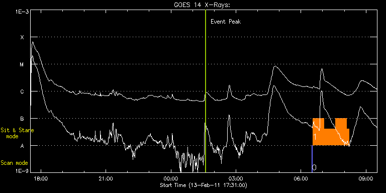 EIS Observation timeline overlay to GOES-Xray curve Code 1" 2" 40" 266" EIS Observations list for this event: STUDY ACRONYM ID DATE OBSERVED DESCRIPTION NOAA# TARGET 0 eis:eitwave_context | 21063 | 2011/02/14 06:30:20 | HOP 180 EIT WAVES | 1158 | Quiet Sun TIMELINE ID DATE OBSERVED FITS FILE XCEN (+W/-E) YCEN (+N/-S) DUR ----------------------------------------------------------------------------------------------------------------- 21063 | 2011/02/14 06:30:20.000 | eis_l0_20110214_063020.fits.gz | 8.36 | -23.54 | 1m32s 1 eis:eitwave_obssns | 21064 | 2011/02/14 06:32:17 | HOP 180 EIT WAVES | | Quiet Sun TIMELINE ID DATE OBSERVED FITS FILE XCEN (+W/-E) YCEN (+N/-S) DUR ----------------------------------------------------------------------------------------------------------------- 21064 | 2011/02/14 06:32:17.000 | eis_l0_20110214_063217.fits.gz | 55.52 | -23.62 | 31m14s 21064 | 2011/02/14 07:03:35.000 | eis_l0_20110214_070335.fits.gz | 60.01 | -23.54 | 31m15s 21064 | 2011/02/14 07:34:53.000 | eis_l0_20110214_073453.fits.gz | 64.56 | -23.46 | 31m16s 21064 | 2011/02/14 08:06:13.000 | eis_l0_20110214_080613.fits.gz | 69.12 | -23.54 | 7m : Check study information : Download file : View thumbnails For this event, also check for: