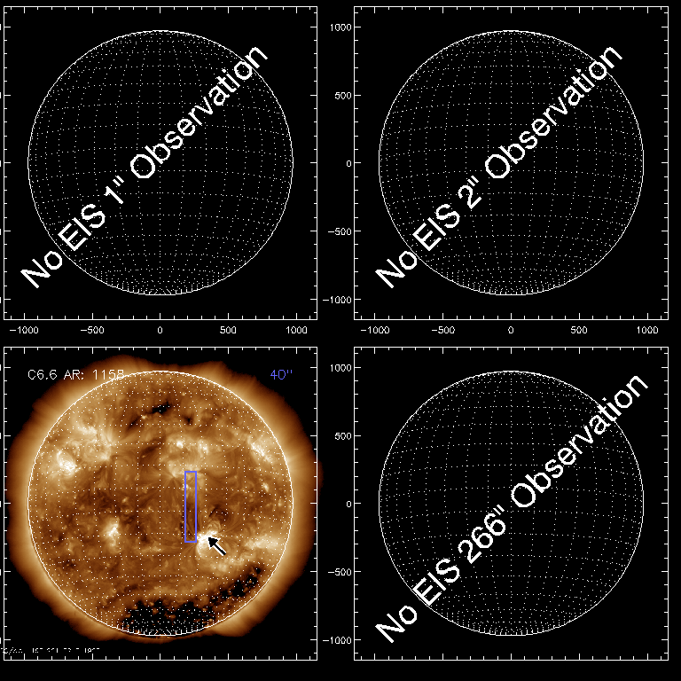EIS Observation timeline overlay to GOES-Xray curve Code 1" 2" 40" 266" EIS Observations list for this event: STUDY ACRONYM ID DATE OBSERVED DESCRIPTION NOAA# TARGET 0 eis:eitwave_context | 21075 | 2011/02/15 14:22:57 | HOP 180 EIT Waves Context Raster | 1158 | Quiet Sun TIMELINE ID DATE OBSERVED FITS FILE XCEN (+W/-E) YCEN (+N/-S) DUR ----------------------------------------------------------------------------------------------------------------- 21075 | 2011/02/15 14:22:57.000 | eis_l0_20110215_142257.fits.gz | 224.38 | -28.10 | 1m32s : Check study information : Download file : View thumbnails For this event, also check for: