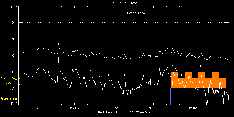 EIS Observation timeline overlay to GOES-Xray curve Code 1" 2" 40" 266" EIS Observations list for this event: STUDY ACRONYM ID DATE OBSERVED DESCRIPTION NOAA# TARGET 0 eis:eitwave_context | 21081 | 2011/02/17 10:18:41 | HOP 180 EIT WAVES CONTEXT RASTER | 1158 | Quiet Sun TIMELINE ID DATE OBSERVED FITS FILE XCEN (+W/-E) YCEN (+N/-S) DUR ----------------------------------------------------------------------------------------------------------------- 21081 | 2011/02/17 10:18:41.000 | eis_l0_20110217_101841.fits.gz | 562.40 | -49.80 | 1m32s 1 eis:eitwave_obssns | 21082 | 2011/02/17 10:20:39 | HOP 180 EIT WAVES | | Quiet Sun TIMELINE ID DATE OBSERVED FITS FILE XCEN (+W/-E) YCEN (+N/-S) DUR ----------------------------------------------------------------------------------------------------------------- 21082 | 2011/02/17 10:20:39.000 | eis_l0_20110217_102039.fits.gz | 581.11 | -49.96 | 31m15s 21082 | 2011/02/17 10:51:57.000 | eis_l0_20110217_105157.fits.gz | 584.43 | -50.27 | 31m15s 21082 | 2011/02/17 11:23:15.000 | eis_l0_20110217_112315.fits.gz | 587.67 | -50.50 | 31m16s 21082 | 2011/02/17 11:54:35.000 | eis_l0_20110217_115435.fits.gz | 590.92 | -51.04 | 31m15s 21082 | 2011/02/17 12:25:53.000 | eis_l0_20110217_122553.fits.gz | 594.24 | -51.35 | 31m15s 21082 | 2011/02/17 12:57:11.000 | eis_l0_20110217_125711.fits.gz | 597.41 | -51.58 | 31m15s 21082 | 2011/02/17 13:28:30.000 | eis_l0_20110217_132830.fits.gz | 600.65 | -52.04 | 31m15s 21082 | 2011/02/17 13:59:48.000 | eis_l0_20110217_135948.fits.gz | 603.90 | -52.35 | 31m16s 2 eis:eitwave_context | 21083 | 2011/02/17 14:31:15 | HOP 180 EIT WAVES CONTEXT RASTER | 1158 | Quiet Sun TIMELINE ID DATE OBSERVED FITS FILE XCEN (+W/-E) YCEN (+N/-S) DUR ----------------------------------------------------------------------------------------------------------------- 21083 | 2011/02/17 14:31:15.000 | eis_l0_20110217_143115.fits.gz | 588.66 | -52.74 | 1m33s : Check study information : Download file : View thumbnails For this event, also check for: