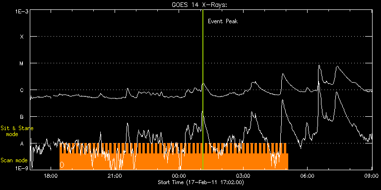 EIS Observation timeline overlay to GOES-Xray curve Code 1" 2" 40" 266" EIS Observations list for this event: STUDY ACRONYM ID DATE OBSERVED DESCRIPTION NOAA# TARGET 0 HH_Flare_180x160_v2 | 21085 | 2011/02/17 18:25:13 | Fast Scan Flare AR 11158 | 1158 | Flare TIMELINE ID DATE OBSERVED FITS FILE XCEN (+W/-E) YCEN (+N/-S) DUR ----------------------------------------------------------------------------------------------------------------- 21085 | 2011/02/17 18:25:13.000 | eis_l0_20110217_182513.fits.gz | 665.82 | -261.60 | 5m47s 21085 | 2011/02/17 18:31:03.000 | eis_l0_20110217_183103.fits.gz | 666.36 | -261.75 | 5m46s 21085 | 2011/02/17 18:36:52.000 | eis_l0_20110217_183652.fits.gz | 666.98 | -261.83 | 5m47s 21085 | 2011/02/17 18:42:41.000 | eis_l0_20110217_184241.fits.gz | 667.52 | -261.91 | 5m47s 21085 | 2011/02/17 18:48:31.000 | eis_l0_20110217_184831.fits.gz | 667.98 | -261.91 | 5m47s 21085 | 2011/02/17 18:54:20.000 | eis_l0_20110217_185420.fits.gz | 668.68 | -261.98 | 5m47s 21085 | 2011/02/17 19:00:10.000 | eis_l0_20110217_190010.fits.gz | 669.30 | -262.14 | 5m46s 21085 | 2011/02/17 19:05:59.000 | eis_l0_20110217_190559.fits.gz | 669.68 | -262.14 | 5m46s 21085 | 2011/02/17 19:11:48.000 | eis_l0_20110217_191148.fits.gz | 670.30 | -262.06 | 5m47s 21085 | 2011/02/17 19:17:37.000 | eis_l0_20110217_191737.fits.gz | 670.84 | -262.14 | 5m46s 21085 | 2011/02/17 19:23:26.000 | eis_l0_20110217_192326.fits.gz | 671.38 | -262.29 | 5m46s 21085 | 2011/02/17 19:29:15.000 | eis_l0_20110217_192915.fits.gz | 672.00 | -262.29 | 5m46s 21085 | 2011/02/17 19:35:04.000 | eis_l0_20110217_193504.fits.gz | 672.54 | -262.37 | 5m47s 21085 | 2011/02/17 19:40:54.000 | eis_l0_20110217_194054.fits.gz | 673.31 | -262.52 | 5m47s 21085 | 2011/02/17 19:46:44.000 | eis_l0_20110217_194644.fits.gz | 673.70 | -262.60 | 5m46s 21085 | 2011/02/17 19:52:33.000 | eis_l0_20110217_195233.fits.gz | 674.24 | -262.68 | 5m47s 21085 | 2011/02/17 19:58:23.000 | eis_l0_20110217_195823.fits.gz | 674.86 | -262.83 | 5m47s 21085 | 2011/02/17 20:04:12.000 | eis_l0_20110217_200412.fits.gz | 675.40 | -262.83 | 5m47s 21085 | 2011/02/17 20:10:02.000 | eis_l0_20110217_201002.fits.gz | 676.02 | -262.91 | 5m47s 21085 | 2011/02/17 20:15:52.000 | eis_l0_20110217_201552.fits.gz | 676.56 | -262.99 | 5m46s 21085 | 2011/02/17 20:21:41.000 | eis_l0_20110217_202141.fits.gz | 677.10 | -263.07 | 5m47s 21085 | 2011/02/17 20:27:30.000 | eis_l0_20110217_202730.fits.gz | 677.64 | -263.22 | 5m47s 21085 | 2011/02/17 20:33:20.000 | eis_l0_20110217_203320.fits.gz | 678.26 | -263.07 | 5m46s 21085 | 2011/02/17 20:39:09.000 | eis_l0_20110217_203909.fits.gz | 678.80 | -263.30 | 5m46s 21085 | 2011/02/17 20:44:58.000 | eis_l0_20110217_204458.fits.gz | 679.26 | -263.30 | 5m46s 21085 | 2011/02/17 20:50:47.000 | eis_l0_20110217_205047.fits.gz | 679.88 | -263.45 | 5m47s 21085 | 2011/02/17 20:56:36.000 | eis_l0_20110217_205636.fits.gz | 680.50 | -263.45 | 5m47s 21085 | 2011/02/17 21:02:25.000 | eis_l0_20110217_210225.fits.gz | 680.96 | -263.61 | 5m47s 21085 | 2011/02/17 21:08:15.000 | eis_l0_20110217_210815.fits.gz | 681.58 | -263.53 | 5m47s 21085 | 2011/02/17 21:14:05.000 | eis_l0_20110217_211405.fits.gz | 682.12 | -263.61 | 5m46s 21085 | 2011/02/17 21:19:54.000 | eis_l0_20110217_211954.fits.gz | 682.66 | -263.68 | 5m47s 21085 | 2011/02/17 21:25:44.000 | eis_l0_20110217_212544.fits.gz | 683.28 | -263.76 | 5m46s 21085 | 2011/02/17 21:31:33.000 | eis_l0_20110217_213133.fits.gz | 683.82 | -263.91 | 5m47s 21085 | 2011/02/17 21:37:22.000 | eis_l0_20110217_213722.fits.gz | 684.28 | -263.91 | 5m47s 21085 | 2011/02/17 21:43:12.000 | eis_l0_20110217_214312.fits.gz | 684.90 | -263.99 | 5m46s 21085 | 2011/02/17 21:49:01.000 | eis_l0_20110217_214901.fits.gz | 685.52 | -264.30 | 5m46s 21085 | 2011/02/17 21:54:49.000 | eis_l0_20110217_215449.fits.gz | 685.98 | -264.07 | 5m47s 21085 | 2011/02/17 22:00:39.000 | eis_l0_20110217_220039.fits.gz | 686.52 | -264.30 | 5m46s 21085 | 2011/02/17 22:06:27.000 | eis_l0_20110217_220627.fits.gz | 687.14 | -264.30 | 5m47s 21085 | 2011/02/17 22:12:17.000 | eis_l0_20110217_221217.fits.gz | 687.68 | -264.53 | 5m47s 21085 | 2011/02/17 22:18:07.000 | eis_l0_20110217_221807.fits.gz | 688.14 | -264.61 | 5m46s 21085 | 2011/02/17 22:23:56.000 | eis_l0_20110217_222356.fits.gz | 688.68 | -264.69 | 5m47s 21085 | 2011/02/17 22:29:46.000 | eis_l0_20110217_222946.fits.gz | 689.30 | -264.69 | 5m47s 21085 | 2011/02/17 22:35:36.000 | eis_l0_20110217_223536.fits.gz | 689.77 | -264.69 | 5m46s 21085 | 2011/02/17 22:41:25.000 | eis_l0_20110217_224125.fits.gz | 690.46 | -264.76 | 5m47s 21085 | 2011/02/17 22:47:15.000 | eis_l0_20110217_224715.fits.gz | 690.92 | -264.76 | 5m46s 21085 | 2011/02/17 22:53:04.000 | eis_l0_20110217_225304.fits.gz | 691.47 | -264.84 | 5m46s 21085 | 2011/02/17 22:58:53.000 | eis_l0_20110217_225853.fits.gz | 692.08 | -265.00 | 5m46s 21085 | 2011/02/17 23:04:42.000 | eis_l0_20110217_230442.fits.gz | 692.62 | -265.15 | 5m46s 21085 | 2011/02/17 23:10:31.000 | eis_l0_20110217_231031.fits.gz | 693.09 | -265.23 | 5m46s 21085 | 2011/02/17 23:16:20.000 | eis_l0_20110217_231620.fits.gz | 693.55 | -265.23 | 5m46s 21085 | 2011/02/17 23:22:09.000 | eis_l0_20110217_232209.fits.gz | 694.25 | -265.46 | 5m47s 21085 | 2011/02/17 23:27:59.000 | eis_l0_20110217_232759.fits.gz | 694.71 | -265.46 | 5m47s 21085 | 2011/02/17 23:33:48.000 | eis_l0_20110217_233348.fits.gz | 695.33 | -265.38 | 5m47s 21085 | 2011/02/17 23:39:38.000 | eis_l0_20110217_233938.fits.gz | 695.79 | -265.54 | 5m47s 21085 | 2011/02/17 23:45:28.000 | eis_l0_20110217_234528.fits.gz | 696.26 | -265.69 | 5m46s 21085 | 2011/02/17 23:51:17.000 | eis_l0_20110217_235117.fits.gz | 696.87 | -265.69 | 5m47s 21085 | 2011/02/17 23:57:07.000 | eis_l0_20110217_235707.fits.gz | 697.49 | -265.92 | 5m47s 21085 | 2011/02/18 00:02:57.000 | eis_l0_20110218_000257.fits.gz | 697.96 | -265.85 | 5m46s 21085 | 2011/02/18 00:08:46.000 | eis_l0_20110218_000846.fits.gz | 698.49 | -266.00 | 5m46s 21085 | 2011/02/18 00:14:35.000 | eis_l0