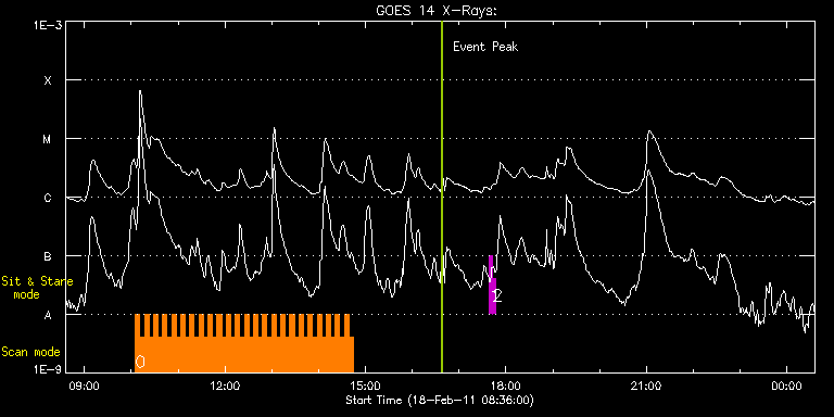 EIS Observation timeline overlay to GOES-Xray curve