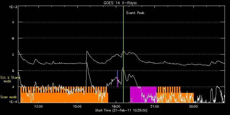EIS Observation timeline overlay to GOES-Xray curve Code 1" 2" 40" 266" EIS Observations list for this event: STUDY ACRONYM ID DATE OBSERVED DESCRIPTION NOAA# TARGET 0 HH_Flare_180x160_v2 | 21108 | 2011/02/21 10:35:28 | Fast Scan Observations of AR 11162 | 1162 | Flare TIMELINE ID DATE OBSERVED FITS FILE XCEN (+W/-E) YCEN (+N/-S) DUR ----------------------------------------------------------------------------------------------------------------- 21108 | 2011/02/21 10:35:28.000 | eis_l0_20110221_103528.fits.gz | 551.18 | 388.75 | 5m47s 21108 | 2011/02/21 10:41:18.000 | eis_l0_20110221_104118.fits.gz | 551.96 | 388.67 | 5m46s 21108 | 2011/02/21 10:47:07.000 | eis_l0_20110221_104707.fits.gz | 552.58 | 388.67 | 5m47s 21108 | 2011/02/21 10:52:57.000 | eis_l0_20110221_105257.fits.gz | 553.27 | 388.52 | 5m46s 21108 | 2011/02/21 10:58:46.000 | eis_l0_20110221_105846.fits.gz | 553.89 | 388.52 | 5m47s 21108 | 2011/02/21 11:04:36.000 | eis_l0_20110221_110436.fits.gz | 554.58 | 388.44 | 5m46s 21108 | 2011/02/21 11:10:25.000 | eis_l0_20110221_111025.fits.gz | 555.28 | 388.44 | 5m47s 21108 | 2011/02/21 11:16:15.000 | eis_l0_20110221_111615.fits.gz | 556.05 | 388.21 | 5m46s 21108 | 2011/02/21 11:22:04.000 | eis_l0_20110221_112204.fits.gz | 556.67 | 388.29 | 5m46s 21108 | 2011/02/21 11:27:53.000 | eis_l0_20110221_112753.fits.gz | 557.29 | 388.29 | 5m47s 21108 | 2011/02/21 11:33:42.000 | eis_l0_20110221_113342.fits.gz | 558.06 | 388.21 | 5m47s 21108 | 2011/02/21 11:39:31.000 | eis_l0_20110221_113931.fits.gz | 558.75 | 388.06 | 5m47s 21108 | 2011/02/21 11:45:21.000 | eis_l0_20110221_114521.fits.gz | 559.37 | 388.13 | 5m46s 21108 | 2011/02/21 11:51:10.000 | eis_l0_20110221_115110.fits.gz | 560.07 | 387.98 | 5m46s 21108 | 2011/02/21 11:56:59.000 | eis_l0_20110221_115659.fits.gz | 560.84 | 387.90 | 5m47s 21108 | 2011/02/21 12:02:49.000 | eis_l0_20110221_120249.fits.gz | 561.46 | 387.75 | 5m47s 21108 | 2011/02/21 12:08:39.000 | eis_l0_20110221_120839.fits.gz | 562.08 | 387.90 | 5m46s 21108 | 2011/02/21 12:14:28.000 | eis_l0_20110221_121428.fits.gz | 562.77 | 387.75 | 5m47s 21108 | 2011/02/21 12:20:18.000 | eis_l0_20110221_122018.fits.gz | 563.47 | 387.75 | 5m47s 21108 | 2011/02/21 12:26:07.000 | eis_l0_20110221_122607.fits.gz | 564.16 | 387.67 | 5m47s 21108 | 2011/02/21 12:31:57.000 | eis_l0_20110221_123157.fits.gz | 564.86 | 387.36 | 5m46s 21108 | 2011/02/21 12:37:46.000 | eis_l0_20110221_123746.fits.gz | 565.55 | 387.44 | 5m47s 21108 | 2011/02/21 12:43:35.000 | eis_l0_20110221_124335.fits.gz | 566.25 | 387.36 | 5m47s 21108 | 2011/02/21 12:49:25.000 | eis_l0_20110221_124925.fits.gz | 566.79 | 387.36 | 5m46s 21108 | 2011/02/21 12:55:14.000 | eis_l0_20110221_125514.fits.gz | 567.48 | 387.13 | 5m46s 21108 | 2011/02/21 13:01:03.000 | eis_l0_20110221_130103.fits.gz | 568.26 | 387.21 | 5m46s 21108 | 2011/02/21 13:06:52.000 | eis_l0_20110221_130652.fits.gz | 568.87 | 387.05 | 5m46s 21108 | 2011/02/21 13:12:41.000 | eis_l0_20110221_131241.fits.gz | 569.57 | 387.05 | 5m47s 21108 | 2011/02/21 13:18:30.000 | eis_l0_20110221_131830.fits.gz | 570.19 | 386.90 | 5m47s 21108 | 2011/02/21 13:24:20.000 | eis_l0_20110221_132420.fits.gz | 570.80 | 386.90 | 5m47s 21108 | 2011/02/21 13:30:10.000 | eis_l0_20110221_133010.fits.gz | 571.58 | 386.82 | 5m47s 21108 | 2011/02/21 13:36:00.000 | eis_l0_20110221_133600.fits.gz | 572.20 | 386.74 | 5m46s 21108 | 2011/02/21 13:41:49.000 | eis_l0_20110221_134149.fits.gz | 572.89 | 386.67 | 5m47s 21108 | 2011/02/21 13:47:39.000 | eis_l0_20110221_134739.fits.gz | 573.59 | 386.74 | 5m46s 21108 | 2011/02/21 13:53:28.000 | eis_l0_20110221_135328.fits.gz | 574.20 | 386.67 | 5m47s 21108 | 2011/02/21 13:59:17.000 | eis_l0_20110221_135917.fits.gz | 574.98 | 386.67 | 5m47s 21108 | 2011/02/21 14:05:07.000 | eis_l0_20110221_140507.fits.gz | 575.52 | 386.59 | 5m45s 21108 | 2011/02/21 14:10:55.000 | eis_l0_20110221_141055.fits.gz | 576.29 | 386.28 | 5m46s 21108 | 2011/02/21 14:16:44.000 | eis_l0_20110221_141644.fits.gz | 576.83 | 386.51 | 5m46s 21108 | 2011/02/21 14:22:33.000 | eis_l0_20110221_142233.fits.gz | 577.60 | 386.20 | 5m47s 21108 | 2011/02/21 14:28:22.000 | eis_l0_20110221_142822.fits.gz | 578.22 | 386.12 | 5m47s 21108 | 2011/02/21 14:34:12.000 | eis_l0_20110221_143412.fits.gz | 578.92 | 386.12 | 5m47s 21108 | 2011/02/21 14:40:02.000 | eis_l0_20110221_144002.fits.gz | 579.46 | 386.20 | 5m46s 21108 | 2011/02/21 14:45:51.000 | eis_l0_20110221_144551.fits.gz | 571.58 | 386.82 | 5m47s 21108 | 2011/02/21 14:51:41.000 | eis_l0_20110221_145141.fits.gz | 581.31 | 385.89 | 5m46s 21108 | 2011/02/21 14:57:30.000 | eis_l0_20110221_145730.fits.gz | 581.54 | 385.97 | 5m47s 21108 | 2011/02/21 15:03:19.000 | eis_l0_20110221_150319.fits.gz | 582.24 | 385.74 | 5m47s 21108 | 2011/02/21 15:09:09.000 | eis_l0_20110221_150909.fits.gz | 582.86 | 385.82 | 5m46s 21108 | 2011/02/21 15:14:58.000 | eis_l0_20110221_151458.fits.gz | 583.55 | 385.66 | 5m46s 21108 | 2011/02/21 15:20:47.000 | eis_l0_20110221_152047.fits.gz | 584.17 | 385.66 | 5m46s 21108 | 2011/02/21 15:26:35.000 | eis_l0_20110221_152635.fits.gz | 584.94 | 385.51 | 5m47s 21108 | 2011/02/21 15:32:24.000 | eis_l0_20110221_153224.fits.gz | 585.56 | 385.51 | 5m47s 21108 | 2011/02/21 15:38:14.000 | eis_l0_20110221_153814.fits.gz | 586.18 | 385.51 | 5m46s 21108 | 2011/02/21 15:44:03.000 | eis_l0_20110221_154403.fits.gz | 586.87 | 385.43 | 5m47s 21108 | 2011/02/21 15:49:53.000 | eis_l0_20110221_154953.fits.gz | 587.57 | 385.27 | 5m46s 21108 | 2011/02/21 15:55:42.000 | eis_l0_20110221_155542.fits.gz | 588.26 | 385.12 | 5m47s 21108 | 2011/02/21 16:01:32.000 | eis_l0_20110221_160132.fits.gz | 588.80 | 385.04 | 5m47s 21108 | 2011/02/21 16:07:21.000 | eis_l0_20110221_160721.fits.gz | 589.50 | 385.04 | 5m47s 21108 | 2011/02/21 16:13:11.000 | eis_l0_20110221_161311.fits.gz | 590.12 | 385.04 | 5m46s 21108 | 2011/02/21 16:19:00.000 | eis_l0_20110221_161900.fits.gz | 590.81 | 385.04 | 5m46s 21108 | 2011/02/21 16:24:49.000 | eis_l0_20110221_162449.fits.gz | 591.51 | 384.81 | 5m46s