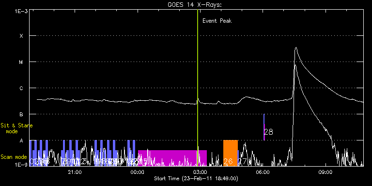 EIS Observation timeline overlay to GOES-Xray curve Code 1" 2" 40" 266" EIS Observations list for this event: STUDY ACRONYM ID DATE OBSERVED DESCRIPTION NOAA# TARGET 0 full_sun_slot_scan_1 | 21157 | 2011/02/23 18:49:16 | HOP 130: Full Sun Scan (bottom) 1/15 | | Quiet Sun TIMELINE ID DATE OBSERVED FITS FILE XCEN (+W/-E) YCEN (+N/-S) DUR ----------------------------------------------------------------------------------------------------------------- 21157 | 2011/02/23 18:49:16.000 | eis_l0_20110223_184916.fits.gz | 920.69 | -286.50 | 5m26s 1 full_sun_slot_scan_1 | 21158 | 2011/02/23 18:58:13 | HOP 130: Full Sun Scan (top) 2/15 | | Quiet Sun TIMELINE ID DATE OBSERVED FITS FILE XCEN (+W/-E) YCEN (+N/-S) DUR ----------------------------------------------------------------------------------------------------------------- 21158 | 2011/02/23 18:58:13.000 | eis_l0_20110223_185813.fits.gz | 452.72 | 185.50 | 5m27s 2 full_sun_slot_scan_1 | 21159 | 2011/02/23 19:03:45 | HOP 130: Full Sun Scan (bottom) 2/15 | | Quiet Sun TIMELINE ID DATE OBSERVED FITS FILE XCEN (+W/-E) YCEN (+N/-S) DUR ----------------------------------------------------------------------------------------------------------------- 21159 | 2011/02/23 19:03:45.000 | eis_l0_20110223_190345.fits.gz | 452.64 | -286.50 | 5m27s 3 full_sun_slot_scan_1 | 21160 | 2011/02/23 19:14:13 | HOP 130: Full Sun Scan (top) 3/15 | | Quiet Sun TIMELINE ID DATE OBSERVED FITS FILE XCEN (+W/-E) YCEN (+N/-S) DUR ----------------------------------------------------------------------------------------------------------------- 21160 | 2011/02/23 19:14:13.000 | eis_l0_20110223_191413.fits.gz | -15.32 | 185.50 | 5m27s 4 full_sun_slot_scan_1 | 21161 | 2011/02/23 19:19:45 | HOP 130: Full Sun Scan (bottom) 3/15 | | Quiet Sun TIMELINE ID DATE OBSERVED FITS FILE XCEN (+W/-E) YCEN (+N/-S) DUR ----------------------------------------------------------------------------------------------------------------- 21161 | 2011/02/23 19:19:45.000 | eis_l0_20110223_191945.fits.gz | -15.32 | -286.42 | 5m27s 5 full_sun_slot_scan_1 | 21162 | 2011/02/23 19:30:13 | HOP 130: Full Sun Scan (top) 4/15 | | Quiet Sun TIMELINE ID DATE OBSERVED FITS FILE XCEN (+W/-E) YCEN (+N/-S) DUR ----------------------------------------------------------------------------------------------------------------- 21162 | 2011/02/23 19:30:13.000 | eis_l0_20110223_193013.fits.gz | -483.29 | 185.58 | 5m27s 6 full_sun_slot_scan_1 | 21163 | 2011/02/23 19:35:45 | HOP 130: Full Sun Scan (bottom) 4/15 | | Quiet Sun TIMELINE ID DATE OBSERVED FITS FILE XCEN (+W/-E) YCEN (+N/-S) DUR ----------------------------------------------------------------------------------------------------------------- 21163 | 2011/02/23 19:35:45.000 | eis_l0_20110223_193545.fits.gz | -483.29 | -286.50 | 5m27s 7 full_sun_slot_scan_1 | 21164 | 2011/02/23 20:20:13 | HOP 130: Full Sun Scan (top) 5/15 | | Quiet Sun TIMELINE ID DATE OBSERVED FITS FILE XCEN (+W/-E) YCEN (+N/-S) DUR ----------------------------------------------------------------------------------------------------------------- 21164 | 2011/02/23 20:20:13.000 | eis_l0_20110223_202013.fits.gz | -9884.72 | -9777.20 | 5m28s 8 full_sun_slot_scan_1 | 21165 | 2011/02/23 20:25:46 | HOP 130: Full Sun Scan (bottom) 5/15 | | Quiet Sun TIMELINE ID DATE OBSERVED FITS FILE XCEN (+W/-E) YCEN (+N/-S) DUR ----------------------------------------------------------------------------------------------------------------- 21165 | 2011/02/23 20:25:46.000 | eis_l0_20110223_202546.fits.gz | -9884.72 | -10249.20 | 5m26s 9 full_sun_slot_scan_1 | 21166 | 2011/02/23 20:36:13 | HOP 130: Full Sun Scan (top only) 6/1 | | Quiet Sun TIMELINE ID DATE OBSERVED FITS FILE XCEN (+W/-E) YCEN (+N/-S) DUR ----------------------------------------------------------------------------------------------------------------- 21166 | 2011/02/23 20:36:13.000 | eis_l0_20110223_203613.fits.gz | 736.37 | 655.71 | 5m27s 10 full_sun_slot_scan_1 | 21167 | 2011/02/23 20:44:14 | HOP 130: Full Sun Scan (top) 7/15 | | Quiet Sun TIMELINE ID DATE OBSERVED FITS FILE XCEN (+W/-E) YCEN (+N/-S) DUR ----------------------------------------------------------------------------------------------------------------- 21167 | 2011/02/23 20:44:14.000 | eis_l0_20110223_204414.fits.gz | 648.31 | 807.96 | 5m27s 11 full_sun_slot_scan_1 | 21168 | 2011/02/23 20:49:46 | HOP 130: Full Sun Scan (bottom) 7/15 | | Quiet Sun TIMELINE ID DATE OBSERVED FITS FILE XCEN (+W/-E) YCEN (+N/-S) DUR ----------------------------------------------------------------------------------------------------------------- 21168 | 2011/02/23 20:49:46.000 | eis_l0_20110223_204946.fits.gz | 395.79 | 560.60 | 5m27s 12 full_sun_slot_scan_1 | 21169 | 2011/02/23 21:02:13 | HOP 130: Full Sun Scan (top) 8/15 | | Quiet Sun TIMELINE ID DATE OBSERVED FITS FILE XCEN (+W/-E) YCEN (+N/-S) DUR ----------------------------------------------------------------------------------------------------------------- 21169 | 2011/02/23 21:02:13.000 | eis_l0_20110223_210213.fits.gz | -15.32 | 1126.69 | 5m27s 13 full_sun_slot_scan_1 | 21170 | 2011/02/23 21:07:45 | HOP 130: Full Sun Scan (bottom) 8/15 | | Quiet Sun TIMELINE ID DATE OBSERVED FITS FILE XCEN (+W/-E) YCEN (+N/-S) DUR ----------------------------------------------------------------------------------------------------------------- 21170 | 2011/02/23 21:07:45.000 | eis_l0_20110223_210745.fits.gz | -15.25 | 654.45 | 5m27s 14 full_sun_slot_scan_1 | 21171 | 2011/02/23 21:57:13 | HOP 130: Full Sun Scan (top) 9/15 | | Quiet Sun TIMELINE ID DATE OBSERVED FITS FILE XCEN (+W/-E) YCEN (+N/-S) DUR ----------------------------------------------------------------------------------------------------------------- 21171 | 2011/02/23 21:57:13.000 | eis_l0_20110223_215713.fits.gz | -426.43 | 1032.52 | 5m27s 15 full_sun_slot_scan_1 | 21172 | 2011/02/23 22:02:45 | HOP 130: Full Sun Scan (bottom) 9/15 | | Quiet Sun TIMELINE ID DATE OBSERVED FITS FILE XCEN (+W/-E) YCEN (+N/-S) DUR ---
