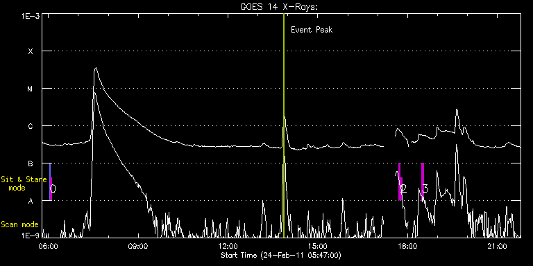 EIS Observation timeline overlay to GOES-Xray curve Code 1" 2" 40" 266" EIS Observations list for this event: STUDY ACRONYM ID DATE OBSERVED DESCRIPTION NOAA# TARGET 0 SYNOP005_A | 21186 | 2011/02/24 06:02:40 | | | Quiet Sun TIMELINE ID DATE OBSERVED FITS FILE XCEN (+W/-E) YCEN (+N/-S) DUR ----------------------------------------------------------------------------------------------------------------- 21186 | 2011/02/24 06:02:40.000 | eis_l0_20110224_060240.fits.gz | -19.52 | -0.58 | 1m30s 21186 | 2011/02/24 06:04:21.000 | eis_l0_20110224_060421.fits.gz | -0.10 | -0.58 | 1m30s 1 regcal071 | 21188 | 2011/02/24 17:41:42 | Dark exposures, CCD bottom rows (100s | | Engineering TIMELINE ID DATE OBSERVED FITS FILE XCEN (+W/-E) YCEN (+N/-S) DUR ----------------------------------------------------------------------------------------------------------------- 21188 | 2011/02/24 17:41:42.000 | eis_l0_20110224_174142.fits.gz | -1.32 | -1232.55 | 3m22s 2 regcal072 | 21189 | 2011/02/24 17:45:31 | Dark exposures, top CCD rows (100s exp | | Engineering TIMELINE ID DATE OBSERVED FITS FILE XCEN (+W/-E) YCEN (+N/-S) DUR ----------------------------------------------------------------------------------------------------------------- 21189 | 2011/02/24 17:45:31.000 | eis_l0_20110224_174531.fits.gz | -1.17 | -721.47 | 3m22s 3 regcal071 | 21190 | 2011/02/24 18:28:42 | Dark exposures, CCD bottom rows (100s | | Engineering TIMELINE ID DATE OBSERVED FITS FILE XCEN (+W/-E) YCEN (+N/-S) DUR ----------------------------------------------------------------------------------------------------------------- 21190 | 2011/02/24 18:28:42.000 | eis_l0_20110224_182842.fits.gz | -1.25 | -1232.55 | 3m22s : Check study information : Download file : View thumbnails For this event, also check for: