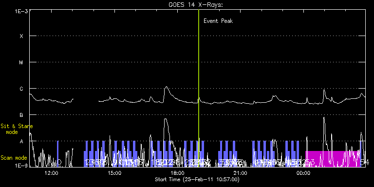 EIS Observation timeline overlay to GOES-Xray curve Code 1" 2" 40" 266" EIS Observations list for this event: STUDY ACRONYM ID DATE OBSERVED DESCRIPTION NOAA# TARGET 0 PRY_slot_context_v3 | 21247 | 2011/02/25 12:15:47 | Active Region STEREO/Cluster Quadratur | 1161 | Active Region TIMELINE ID DATE OBSERVED FITS FILE XCEN (+W/-E) YCEN (+N/-S) DUR ----------------------------------------------------------------------------------------------------------------- 21247 | 2011/02/25 12:15:47.000 | eis_l0_20110225_121547.fits.gz | 859.82 | 314.52 | 2m56s 1 full_sun_slot_scan_1 | 21192 | 2011/02/25 13:32:13 | HOP 130: Full Sun Scan (top) 1/15 | 1161 | Quiet Sun TIMELINE ID DATE OBSERVED FITS FILE XCEN (+W/-E) YCEN (+N/-S) DUR ----------------------------------------------------------------------------------------------------------------- 21192 | 2011/02/25 13:32:13.000 | eis_l0_20110225_133213.fits.gz | 920.76 | 185.50 | 5m27s 2 full_sun_slot_scan_1 | 21193 | 2011/02/25 13:37:46 | HOP 130: Full Sun Scan (bottom) 1/15 | | Quiet Sun TIMELINE ID DATE OBSERVED FITS FILE XCEN (+W/-E) YCEN (+N/-S) DUR ----------------------------------------------------------------------------------------------------------------- 21193 | 2011/02/25 13:37:46.000 | eis_l0_20110225_133746.fits.gz | 920.69 | -286.50 | 5m26s 3 full_sun_slot_scan_1 | 21194 | 2011/02/25 13:48:13 | HOP 130: Full Sun Scan (top) 2/15 | | Quiet Sun TIMELINE ID DATE OBSERVED FITS FILE XCEN (+W/-E) YCEN (+N/-S) DUR ----------------------------------------------------------------------------------------------------------------- 21194 | 2011/02/25 13:48:13.000 | eis_l0_20110225_134813.fits.gz | 452.64 | 185.50 | 5m27s 4 full_sun_slot_scan_1 | 21195 | 2011/02/25 13:53:45 | HOP 130: Full Sun Scan (bottom) 2/15 | | Quiet Sun TIMELINE ID DATE OBSERVED FITS FILE XCEN (+W/-E) YCEN (+N/-S) DUR ----------------------------------------------------------------------------------------------------------------- 21195 | 2011/02/25 13:53:45.000 | eis_l0_20110225_135345.fits.gz | 452.57 | -286.35 | 5m27s 5 full_sun_slot_scan_1 | 21196 | 2011/02/25 14:04:13 | HOP 130: Full Sun Scan (top) 3/15 | | Quiet Sun TIMELINE ID DATE OBSERVED FITS FILE XCEN (+W/-E) YCEN (+N/-S) DUR ----------------------------------------------------------------------------------------------------------------- 21196 | 2011/02/25 14:04:13.000 | eis_l0_20110225_140413.fits.gz | -15.32 | 185.42 | 5m27s 6 full_sun_slot_scan_1 | 21197 | 2011/02/25 14:09:45 | HOP 130: Full Sun Scan (bottom) 3/15 | | Quiet Sun TIMELINE ID DATE OBSERVED FITS FILE XCEN (+W/-E) YCEN (+N/-S) DUR ----------------------------------------------------------------------------------------------------------------- 21197 | 2011/02/25 14:09:45.000 | eis_l0_20110225_140945.fits.gz | -15.25 | -286.58 | 5m27s 7 full_sun_slot_scan_1 | 21198 | 2011/02/25 14:20:13 | HOP 130: Full Sun Scan (top) 4/15 | | Quiet Sun TIMELINE ID DATE OBSERVED FITS FILE XCEN (+W/-E) YCEN (+N/-S) DUR ----------------------------------------------------------------------------------------------------------------- 21198 | 2011/02/25 14:20:13.000 | eis_l0_20110225_142013.fits.gz | -483.29 | 185.58 | 5m27s 8 full_sun_slot_scan_1 | 21199 | 2011/02/25 14:25:45 | HOP 130: Full Sun Scan (bottom) 4/15 | | Quiet Sun TIMELINE ID DATE OBSERVED FITS FILE XCEN (+W/-E) YCEN (+N/-S) DUR ----------------------------------------------------------------------------------------------------------------- 21199 | 2011/02/25 14:25:45.000 | eis_l0_20110225_142545.fits.gz | -483.29 | -286.42 | 5m27s 9 full_sun_slot_scan_1 | 21200 | 2011/02/25 14:55:13 | HOP 130: Full Sun Scan (top) 5/15 | | Quiet Sun TIMELINE ID DATE OBSERVED FITS FILE XCEN (+W/-E) YCEN (+N/-S) DUR ----------------------------------------------------------------------------------------------------------------- 21200 | 2011/02/25 14:55:13.000 | eis_l0_20110225_145513.fits.gz | -9884.72 | -9777.20 | 5m27s 10 full_sun_slot_scan_1 | 21201 | 2011/02/25 15:00:45 | HOP 130: Full Sun Scan (bottom) 5/15 | | Quiet Sun TIMELINE ID DATE OBSERVED FITS FILE XCEN (+W/-E) YCEN (+N/-S) DUR ----------------------------------------------------------------------------------------------------------------- 21201 | 2011/02/25 15:00:45.000 | eis_l0_20110225_150045.fits.gz | -9884.72 | -10249.20 | 5m27s 11 full_sun_slot_scan_1 | 21202 | 2011/02/25 15:11:13 | HOP 130: Full Sun Scan (top only) 6/1 | | Quiet Sun TIMELINE ID DATE OBSERVED FITS FILE XCEN (+W/-E) YCEN (+N/-S) DUR ----------------------------------------------------------------------------------------------------------------- 21202 | 2011/02/25 15:11:13.000 | eis_l0_20110225_151113.fits.gz | 725.56 | 655.63 | 5m27s 12 full_sun_slot_scan_1 | 21203 | 2011/02/25 15:21:13 | HOP 130: Full Sun Scan (top) 7/15 | | Quiet Sun TIMELINE ID DATE OBSERVED FITS FILE XCEN (+W/-E) YCEN (+N/-S) DUR ----------------------------------------------------------------------------------------------------------------- 21203 | 2011/02/25 15:21:13.000 | eis_l0_20110225_152113.fits.gz | 395.79 | 1032.67 | 5m27s 13 full_sun_slot_scan_1 | 21204 | 2011/02/25 15:26:45 | HOP 130: Full Sun Scan (bottom) 7/15 | | Quiet Sun TIMELINE ID DATE OBSERVED FITS FILE XCEN (+W/-E) YCEN (+N/-S) DUR ----------------------------------------------------------------------------------------------------------------- 21204 | 2011/02/25 15:26:45.000 | eis_l0_20110225_152645.fits.gz | 395.79 | 560.60 | 5m26s 14 full_sun_slot_scan_1 | 21205 | 2011/02/25 15:37:13 | HOP 130: Full Sun Scan (top) 8/15 | | Quiet Sun TIMELINE ID DATE OBSERVED FITS FILE XCEN (+W/-E) YCEN (+N/-S) DUR ----------------------------------------------------------------------------------------------------------------- 21205 | 2011/02/25 15:37:13.000 | eis_l0_20110225_153713.fits.gz | -15.40 | 1126.61 | 5m27s 15 full_sun_slot_scan_1 | 21206 | 2011/02/25 15:42:45 | HOP 130: Full Sun Scan (bottom) 8/15 | | Quiet Sun TIMELINE ID DATE OBSERVED FITS FILE XCEN (+W/-E) YCEN (