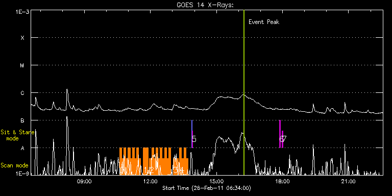 EIS Observation timeline overlay to GOES-Xray curve Code 1" 2" 40" 266" EIS Observations list for this event: STUDY ACRONYM ID DATE OBSERVED DESCRIPTION NOAA# TARGET 0 HH_Flare_180x160_v2 | 21276 | 2011/02/26 10:35:34 | Fast Scan Flare Observations of AR 111 | 1164 | Flare TIMELINE ID DATE OBSERVED FITS FILE XCEN (+W/-E) YCEN (+N/-S) DUR ----------------------------------------------------------------------------------------------------------------- 21276 | 2011/02/26 10:35:34.000 | eis_l0_20110226_103534.fits.gz | -891.18 | 470.48 | 5m46s 21276 | 2011/02/26 10:41:23.000 | eis_l0_20110226_104123.fits.gz | -890.87 | 470.48 | 5m46s 21276 | 2011/02/26 10:47:11.000 | eis_l0_20110226_104711.fits.gz | -890.64 | 470.56 | 5m47s 21276 | 2011/02/26 10:53:01.000 | eis_l0_20110226_105301.fits.gz | -890.25 | 470.56 | 5m46s 21276 | 2011/02/26 10:58:50.000 | eis_l0_20110226_105850.fits.gz | -890.10 | 470.71 | 5m47s 21276 | 2011/02/26 11:04:40.000 | eis_l0_20110226_110440.fits.gz | -889.87 | 470.79 | 5m46s 21276 | 2011/02/26 11:10:29.000 | eis_l0_20110226_111029.fits.gz | -889.56 | 470.94 | 5m46s 21276 | 2011/02/26 11:16:18.000 | eis_l0_20110226_111618.fits.gz | -889.33 | 471.02 | 5m47s 21276 | 2011/02/26 11:22:07.000 | eis_l0_20110226_112207.fits.gz | -889.09 | 471.10 | 5m47s 21276 | 2011/02/26 11:27:57.000 | eis_l0_20110226_112757.fits.gz | -888.86 | 471.10 | 5m46s 1 HH_AR+FLR_RAS_N03 | 21290 | 2011/02/26 11:40:13 | Scan Flare Observations of AR 11164 | 1164 | Active Region TIMELINE ID DATE OBSERVED FITS FILE XCEN (+W/-E) YCEN (+N/-S) DUR ----------------------------------------------------------------------------------------------------------------- 21290 | 2011/02/26 11:40:13.000 | eis_l0_20110226_114013.fits.gz | -886.82 | 471.33 | 13m19s 2 HH_Flare_180x160_v2 | 21291 | 2011/02/26 11:57:13 | Fast Scan Flare Observations of AR 111 | 1164 | Flare TIMELINE ID DATE OBSERVED FITS FILE XCEN (+W/-E) YCEN (+N/-S) DUR ----------------------------------------------------------------------------------------------------------------- 21291 | 2011/02/26 11:57:13.000 | eis_l0_20110226_115713.fits.gz | -887.55 | 471.64 | 5m47s 21291 | 2011/02/26 12:03:03.000 | eis_l0_20110226_120303.fits.gz | -887.32 | 471.79 | 5m46s 21291 | 2011/02/26 12:08:52.000 | eis_l0_20110226_120852.fits.gz | -887.01 | 471.87 | 5m46s 21291 | 2011/02/26 12:14:41.000 | eis_l0_20110226_121441.fits.gz | -886.78 | 471.95 | 5m47s 21291 | 2011/02/26 12:20:31.000 | eis_l0_20110226_122031.fits.gz | -886.54 | 472.02 | 5m46s 21291 | 2011/02/26 12:26:20.000 | eis_l0_20110226_122620.fits.gz | -886.16 | 472.02 | 5m47s 21291 | 2011/02/26 12:32:10.000 | eis_l0_20110226_123210.fits.gz | -886.01 | 472.18 | 5m46s 21291 | 2011/02/26 12:37:59.000 | eis_l0_20110226_123759.fits.gz | -885.70 | 472.41 | 5m46s 21291 | 2011/02/26 12:43:48.000 | eis_l0_20110226_124348.fits.gz | -885.46 | 472.41 | 5m46s 21291 | 2011/02/26 12:49:37.000 | eis_l0_20110226_124937.fits.gz | -885.23 | 472.56 | 5m47s 3 HH_AR+FLR_RAS_N03 | 21292 | 2011/02/26 13:02:13 | Scan Flare Observations of AR 11164 | 1164 | Active Region TIMELINE ID DATE OBSERVED FITS FILE XCEN (+W/-E) YCEN (+N/-S) DUR ----------------------------------------------------------------------------------------------------------------- 21292 | 2011/02/26 13:02:13.000 | eis_l0_20110226_130213.fits.gz | -883.12 | 472.72 | 13m19s 4 HH_Flare_180x160_v2 | 21293 | 2011/02/26 13:19:14 | Fast Scan Flare Observations of AR 111 | 1164 | Flare TIMELINE ID DATE OBSERVED FITS FILE XCEN (+W/-E) YCEN (+N/-S) DUR ----------------------------------------------------------------------------------------------------------------- 21293 | 2011/02/26 13:19:14.000 | eis_l0_20110226_131914.fits.gz | -883.84 | 472.87 | 5m46s 21293 | 2011/02/26 13:25:03.000 | eis_l0_20110226_132503.fits.gz | -883.61 | 473.18 | 5m47s 21293 | 2011/02/26 13:30:53.000 | eis_l0_20110226_133053.fits.gz | -883.22 | 473.11 | 5m46s 21293 | 2011/02/26 13:36:42.000 | eis_l0_20110226_133642.fits.gz | -883.07 | 473.18 | 5m47s 5 SYNOP005_A | 21277 | 2011/02/26 13:52:20 | Synoptic | | Quiet Sun TIMELINE ID DATE OBSERVED FITS FILE XCEN (+W/-E) YCEN (+N/-S) DUR ----------------------------------------------------------------------------------------------------------------- 21277 | 2011/02/26 13:52:20.000 | eis_l0_20110226_135220.fits.gz | -19.52 | -0.50 | 1m30s 21277 | 2011/02/26 13:54:01.000 | eis_l0_20110226_135401.fits.gz | -0.02 | -0.42 | 1m30s 6 regcal071 | 21279 | 2011/02/26 17:51:12 | Dark exposures, CCD bottom rows (100s | | Engineering TIMELINE ID DATE OBSERVED FITS FILE XCEN (+W/-E) YCEN (+N/-S) DUR ----------------------------------------------------------------------------------------------------------------- 21279 | 2011/02/26 17:51:12.000 | eis_l0_20110226_175112.fits.gz | -1.25 | -1243.59 | 3m21s 7 regcal072 | 21280 | 2011/02/26 17:58:12 | Dark exposures, top CCD rows (100s exp | | Engineering TIMELINE ID DATE OBSERVED FITS FILE XCEN (+W/-E) YCEN (+N/-S) DUR ----------------------------------------------------------------------------------------------------------------- 21280 | 2011/02/26 17:58:12.000 | eis_l0_20110226_175812.fits.gz | -1.25 | -732.59 | 3m22s : Check study information : Download file : View thumbnails For this event, also check for: