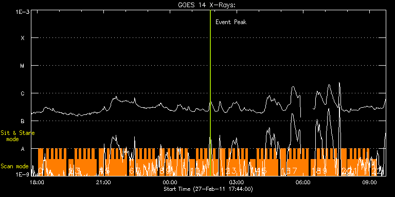 EIS Observation timeline overlay to GOES-Xray curve Code 1" 2" 40" 266" EIS Observations list for this event: STUDY ACRONYM ID DATE OBSERVED DESCRIPTION NOAA# TARGET 0 HH_AR+FLR_RAS_N03 | 21340 | 2011/02/27 18:03:13 | Scan Flare Observations of AR 11164 | 1164 | Active Region TIMELINE ID DATE OBSERVED FITS FILE XCEN (+W/-E) YCEN (+N/-S) DUR ----------------------------------------------------------------------------------------------------------------- 21340 | 2011/02/27 18:03:13.000 | eis_l0_20110227_180313.fits.gz | -704.52 | 499.06 | 13m18s 1 HH_Flare_180x160_v2 | 21341 | 2011/02/27 18:20:13 | Fast Scan Flare Observations of AR 111 | 1164 | Flare TIMELINE ID DATE OBSERVED FITS FILE XCEN (+W/-E) YCEN (+N/-S) DUR ----------------------------------------------------------------------------------------------------------------- 21341 | 2011/02/27 18:20:13.000 | eis_l0_20110227_182013.fits.gz | -704.78 | 499.29 | 5m46s 21341 | 2011/02/27 18:26:02.000 | eis_l0_20110227_182602.fits.gz | -704.24 | 499.45 | 5m46s 21341 | 2011/02/27 18:31:50.000 | eis_l0_20110227_183150.fits.gz | -703.78 | 499.52 | 5m47s 21341 | 2011/02/27 18:37:39.000 | eis_l0_20110227_183739.fits.gz | -703.32 | 499.60 | 5m47s 21341 | 2011/02/27 18:43:29.000 | eis_l0_20110227_184329.fits.gz | -702.85 | 499.68 | 5m46s 21341 | 2011/02/27 18:49:18.000 | eis_l0_20110227_184918.fits.gz | -702.47 | 499.68 | 5m46s 21341 | 2011/02/27 18:55:07.000 | eis_l0_20110227_185507.fits.gz | -702.08 | 499.91 | 5m47s 21341 | 2011/02/27 19:00:57.000 | eis_l0_20110227_190057.fits.gz | -701.54 | 499.91 | 5m46s 21341 | 2011/02/27 19:06:46.000 | eis_l0_20110227_190646.fits.gz | -701.08 | 500.14 | 5m47s 21341 | 2011/02/27 19:12:36.000 | eis_l0_20110227_191236.fits.gz | -700.69 | 500.14 | 5m46s 2 HH_AR+FLR_RAS_N03 | 21342 | 2011/02/27 19:25:13 | Scan Flare Observations of AR 11164 | 1164 | Active Region TIMELINE ID DATE OBSERVED FITS FILE XCEN (+W/-E) YCEN (+N/-S) DUR ----------------------------------------------------------------------------------------------------------------- 21342 | 2011/02/27 19:25:13.000 | eis_l0_20110227_192513.fits.gz | -698.19 | 500.22 | 13m19s 3 HH_Flare_180x160_v2 | 21343 | 2011/02/27 19:42:13 | Fast Scan Flare Observations of AR 111 | 1164 | Flare TIMELINE ID DATE OBSERVED FITS FILE XCEN (+W/-E) YCEN (+N/-S) DUR ----------------------------------------------------------------------------------------------------------------- 21343 | 2011/02/27 19:42:13.000 | eis_l0_20110227_194213.fits.gz | -698.22 | 500.45 | 5m46s 21343 | 2011/02/27 19:48:01.000 | eis_l0_20110227_194801.fits.gz | -697.76 | 500.53 | 5m46s 21343 | 2011/02/27 19:53:50.000 | eis_l0_20110227_195350.fits.gz | -697.45 | 500.53 | 5m47s 21343 | 2011/02/27 19:59:40.000 | eis_l0_20110227_195940.fits.gz | -696.83 | 500.68 | 5m47s 21343 | 2011/02/27 20:05:29.000 | eis_l0_20110227_200529.fits.gz | -696.36 | 500.84 | 5m47s 21343 | 2011/02/27 20:11:19.000 | eis_l0_20110227_201119.fits.gz | -695.98 | 500.99 | 5m47s 21343 | 2011/02/27 20:17:09.000 | eis_l0_20110227_201709.fits.gz | -695.44 | 500.99 | 5m46s 21343 | 2011/02/27 20:22:58.000 | eis_l0_20110227_202258.fits.gz | -694.97 | 500.99 | 5m47s 21343 | 2011/02/27 20:28:47.000 | eis_l0_20110227_202847.fits.gz | -694.51 | 501.15 | 5m47s 21343 | 2011/02/27 20:34:37.000 | eis_l0_20110227_203437.fits.gz | -694.05 | 501.22 | 5m47s 4 HH_AR+FLR_RAS_N03 | 21344 | 2011/02/27 20:47:12 | Scan Flare Observations of AR 11164 | 1164 | Active Region TIMELINE ID DATE OBSERVED FITS FILE XCEN (+W/-E) YCEN (+N/-S) DUR ----------------------------------------------------------------------------------------------------------------- 21344 | 2011/02/27 20:47:12.000 | eis_l0_20110227_204712.fits.gz | -691.55 | 501.38 | 13m19s 5 HH_Flare_180x160_v2 | 21345 | 2011/02/27 21:04:13 | Fast Scan Flare Observations of AR 111 | 1164 | Flare TIMELINE ID DATE OBSERVED FITS FILE XCEN (+W/-E) YCEN (+N/-S) DUR ----------------------------------------------------------------------------------------------------------------- 21345 | 2011/02/27 21:04:13.000 | eis_l0_20110227_210413.fits.gz | -691.65 | 501.69 | 5m46s 21345 | 2011/02/27 21:10:02.000 | eis_l0_20110227_211002.fits.gz | -691.19 | 501.69 | 5m46s 21345 | 2011/02/27 21:15:51.000 | eis_l0_20110227_211551.fits.gz | -690.73 | 501.84 | 5m47s 21345 | 2011/02/27 21:21:40.000 | eis_l0_20110227_212140.fits.gz | -690.26 | 501.84 | 5m47s 21345 | 2011/02/27 21:27:30.000 | eis_l0_20110227_212730.fits.gz | -689.80 | 501.92 | 5m47s 21345 | 2011/02/27 21:33:20.000 | eis_l0_20110227_213320.fits.gz | -689.34 | 502.15 | 5m47s 21345 | 2011/02/27 21:39:10.000 | eis_l0_20110227_213910.fits.gz | -688.87 | 502.15 | 5m47s 21345 | 2011/02/27 21:44:59.000 | eis_l0_20110227_214459.fits.gz | -688.33 | 502.23 | 5m46s 21345 | 2011/02/27 21:50:48.000 | eis_l0_20110227_215048.fits.gz | -687.87 | 502.30 | 5m47s 21345 | 2011/02/27 21:56:38.000 | eis_l0_20110227_215638.fits.gz | -687.33 | 502.30 | 5m46s 6 HH_AR+FLR_RAS_N03 | 21346 | 2011/02/27 22:09:13 | Scan Flare Observations of AR 11164 | 1164 | Active Region TIMELINE ID DATE OBSERVED FITS FILE XCEN (+W/-E) YCEN (+N/-S) DUR ----------------------------------------------------------------------------------------------------------------- 21346 | 2011/02/27 22:09:13.000 | eis_l0_20110227_220913.fits.gz | -684.90 | 502.46 | 13m18s 7 HH_Flare_180x160_v2 | 21347 | 2011/02/27 22:26:13 | Fast Scan Flare Observations of AR 111 | 1164 | Flare TIMELINE ID DATE OBSERVED FITS FILE XCEN (+W/-E) YCEN (+N/-S) DUR ----------------------------------------------------------------------------------------------------------------- 21347 | 2011/02/27 22:26:13.000 | eis_l0_20110227_222613.fits.gz | -684.93 | 502.85 | 5m47s 21347 | 2011/02/27 22:32:02.000 | eis_l0_20110227_223202.fits.gz | -684.47 | 502.85 | 5m47s 21347 | 2011/02/27 22:37:52.000 | eis_l0_20110227_223752.fits.gz | -684.01 | 502.92 | 5m47s 21347 | 2011/02/27 22:43:42.000 | eis_l0_20110227_224342.fits.gz | -683.54 | 503.08 | 5m47s 21347 | 2011/02/27