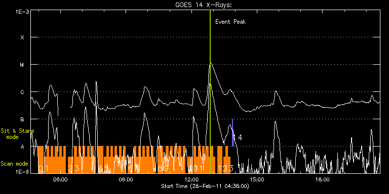 EIS Observation timeline overlay to GOES-Xray curve Code 1" 2" 40" 266" EIS Observations list for this event: STUDY ACRONYM ID DATE OBSERVED DESCRIPTION NOAA# TARGET 0 HH_AR+FLR_RAS_N03 | 21356 | 2011/02/28 04:59:12 | Scan Flare Observations of AR 11164 | 1164 | Active Region TIMELINE ID DATE OBSERVED FITS FILE XCEN (+W/-E) YCEN (+N/-S) DUR ----------------------------------------------------------------------------------------------------------------- 21356 | 2011/02/28 04:59:12.000 | eis_l0_20110228_045912.fits.gz | -649.76 | 508.10 | 13m19s 1 HH_Flare_180x160_v2 | 21357 | 2011/02/28 05:16:12 | Fast Scan Flare Observations of AR 111 | 1164 | Flare TIMELINE ID DATE OBSERVED FITS FILE XCEN (+W/-E) YCEN (+N/-S) DUR ----------------------------------------------------------------------------------------------------------------- 21357 | 2011/02/28 05:16:12.000 | eis_l0_20110228_051612.fits.gz | -649.71 | 508.18 | 5m47s 21357 | 2011/02/28 05:22:01.000 | eis_l0_20110228_052201.fits.gz | -649.24 | 508.25 | 5m47s 21357 | 2011/02/28 05:27:51.000 | eis_l0_20110228_052751.fits.gz | -648.70 | 508.33 | 5m47s 21357 | 2011/02/28 05:33:41.000 | eis_l0_20110228_053341.fits.gz | -648.16 | 508.33 | 5m46s 21357 | 2011/02/28 05:39:30.000 | eis_l0_20110228_053930.fits.gz | -647.70 | 508.48 | 5m47s 21357 | 2011/02/28 05:45:20.000 | eis_l0_20110228_054520.fits.gz | -647.23 | 508.56 | 5m47s 21357 | 2011/02/28 05:51:10.000 | eis_l0_20110228_055110.fits.gz | -646.62 | 508.72 | 5m46s 21357 | 2011/02/28 05:56:59.000 | eis_l0_20110228_055659.fits.gz | -646.08 | 508.79 | 5m47s 21357 | 2011/02/28 06:02:49.000 | eis_l0_20110228_060249.fits.gz | -645.54 | 508.79 | 5m47s 21357 | 2011/02/28 06:08:38.000 | eis_l0_20110228_060838.fits.gz | -644.99 | 508.72 | 5m47s 2 HH_AR+FLR_RAS_N03 | 21358 | 2011/02/28 06:21:12 | Scan Flare Observations of AR 11164 | 1164 | Active Region TIMELINE ID DATE OBSERVED FITS FILE XCEN (+W/-E) YCEN (+N/-S) DUR ----------------------------------------------------------------------------------------------------------------- 21358 | 2011/02/28 06:21:12.000 | eis_l0_20110228_062112.fits.gz | -642.42 | 509.02 | 13m19s 3 HH_Flare_180x160_v2 | 21359 | 2011/02/28 06:38:12 | Fast Scan Flare Observations of AR 111 | 1164 | Flare TIMELINE ID DATE OBSERVED FITS FILE XCEN (+W/-E) YCEN (+N/-S) DUR ----------------------------------------------------------------------------------------------------------------- 21359 | 2011/02/28 06:38:12.000 | eis_l0_20110228_063812.fits.gz | -642.37 | 509.26 | 5m47s 21359 | 2011/02/28 06:44:02.000 | eis_l0_20110228_064402.fits.gz | -641.91 | 509.41 | 5m47s 21359 | 2011/02/28 06:49:51.000 | eis_l0_20110228_064951.fits.gz | -641.36 | 509.41 | 5m47s 21359 | 2011/02/28 06:55:41.000 | eis_l0_20110228_065541.fits.gz | -640.75 | 509.49 | 5m46s 21359 | 2011/02/28 07:01:30.000 | eis_l0_20110228_070130.fits.gz | -640.28 | 509.49 | 5m47s 21359 | 2011/02/28 07:07:20.000 | eis_l0_20110228_070720.fits.gz | -639.82 | 509.64 | 5m47s 21359 | 2011/02/28 07:13:09.000 | eis_l0_20110228_071309.fits.gz | -639.28 | 509.72 | 5m47s 21359 | 2011/02/28 07:18:59.000 | eis_l0_20110228_071859.fits.gz | -638.74 | 509.72 | 5m46s 21359 | 2011/02/28 07:24:48.000 | eis_l0_20110228_072448.fits.gz | -638.20 | 509.80 | 5m46s 21359 | 2011/02/28 07:30:37.000 | eis_l0_20110228_073037.fits.gz | -637.66 | 509.95 | 5m46s 4 HH_AR+FLR_RAS_N03 | 21360 | 2011/02/28 07:43:12 | Scan Flare Observations of AR 11164 | 1164 | Active Region TIMELINE ID DATE OBSERVED FITS FILE XCEN (+W/-E) YCEN (+N/-S) DUR ----------------------------------------------------------------------------------------------------------------- 21360 | 2011/02/28 07:43:12.000 | eis_l0_20110228_074312.fits.gz | -635.00 | 510.18 | 13m19s 5 HH_Flare_180x160_v2 | 21361 | 2011/02/28 08:00:12 | Fast Scan Flare Observations of AR 111 | 1164 | Flare TIMELINE ID DATE OBSERVED FITS FILE XCEN (+W/-E) YCEN (+N/-S) DUR ----------------------------------------------------------------------------------------------------------------- 21361 | 2011/02/28 08:00:12.000 | eis_l0_20110228_080012.fits.gz | -634.95 | 510.34 | 5m47s 21361 | 2011/02/28 08:06:02.000 | eis_l0_20110228_080602.fits.gz | -634.34 | 510.26 | 5m46s 21361 | 2011/02/28 08:11:51.000 | eis_l0_20110228_081151.fits.gz | -633.87 | 510.57 | 5m46s 21361 | 2011/02/28 08:17:40.000 | eis_l0_20110228_081740.fits.gz | -633.41 | 510.73 | 5m46s 21361 | 2011/02/28 08:23:29.000 | eis_l0_20110228_082329.fits.gz | -632.79 | 510.57 | 5m46s 21361 | 2011/02/28 08:29:18.000 | eis_l0_20110228_082918.fits.gz | -632.25 | 510.65 | 5m46s 21361 | 2011/02/28 08:35:06.000 | eis_l0_20110228_083506.fits.gz | -631.71 | 510.88 | 5m46s 21361 | 2011/02/28 08:40:55.000 | eis_l0_20110228_084055.fits.gz | -631.24 | 510.73 | 5m47s 21361 | 2011/02/28 08:46:45.000 | eis_l0_20110228_084645.fits.gz | -630.70 | 510.88 | 5m47s 21361 | 2011/02/28 08:52:35.000 | eis_l0_20110228_085235.fits.gz | -630.09 | 510.88 | 5m46s 6 HH_AR+FLR_RAS_N03 | 21362 | 2011/02/28 09:05:12 | Scan Flare Observations of AR 11164 | 1164 | Active Region TIMELINE ID DATE OBSERVED FITS FILE XCEN (+W/-E) YCEN (+N/-S) DUR ----------------------------------------------------------------------------------------------------------------- 21362 | 2011/02/28 09:05:12.000 | eis_l0_20110228_090512.fits.gz | -627.43 | 511.03 | 13m19s 7 HH_Flare_180x160_v2 | 21363 | 2011/02/28 09:22:12 | Fast Scan Flare Observations of AR 111 | 1164 | Flare TIMELINE ID DATE OBSERVED FITS FILE XCEN (+W/-E) YCEN (+N/-S) DUR ----------------------------------------------------------------------------------------------------------------- 21363 | 2011/02/28 09:22:12.000 | eis_l0_20110228_092212.fits.gz | -627.31 | 511.34 | 5m47s 21363 | 2011/02/28 09:28:02.000 | eis_l0_20110228_092802.fits.gz | -626.92 | 511.34 | 5m46s 21363 | 2011/02/28 09:33:50.000 | eis_l0_20110228_093350.fits.gz | -626.22 | 511.50 | 5m46s 21363 | 2011/02/28 09:39:39.000 | eis_l0_20110228_093939.fits.gz | -625.76 | 511.65 | 5m46s 21363 | 2011/02/28
