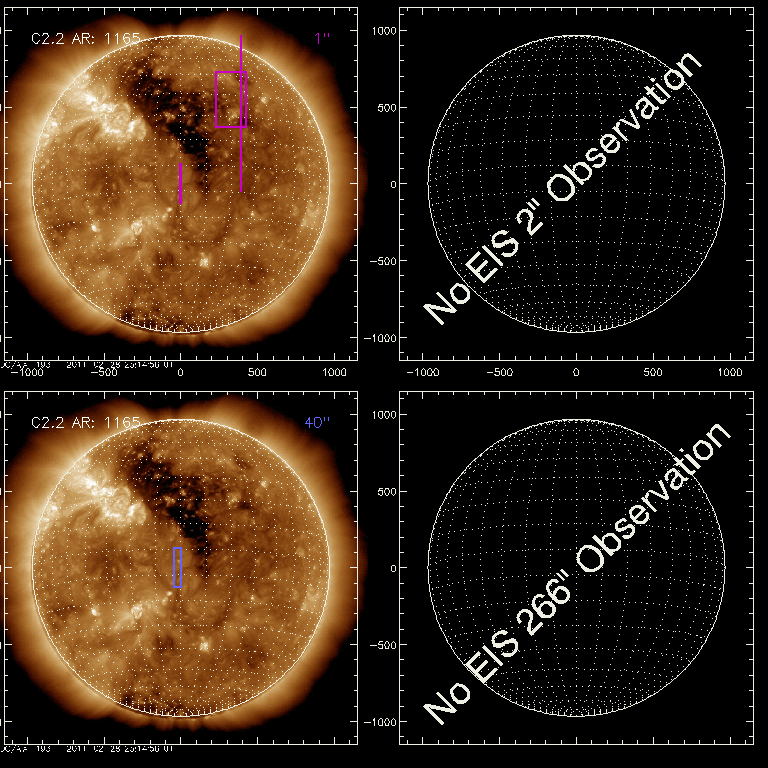 EIS Observation timeline overlay to GOES-Xray curve Code 1" 2" 40" 266" EIS Observations list for this event: STUDY ACRONYM ID DATE OBSERVED DESCRIPTION NOAA# TARGET 0 SYNOP005_A | 21502 | 2011/03/05 06:29:49 | synoptic | | Quiet Sun TIMELINE ID DATE OBSERVED FITS FILE XCEN (+W/-E) YCEN (+N/-S) DUR ----------------------------------------------------------------------------------------------------------------- 21502 | 2011/03/05 06:29:49.000 | eis_l0_20110305_062949.fits.gz | -19.68 | -0.58 | 1m30s 21502 | 2011/03/05 06:31:30.000 | eis_l0_20110305_063130.fits.gz | -0.02 | -0.58 | 1m30s 1 HPW015_DETAILED_MAP | 21511 | 2011/03/05 09:50:14 | Active Region Stereo/Cluster Quadratur | 1164 | Active Region TIMELINE ID DATE OBSERVED FITS FILE XCEN (+W/-E) YCEN (+N/-S) DUR ----------------------------------------------------------------------------------------------------------------- 21511 | 2011/03/05 09:50:14.000 | eis_l0_20110305_095014.fits.gz | 329.27 | 546.95 | 2h35m34s 2 regcal071 | 21583 | 2011/03/05 15:00:12 | Dark exposures, CCD bottom rows (100s | | Engineering TIMELINE ID DATE OBSERVED FITS FILE XCEN (+W/-E) YCEN (+N/-S) DUR ----------------------------------------------------------------------------------------------------------------- 21583 | 2011/03/05 15:00:12.000 | eis_l0_20110305_150012.fits.gz | 392.72 | 201.55 | 3m22s 3 regcal072 | 21584 | 2011/03/05 15:04:01 | Dark exposures, top CCD rows (100s exp | | Engineering TIMELINE ID DATE OBSERVED FITS FILE XCEN (+W/-E) YCEN (+N/-S) DUR ----------------------------------------------------------------------------------------------------------------- 21584 | 2011/03/05 15:04:01.000 | eis_l0_20110305_150401.fits.gz | 393.26 | 712.55 | 3m22s : Check study information : Download file : View thumbnails For this event, also check for: