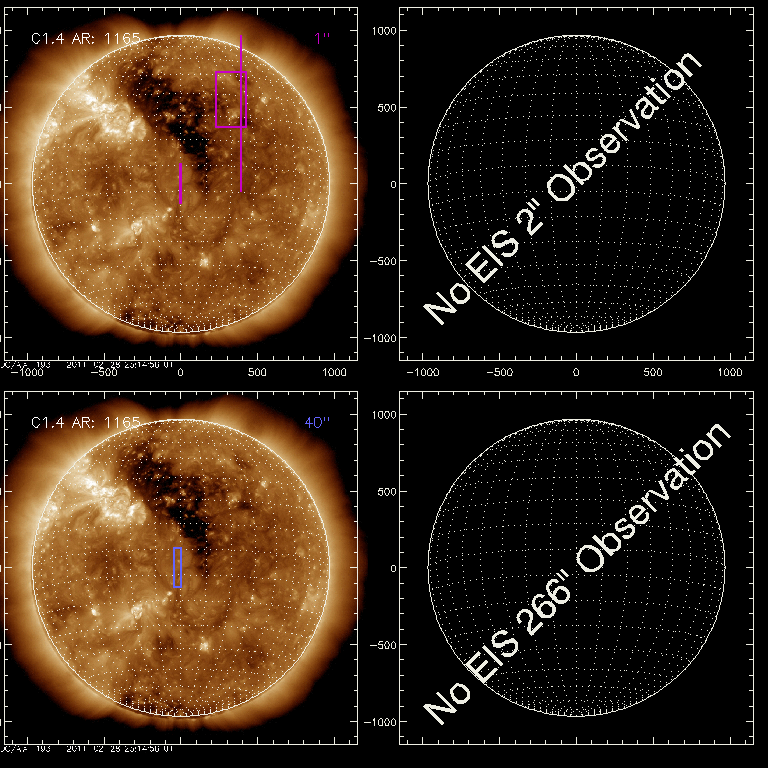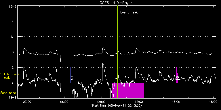 EIS Observation timeline overlay to GOES-Xray curve Code 1" 2" 40" 266" EIS Observations list for this event: STUDY ACRONYM ID DATE OBSERVED DESCRIPTION NOAA# TARGET 0 SYNOP005_A | 21502 | 2011/03/05 06:29:49 | synoptic | | Quiet Sun TIMELINE ID DATE OBSERVED FITS FILE XCEN (+W/-E) YCEN (+N/-S) DUR ----------------------------------------------------------------------------------------------------------------- 21502 | 2011/03/05 06:29:49.000 | eis_l0_20110305_062949.fits.gz | -19.68 | -0.58 | 1m30s 21502 | 2011/03/05 06:31:30.000 | eis_l0_20110305_063130.fits.gz | -0.02 | -0.58 | 1m30s 1 HPW015_DETAILED_MAP | 21511 | 2011/03/05 09:50:14 | Active Region Stereo/Cluster Quadratur | 1164 | Active Region TIMELINE ID DATE OBSERVED FITS FILE XCEN (+W/-E) YCEN (+N/-S) DUR ----------------------------------------------------------------------------------------------------------------- 21511 | 2011/03/05 09:50:14.000 | eis_l0_20110305_095014.fits.gz | 329.27 | 546.95 | 2h35m34s 2 regcal071 | 21583 | 2011/03/05 15:00:12 | Dark exposures, CCD bottom rows (100s | | Engineering TIMELINE ID DATE OBSERVED FITS FILE XCEN (+W/-E) YCEN (+N/-S) DUR ----------------------------------------------------------------------------------------------------------------- 21583 | 2011/03/05 15:00:12.000 | eis_l0_20110305_150012.fits.gz | 392.72 | 201.55 | 3m22s 3 regcal072 | 21584 | 2011/03/05 15:04:01 | Dark exposures, top CCD rows (100s exp | | Engineering TIMELINE ID DATE OBSERVED FITS FILE XCEN (+W/-E) YCEN (+N/-S) DUR ----------------------------------------------------------------------------------------------------------------- 21584 | 2011/03/05 15:04:01.000 | eis_l0_20110305_150401.fits.gz | 393.26 | 712.55 | 3m22s : Check study information : Download file : View thumbnails For this event, also check for: