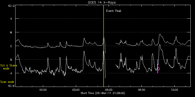 EIS Observation timeline overlay to GOES-Xray curve Code 1" 2" 40" 266" EIS Observations list for this event: STUDY ACRONYM ID DATE OBSERVED DESCRIPTION NOAA# TARGET 0 SYNOP005_A | 21506 | 2011/03/06 10:26:20 | synoptic | | Quiet Sun TIMELINE ID DATE OBSERVED FITS FILE XCEN (+W/-E) YCEN (+N/-S) DUR ----------------------------------------------------------------------------------------------------------------- 21506 | 2011/03/06 10:26:20.000 | eis_l0_20110306_102620.fits.gz | -19.44 | -0.27 | 1m30s 21506 | 2011/03/06 10:28:01.000 | eis_l0_20110306_102801.fits.gz | -0.10 | -0.35 | 1m30s : Check study information : Download file : View thumbnails For this event, also check for: