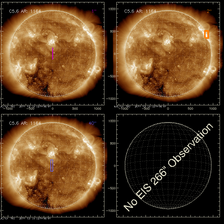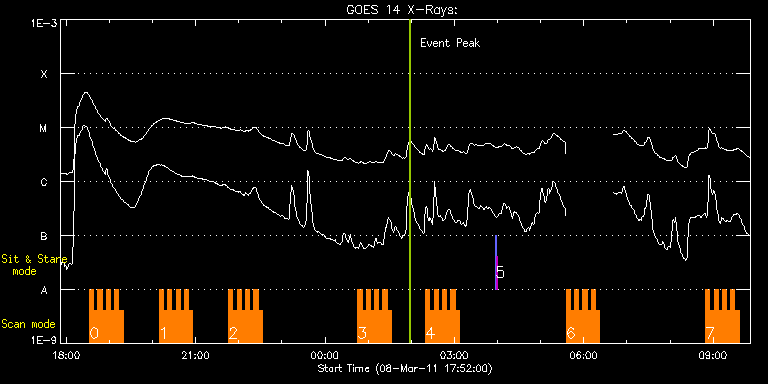 EIS Observation timeline overlay to GOES-Xray curve Code 1" 2" 40" 266" EIS Observations list for this event: STUDY ACRONYM ID DATE OBSERVED DESCRIPTION NOAA# TARGET 0 HH_Flare_180x160_v2 | 21616 | 2011/03/08 18:32:27 | Flare watch AR 11164 | 1164 | Flare TIMELINE ID DATE OBSERVED FITS FILE XCEN (+W/-E) YCEN (+N/-S) DUR ----------------------------------------------------------------------------------------------------------------- 21616 | 2011/03/08 18:32:27.000 | eis_l0_20110308_183227.fits.gz | 849.23 | 436.51 | 5m46s 21616 | 2011/03/08 18:38:16.000 | eis_l0_20110308_183816.fits.gz | 849.61 | 436.51 | 5m46s 21616 | 2011/03/08 18:44:05.000 | eis_l0_20110308_184405.fits.gz | 849.92 | 436.28 | 5m47s 21616 | 2011/03/08 18:49:54.000 | eis_l0_20110308_184954.fits.gz | 850.23 | 436.12 | 5m47s 21616 | 2011/03/08 18:55:44.000 | eis_l0_20110308_185544.fits.gz | 850.62 | 436.04 | 5m47s 21616 | 2011/03/08 19:01:33.000 | eis_l0_20110308_190133.fits.gz | 850.85 | 435.97 | 5m47s 21616 | 2011/03/08 19:07:23.000 | eis_l0_20110308_190723.fits.gz | 851.16 | 435.89 | 5m47s 21616 | 2011/03/08 19:13:13.000 | eis_l0_20110308_191313.fits.gz | 851.54 | 435.81 | 5m47s 1 HH_Flare_180x160_v2 | 21618 | 2011/03/08 20:09:40 | Flare watch AR 11164 | 1164 | Flare TIMELINE ID DATE OBSERVED FITS FILE XCEN (+W/-E) YCEN (+N/-S) DUR ----------------------------------------------------------------------------------------------------------------- 21618 | 2011/03/08 20:09:40.000 | eis_l0_20110308_200940.fits.gz | 854.64 | 434.89 | 5m46s 21618 | 2011/03/08 20:15:29.000 | eis_l0_20110308_201529.fits.gz | 854.87 | 434.73 | 5m46s 21618 | 2011/03/08 20:21:18.000 | eis_l0_20110308_202118.fits.gz | 855.18 | 434.65 | 5m46s 21618 | 2011/03/08 20:27:07.000 | eis_l0_20110308_202707.fits.gz | 855.48 | 434.58 | 5m47s 21618 | 2011/03/08 20:32:57.000 | eis_l0_20110308_203257.fits.gz | 855.79 | 434.50 | 5m47s 21618 | 2011/03/08 20:38:47.000 | eis_l0_20110308_203847.fits.gz | 856.10 | 434.50 | 5m46s 21618 | 2011/03/08 20:44:36.000 | eis_l0_20110308_204436.fits.gz | 856.41 | 434.27 | 5m47s 21618 | 2011/03/08 20:50:26.000 | eis_l0_20110308_205026.fits.gz | 856.72 | 434.19 | 5m47s 2 HH_Flare_180x160_v2 | 21619 | 2011/03/08 21:46:13 | Flare watch AR 11164 | 1164 | Flare TIMELINE ID DATE OBSERVED FITS FILE XCEN (+W/-E) YCEN (+N/-S) DUR ----------------------------------------------------------------------------------------------------------------- 21619 | 2011/03/08 21:46:13.000 | eis_l0_20110308_214613.fits.gz | 859.73 | 433.19 | 5m46s 21619 | 2011/03/08 21:52:02.000 | eis_l0_20110308_215202.fits.gz | 859.97 | 433.19 | 5m46s 21619 | 2011/03/08 21:57:51.000 | eis_l0_20110308_215751.fits.gz | 860.27 | 433.03 | 5m46s 21619 | 2011/03/08 22:03:40.000 | eis_l0_20110308_220340.fits.gz | 860.58 | 432.88 | 5m46s 21619 | 2011/03/08 22:09:29.000 | eis_l0_20110308_220929.fits.gz | 860.82 | 432.88 | 5m47s 21619 | 2011/03/08 22:15:19.000 | eis_l0_20110308_221519.fits.gz | 861.12 | 432.88 | 5m47s 21619 | 2011/03/08 22:21:09.000 | eis_l0_20110308_222109.fits.gz | 861.43 | 432.72 | 5m47s 21619 | 2011/03/08 22:26:58.000 | eis_l0_20110308_222658.fits.gz | 861.82 | 432.41 | 5m47s 3 HH_Flare_180x160_v2 | 21620 | 2011/03/09 00:45:43 | Flare watch AR 11164 | 1164 | Flare TIMELINE ID DATE OBSERVED FITS FILE XCEN (+W/-E) YCEN (+N/-S) DUR ----------------------------------------------------------------------------------------------------------------- 21620 | 2011/03/09 00:45:43.000 | eis_l0_20110309_004543.fits.gz | 868.62 | 430.17 | 5m47s 21620 | 2011/03/09 00:51:33.000 | eis_l0_20110309_005133.fits.gz | 868.93 | 430.10 | 5m46s 21620 | 2011/03/09 00:57:22.000 | eis_l0_20110309_005722.fits.gz | 869.16 | 430.02 | 5m47s 21620 | 2011/03/09 01:03:12.000 | eis_l0_20110309_010312.fits.gz | 869.39 | 429.86 | 5m47s 21620 | 2011/03/09 01:09:02.000 | eis_l0_20110309_010902.fits.gz | 869.70 | 429.79 | 5m46s 21620 | 2011/03/09 01:14:51.000 | eis_l0_20110309_011451.fits.gz | 870.01 | 429.71 | 5m47s 21620 | 2011/03/09 01:20:41.000 | eis_l0_20110309_012041.fits.gz | 870.32 | 429.56 | 5m46s 21620 | 2011/03/09 01:26:30.000 | eis_l0_20110309_012630.fits.gz | 870.55 | 429.40 | 5m47s 4 HH_Flare_180x160_v2 | 21621 | 2011/03/09 02:20:13 | Flare watch AR 11164 | 1164 | Flare TIMELINE ID DATE OBSERVED FITS FILE XCEN (+W/-E) YCEN (+N/-S) DUR ----------------------------------------------------------------------------------------------------------------- 21621 | 2011/03/09 02:20:13.000 | eis_l0_20110309_022013.fits.gz | 872.33 | 413.49 | 5m47s 21621 | 2011/03/09 02:26:03.000 | eis_l0_20110309_022603.fits.gz | 872.25 | 413.57 | 5m47s 21621 | 2011/03/09 02:31:52.000 | eis_l0_20110309_023152.fits.gz | 872.17 | 413.49 | 5m47s 21621 | 2011/03/09 02:37:42.000 | eis_l0_20110309_023742.fits.gz | 872.25 | 413.41 | 5m47s 21621 | 2011/03/09 02:43:32.000 | eis_l0_20110309_024332.fits.gz | 872.17 | 413.49 | 5m46s 21621 | 2011/03/09 02:49:21.000 | eis_l0_20110309_024921.fits.gz | 872.25 | 413.41 | 5m47s 21621 | 2011/03/09 02:55:11.000 | eis_l0_20110309_025511.fits.gz | 872.25 | 413.41 | 5m46s 21621 | 2011/03/09 03:01:00.000 | eis_l0_20110309_030100.fits.gz | 872.09 | 413.49 | 5m46s 5 SYNOP005_A | 21590 | 2011/03/09 03:57:20 | synoptic | | Quiet Sun TIMELINE ID DATE OBSERVED FITS FILE XCEN (+W/-E) YCEN (+N/-S) DUR ----------------------------------------------------------------------------------------------------------------- 21590 | 2011/03/09 03:57:20.000 | eis_l0_20110309_035720.fits.gz | -19.60 | -0.65 | 1m30s 21590 | 2011/03/09 03:59:00.000 | eis_l0_20110309_035900.fits.gz | -0.10 | -0.58 | 1m31s 6 HH_Flare_180x160_v2 | 21622 | 2011/03/09 05:35:26 | Flare watch AR 11164 | 1164 | Flare TIMELINE ID DATE OBSERVED FITS FILE XCEN (+W/-E) YCEN (+N/-S) DUR ----------------------------------------------------------------------------------------------------------------- 21622 | 2011/03/09 05:35:26.000 | eis_l0_20110309_053526.fits.gz | 872.09 | 413.64 | 5m47s 21622 | 2011/03/09 05:41:16.000 | eis_l0_20110309_054116