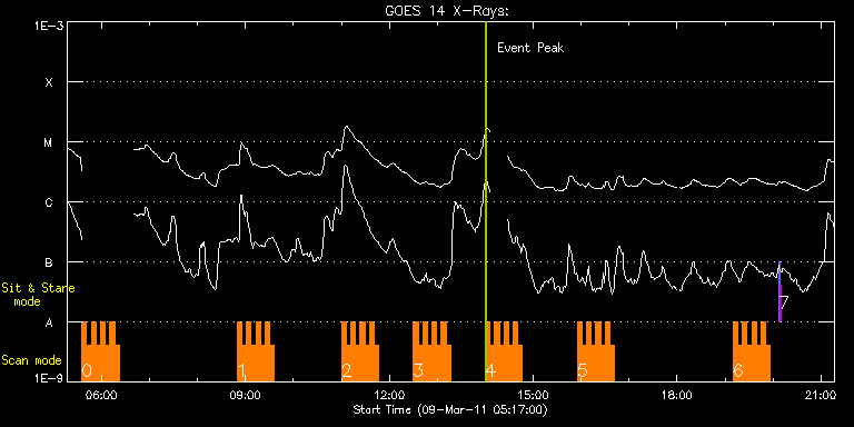 EIS Observation timeline overlay to GOES-Xray curve Code 1" 2" 40" 266" EIS Observations list for this event: STUDY ACRONYM ID DATE OBSERVED DESCRIPTION NOAA# TARGET 0 HH_Flare_180x160_v2 | 21622 | 2011/03/09 05:35:26 | Flare watch AR 11164 | 1164 | Flare TIMELINE ID DATE OBSERVED FITS FILE XCEN (+W/-E) YCEN (+N/-S) DUR ----------------------------------------------------------------------------------------------------------------- 21622 | 2011/03/09 05:35:26.000 | eis_l0_20110309_053526.fits.gz | 872.09 | 413.64 | 5m47s 21622 | 2011/03/09 05:41:16.000 | eis_l0_20110309_054116.fits.gz | 872.25 | 413.49 | 5m47s 21622 | 2011/03/09 05:47:06.000 | eis_l0_20110309_054706.fits.gz | 872.17 | 413.57 | 5m47s 21622 | 2011/03/09 05:52:56.000 | eis_l0_20110309_055256.fits.gz | 872.17 | 413.33 | 5m46s 21622 | 2011/03/09 05:58:45.000 | eis_l0_20110309_055845.fits.gz | 872.25 | 413.41 | 5m46s 21622 | 2011/03/09 06:04:34.000 | eis_l0_20110309_060434.fits.gz | 872.25 | 413.49 | 5m46s 21622 | 2011/03/09 06:10:23.000 | eis_l0_20110309_061023.fits.gz | 872.17 | 413.49 | 5m47s 21622 | 2011/03/09 06:16:13.000 | eis_l0_20110309_061613.fits.gz | 872.09 | 413.49 | 5m46s 1 HH_Flare_180x160_v2 | 21623 | 2011/03/09 08:49:40 | Flare watch AR 11164 | 1164 | Flare TIMELINE ID DATE OBSERVED FITS FILE XCEN (+W/-E) YCEN (+N/-S) DUR ----------------------------------------------------------------------------------------------------------------- 21623 | 2011/03/09 08:49:40.000 | eis_l0_20110309_084940.fits.gz | 872.17 | 413.49 | 5m47s 21623 | 2011/03/09 08:55:29.000 | eis_l0_20110309_085529.fits.gz | 872.17 | 413.49 | 5m47s 21623 | 2011/03/09 09:01:19.000 | eis_l0_20110309_090119.fits.gz | 872.25 | 413.41 | 5m47s 21623 | 2011/03/09 09:07:09.000 | eis_l0_20110309_090709.fits.gz | 872.25 | 413.41 | 5m46s 21623 | 2011/03/09 09:12:58.000 | eis_l0_20110309_091258.fits.gz | 872.25 | 413.41 | 5m46s 21623 | 2011/03/09 09:18:47.000 | eis_l0_20110309_091847.fits.gz | 872.09 | 413.57 | 5m46s 21623 | 2011/03/09 09:24:36.000 | eis_l0_20110309_092436.fits.gz | 872.17 | 413.49 | 5m45s 21623 | 2011/03/09 09:30:24.000 | eis_l0_20110309_093024.fits.gz | 872.17 | 413.41 | 5m46s 2 HH_Flare_180x160_v2 | 21624 | 2011/03/09 11:00:13 | Flare watch AR 11164 | 1164 | Flare TIMELINE ID DATE OBSERVED FITS FILE XCEN (+W/-E) YCEN (+N/-S) DUR ----------------------------------------------------------------------------------------------------------------- 21624 | 2011/03/09 11:00:13.000 | eis_l0_20110309_110013.fits.gz | 872.17 | 413.49 | 5m47s 21624 | 2011/03/09 11:06:03.000 | eis_l0_20110309_110603.fits.gz | 872.17 | 413.41 | 5m47s 21624 | 2011/03/09 11:11:52.000 | eis_l0_20110309_111152.fits.gz | 872.09 | 413.64 | 5m47s 21624 | 2011/03/09 11:17:42.000 | eis_l0_20110309_111742.fits.gz | 872.17 | 413.49 | 5m46s 21624 | 2011/03/09 11:23:31.000 | eis_l0_20110309_112331.fits.gz | 872.17 | 413.49 | 5m47s 21624 | 2011/03/09 11:29:21.000 | eis_l0_20110309_112921.fits.gz | 872.17 | 413.49 | 5m46s 21624 | 2011/03/09 11:35:10.000 | eis_l0_20110309_113510.fits.gz | 872.17 | 413.57 | 5m47s 21624 | 2011/03/09 11:40:59.000 | eis_l0_20110309_114059.fits.gz | 872.25 | 413.49 | 5m47s 3 HH_Flare_180x160_v2 | 21631 | 2011/03/09 12:30:13 | Flare watch AR 11164 | 1164 | Flare TIMELINE ID DATE OBSERVED FITS FILE XCEN (+W/-E) YCEN (+N/-S) DUR ----------------------------------------------------------------------------------------------------------------- 21631 | 2011/03/09 12:30:13.000 | eis_l0_20110309_123013.fits.gz | 872.25 | 413.41 | 5m46s 21631 | 2011/03/09 12:36:02.000 | eis_l0_20110309_123602.fits.gz | 872.25 | 413.57 | 5m46s 21631 | 2011/03/09 12:41:51.000 | eis_l0_20110309_124151.fits.gz | 872.09 | 413.41 | 5m47s 21631 | 2011/03/09 12:47:40.000 | eis_l0_20110309_124740.fits.gz | 872.17 | 413.49 | 5m46s 21631 | 2011/03/09 12:53:29.000 | eis_l0_20110309_125329.fits.gz | 872.17 | 413.49 | 5m46s 21631 | 2011/03/09 12:59:18.000 | eis_l0_20110309_125918.fits.gz | 872.17 | 413.33 | 5m47s 21631 | 2011/03/09 13:05:07.000 | eis_l0_20110309_130507.fits.gz | 872.17 | 413.57 | 5m47s 21631 | 2011/03/09 13:10:57.000 | eis_l0_20110309_131057.fits.gz | 872.09 | 413.57 | 5m46s 4 HH_Flare_180x160_v2 | 21625 | 2011/03/09 14:00:13 | Flare watch AR 11164 | 1164 | Flare TIMELINE ID DATE OBSERVED FITS FILE XCEN (+W/-E) YCEN (+N/-S) DUR ----------------------------------------------------------------------------------------------------------------- 21625 | 2011/03/09 14:00:13.000 | eis_l0_20110309_140013.fits.gz | 872.17 | 413.57 | 5m46s 21625 | 2011/03/09 14:06:02.000 | eis_l0_20110309_140602.fits.gz | 872.17 | 413.49 | 5m46s 21625 | 2011/03/09 14:11:51.000 | eis_l0_20110309_141151.fits.gz | 872.17 | 413.49 | 5m46s 21625 | 2011/03/09 14:17:40.000 | eis_l0_20110309_141740.fits.gz | 872.25 | 413.49 | 5m47s 21625 | 2011/03/09 14:23:29.000 | eis_l0_20110309_142329.fits.gz | 872.09 | 413.49 | 5m47s 21625 | 2011/03/09 14:29:19.000 | eis_l0_20110309_142919.fits.gz | 872.25 | 413.49 | 5m46s 21625 | 2011/03/09 14:35:08.000 | eis_l0_20110309_143508.fits.gz | 872.17 | 413.41 | 5m47s 21625 | 2011/03/09 14:40:57.000 | eis_l0_20110309_144057.fits.gz | 872.17 | 413.49 | 5m47s 5 HH_Flare_180x160_v2 | 21626 | 2011/03/09 15:55:13 | Flare watch AR 11164 | 1164 | Flare TIMELINE ID DATE OBSERVED FITS FILE XCEN (+W/-E) YCEN (+N/-S) DUR ----------------------------------------------------------------------------------------------------------------- 21626 | 2011/03/09 15:55:13.000 | eis_l0_20110309_155513.fits.gz | 872.17 | 413.33 | 5m46s 21626 | 2011/03/09 16:01:02.000 | eis_l0_20110309_160102.fits.gz | 872.25 | 413.41 | 5m46s 21626 | 2011/03/09 16:06:51.000 | eis_l0_20110309_160651.fits.gz | 872.09 | 413.49 | 5m47s 21626 | 2011/03/09 16:12:40.000 | eis_l0_20110309_161240.fits.gz | 872.25 | 413.41 | 5m47s 21626 | 2011/03/09 16:18:30.000 | eis_l0_20110309_161830.fits.gz | 872.17 | 413.49 | 5m46s 21626 | 2011/03/09 16:24:19.000 | eis_l0_20110309_162419.fits.gz | 872.17 | 413.49 | 5m47s 21626 | 2011/03/09 16:30:08.
