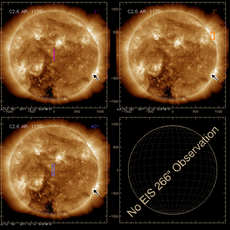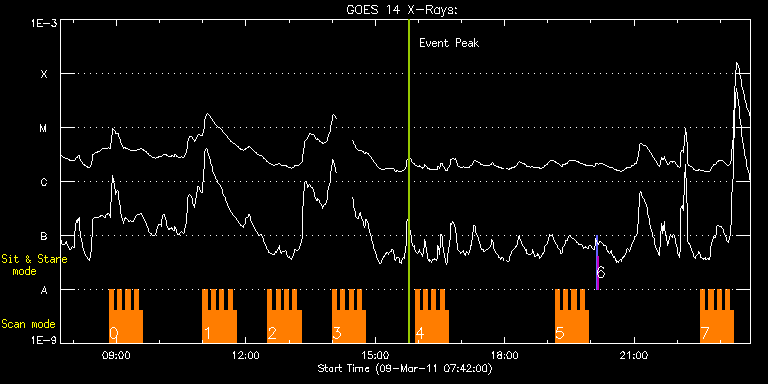 EIS Observation timeline overlay to GOES-Xray curve Code 1" 2" 40" 266" EIS Observations list for this event: STUDY ACRONYM ID DATE OBSERVED DESCRIPTION NOAA# TARGET 0 HH_Flare_180x160_v2 | 21623 | 2011/03/09 08:49:40 | Flare watch AR 11164 | 1164 | Flare TIMELINE ID DATE OBSERVED FITS FILE XCEN (+W/-E) YCEN (+N/-S) DUR ----------------------------------------------------------------------------------------------------------------- 21623 | 2011/03/09 08:49:40.000 | eis_l0_20110309_084940.fits.gz | 872.17 | 413.49 | 5m47s 21623 | 2011/03/09 08:55:29.000 | eis_l0_20110309_085529.fits.gz | 872.17 | 413.49 | 5m47s 21623 | 2011/03/09 09:01:19.000 | eis_l0_20110309_090119.fits.gz | 872.25 | 413.41 | 5m47s 21623 | 2011/03/09 09:07:09.000 | eis_l0_20110309_090709.fits.gz | 872.25 | 413.41 | 5m46s 21623 | 2011/03/09 09:12:58.000 | eis_l0_20110309_091258.fits.gz | 872.25 | 413.41 | 5m46s 21623 | 2011/03/09 09:18:47.000 | eis_l0_20110309_091847.fits.gz | 872.09 | 413.57 | 5m46s 21623 | 2011/03/09 09:24:36.000 | eis_l0_20110309_092436.fits.gz | 872.17 | 413.49 | 5m45s 21623 | 2011/03/09 09:30:24.000 | eis_l0_20110309_093024.fits.gz | 872.17 | 413.41 | 5m46s 1 HH_Flare_180x160_v2 | 21624 | 2011/03/09 11:00:13 | Flare watch AR 11164 | 1164 | Flare TIMELINE ID DATE OBSERVED FITS FILE XCEN (+W/-E) YCEN (+N/-S) DUR ----------------------------------------------------------------------------------------------------------------- 21624 | 2011/03/09 11:00:13.000 | eis_l0_20110309_110013.fits.gz | 872.17 | 413.49 | 5m47s 21624 | 2011/03/09 11:06:03.000 | eis_l0_20110309_110603.fits.gz | 872.17 | 413.41 | 5m47s 21624 | 2011/03/09 11:11:52.000 | eis_l0_20110309_111152.fits.gz | 872.09 | 413.64 | 5m47s 21624 | 2011/03/09 11:17:42.000 | eis_l0_20110309_111742.fits.gz | 872.17 | 413.49 | 5m46s 21624 | 2011/03/09 11:23:31.000 | eis_l0_20110309_112331.fits.gz | 872.17 | 413.49 | 5m47s 21624 | 2011/03/09 11:29:21.000 | eis_l0_20110309_112921.fits.gz | 872.17 | 413.49 | 5m46s 21624 | 2011/03/09 11:35:10.000 | eis_l0_20110309_113510.fits.gz | 872.17 | 413.57 | 5m47s 21624 | 2011/03/09 11:40:59.000 | eis_l0_20110309_114059.fits.gz | 872.25 | 413.49 | 5m47s 2 HH_Flare_180x160_v2 | 21631 | 2011/03/09 12:30:13 | Flare watch AR 11164 | 1164 | Flare TIMELINE ID DATE OBSERVED FITS FILE XCEN (+W/-E) YCEN (+N/-S) DUR ----------------------------------------------------------------------------------------------------------------- 21631 | 2011/03/09 12:30:13.000 | eis_l0_20110309_123013.fits.gz | 872.25 | 413.41 | 5m46s 21631 | 2011/03/09 12:36:02.000 | eis_l0_20110309_123602.fits.gz | 872.25 | 413.57 | 5m46s 21631 | 2011/03/09 12:41:51.000 | eis_l0_20110309_124151.fits.gz | 872.09 | 413.41 | 5m47s 21631 | 2011/03/09 12:47:40.000 | eis_l0_20110309_124740.fits.gz | 872.17 | 413.49 | 5m46s 21631 | 2011/03/09 12:53:29.000 | eis_l0_20110309_125329.fits.gz | 872.17 | 413.49 | 5m46s 21631 | 2011/03/09 12:59:18.000 | eis_l0_20110309_125918.fits.gz | 872.17 | 413.33 | 5m47s 21631 | 2011/03/09 13:05:07.000 | eis_l0_20110309_130507.fits.gz | 872.17 | 413.57 | 5m47s 21631 | 2011/03/09 13:10:57.000 | eis_l0_20110309_131057.fits.gz | 872.09 | 413.57 | 5m46s 3 HH_Flare_180x160_v2 | 21625 | 2011/03/09 14:00:13 | Flare watch AR 11164 | 1164 | Flare TIMELINE ID DATE OBSERVED FITS FILE XCEN (+W/-E) YCEN (+N/-S) DUR ----------------------------------------------------------------------------------------------------------------- 21625 | 2011/03/09 14:00:13.000 | eis_l0_20110309_140013.fits.gz | 872.17 | 413.57 | 5m46s 21625 | 2011/03/09 14:06:02.000 | eis_l0_20110309_140602.fits.gz | 872.17 | 413.49 | 5m46s 21625 | 2011/03/09 14:11:51.000 | eis_l0_20110309_141151.fits.gz | 872.17 | 413.49 | 5m46s 21625 | 2011/03/09 14:17:40.000 | eis_l0_20110309_141740.fits.gz | 872.25 | 413.49 | 5m47s 21625 | 2011/03/09 14:23:29.000 | eis_l0_20110309_142329.fits.gz | 872.09 | 413.49 | 5m47s 21625 | 2011/03/09 14:29:19.000 | eis_l0_20110309_142919.fits.gz | 872.25 | 413.49 | 5m46s 21625 | 2011/03/09 14:35:08.000 | eis_l0_20110309_143508.fits.gz | 872.17 | 413.41 | 5m47s 21625 | 2011/03/09 14:40:57.000 | eis_l0_20110309_144057.fits.gz | 872.17 | 413.49 | 5m47s 4 HH_Flare_180x160_v2 | 21626 | 2011/03/09 15:55:13 | Flare watch AR 11164 | 1164 | Flare TIMELINE ID DATE OBSERVED FITS FILE XCEN (+W/-E) YCEN (+N/-S) DUR ----------------------------------------------------------------------------------------------------------------- 21626 | 2011/03/09 15:55:13.000 | eis_l0_20110309_155513.fits.gz | 872.17 | 413.33 | 5m46s 21626 | 2011/03/09 16:01:02.000 | eis_l0_20110309_160102.fits.gz | 872.25 | 413.41 | 5m46s 21626 | 2011/03/09 16:06:51.000 | eis_l0_20110309_160651.fits.gz | 872.09 | 413.49 | 5m47s 21626 | 2011/03/09 16:12:40.000 | eis_l0_20110309_161240.fits.gz | 872.25 | 413.41 | 5m47s 21626 | 2011/03/09 16:18:30.000 | eis_l0_20110309_161830.fits.gz | 872.17 | 413.49 | 5m46s 21626 | 2011/03/09 16:24:19.000 | eis_l0_20110309_162419.fits.gz | 872.17 | 413.49 | 5m47s 21626 | 2011/03/09 16:30:08.000 | eis_l0_20110309_163008.fits.gz | 872.17 | 413.57 | 5m47s 21626 | 2011/03/09 16:35:58.000 | eis_l0_20110309_163558.fits.gz | 872.17 | 413.57 | 5m47s 5 HH_Flare_180x160_v2 | 21627 | 2011/03/09 19:10:12 | Flare watch AR 11164 | 1164 | Flare TIMELINE ID DATE OBSERVED FITS FILE XCEN (+W/-E) YCEN (+N/-S) DUR ----------------------------------------------------------------------------------------------------------------- 21627 | 2011/03/09 19:10:12.000 | eis_l0_20110309_191012.fits.gz | 872.17 | 413.49 | 5m47s 21627 | 2011/03/09 19:16:02.000 | eis_l0_20110309_191602.fits.gz | 872.25 | 413.33 | 5m47s 21627 | 2011/03/09 19:21:51.000 | eis_l0_20110309_192151.fits.gz | 872.17 | 413.49 | 5m47s 21627 | 2011/03/09 19:27:41.000 | eis_l0_20110309_192741.fits.gz | 872.25 | 413.33 | 5m47s 21627 | 2011/03/09 19:33:31.000 | eis_l0_20110309_193331.fits.gz | 872.17 | 413.49 | 5m46s 21627 | 2011/03/09 19:39:20.000 | eis_l0_20110309_193920.fits.gz | 872.25 | 413.41 | 5m46s 21627 | 2011/03/09 19:45:09.