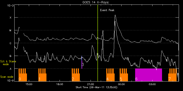 EIS Observation timeline overlay to GOES-Xray curve Code 1" 2" 40" 266" EIS Observations list for this event: STUDY ACRONYM ID DATE OBSERVED DESCRIPTION NOAA# TARGET 0 HH_Flare_180x160_v2 | 21625 | 2011/03/09 14:00:13 | Flare watch AR 11164 | 1164 | Flare TIMELINE ID DATE OBSERVED FITS FILE XCEN (+W/-E) YCEN (+N/-S) DUR ----------------------------------------------------------------------------------------------------------------- 21625 | 2011/03/09 14:00:13.000 | eis_l0_20110309_140013.fits.gz | 872.17 | 413.57 | 5m46s 21625 | 2011/03/09 14:06:02.000 | eis_l0_20110309_140602.fits.gz | 872.17 | 413.49 | 5m46s 21625 | 2011/03/09 14:11:51.000 | eis_l0_20110309_141151.fits.gz | 872.17 | 413.49 | 5m46s 21625 | 2011/03/09 14:17:40.000 | eis_l0_20110309_141740.fits.gz | 872.25 | 413.49 | 5m47s 21625 | 2011/03/09 14:23:29.000 | eis_l0_20110309_142329.fits.gz | 872.09 | 413.49 | 5m47s 21625 | 2011/03/09 14:29:19.000 | eis_l0_20110309_142919.fits.gz | 872.25 | 413.49 | 5m46s 21625 | 2011/03/09 14:35:08.000 | eis_l0_20110309_143508.fits.gz | 872.17 | 413.41 | 5m47s 21625 | 2011/03/09 14:40:57.000 | eis_l0_20110309_144057.fits.gz | 872.17 | 413.49 | 5m47s 1 HH_Flare_180x160_v2 | 21626 | 2011/03/09 15:55:13 | Flare watch AR 11164 | 1164 | Flare TIMELINE ID DATE OBSERVED FITS FILE XCEN (+W/-E) YCEN (+N/-S) DUR ----------------------------------------------------------------------------------------------------------------- 21626 | 2011/03/09 15:55:13.000 | eis_l0_20110309_155513.fits.gz | 872.17 | 413.33 | 5m46s 21626 | 2011/03/09 16:01:02.000 | eis_l0_20110309_160102.fits.gz | 872.25 | 413.41 | 5m46s 21626 | 2011/03/09 16:06:51.000 | eis_l0_20110309_160651.fits.gz | 872.09 | 413.49 | 5m47s 21626 | 2011/03/09 16:12:40.000 | eis_l0_20110309_161240.fits.gz | 872.25 | 413.41 | 5m47s 21626 | 2011/03/09 16:18:30.000 | eis_l0_20110309_161830.fits.gz | 872.17 | 413.49 | 5m46s 21626 | 2011/03/09 16:24:19.000 | eis_l0_20110309_162419.fits.gz | 872.17 | 413.49 | 5m47s 21626 | 2011/03/09 16:30:08.000 | eis_l0_20110309_163008.fits.gz | 872.17 | 413.57 | 5m47s 21626 | 2011/03/09 16:35:58.000 | eis_l0_20110309_163558.fits.gz | 872.17 | 413.57 | 5m47s 2 HH_Flare_180x160_v2 | 21627 | 2011/03/09 19:10:12 | Flare watch AR 11164 | 1164 | Flare TIMELINE ID DATE OBSERVED FITS FILE XCEN (+W/-E) YCEN (+N/-S) DUR ----------------------------------------------------------------------------------------------------------------- 21627 | 2011/03/09 19:10:12.000 | eis_l0_20110309_191012.fits.gz | 872.17 | 413.49 | 5m47s 21627 | 2011/03/09 19:16:02.000 | eis_l0_20110309_191602.fits.gz | 872.25 | 413.33 | 5m47s 21627 | 2011/03/09 19:21:51.000 | eis_l0_20110309_192151.fits.gz | 872.17 | 413.49 | 5m47s 21627 | 2011/03/09 19:27:41.000 | eis_l0_20110309_192741.fits.gz | 872.25 | 413.33 | 5m47s 21627 | 2011/03/09 19:33:31.000 | eis_l0_20110309_193331.fits.gz | 872.17 | 413.49 | 5m46s 21627 | 2011/03/09 19:39:20.000 | eis_l0_20110309_193920.fits.gz | 872.25 | 413.41 | 5m46s 21627 | 2011/03/09 19:45:09.000 | eis_l0_20110309_194509.fits.gz | 872.17 | 413.49 | 5m46s 21627 | 2011/03/09 19:50:58.000 | eis_l0_20110309_195058.fits.gz | 872.25 | 413.49 | 5m46s 3 SYNOP005_A | 21591 | 2011/03/09 20:07:19 | synoptic | | Quiet Sun TIMELINE ID DATE OBSERVED FITS FILE XCEN (+W/-E) YCEN (+N/-S) DUR ----------------------------------------------------------------------------------------------------------------- 21591 | 2011/03/09 20:07:19.000 | eis_l0_20110309_200719.fits.gz | -19.60 | -0.58 | 1m30s 21591 | 2011/03/09 20:09:00.000 | eis_l0_20110309_200900.fits.gz | -0.02 | -0.65 | 1m30s 4 HH_Flare_180x160_v2 | 21628 | 2011/03/09 22:32:26 | Flare watch AR 11164 | 1164 | Flare TIMELINE ID DATE OBSERVED FITS FILE XCEN (+W/-E) YCEN (+N/-S) DUR ----------------------------------------------------------------------------------------------------------------- 21628 | 2011/03/09 22:32:26.000 | eis_l0_20110309_223226.fits.gz | 872.25 | 413.41 | 5m46s 21628 | 2011/03/09 22:38:15.000 | eis_l0_20110309_223815.fits.gz | 872.17 | 413.33 | 5m46s 21628 | 2011/03/09 22:44:04.000 | eis_l0_20110309_224404.fits.gz | 872.17 | 413.49 | 5m46s 21628 | 2011/03/09 22:49:53.000 | eis_l0_20110309_224953.fits.gz | 872.17 | 413.49 | 5m45s 21628 | 2011/03/09 22:55:41.000 | eis_l0_20110309_225541.fits.gz | 872.09 | 413.41 | 5m46s 21628 | 2011/03/09 23:01:30.000 | eis_l0_20110309_230130.fits.gz | 872.25 | 413.49 | 5m46s 21628 | 2011/03/09 23:07:19.000 | eis_l0_20110309_230719.fits.gz | 872.17 | 413.57 | 5m47s 21628 | 2011/03/09 23:13:08.000 | eis_l0_20110309_231308.fits.gz | 872.17 | 413.41 | 5m47s 5 HH_Flare_180x160_v2 | 21629 | 2011/03/09 23:50:12 | Flare watch AR 11164 | 1164 | Flare TIMELINE ID DATE OBSERVED FITS FILE XCEN (+W/-E) YCEN (+N/-S) DUR ----------------------------------------------------------------------------------------------------------------- 21629 | 2011/03/09 23:50:12.000 | eis_l0_20110309_235012.fits.gz | 872.25 | 413.57 | 5m47s 21629 | 2011/03/09 23:56:02.000 | eis_l0_20110309_235602.fits.gz | -9835.29 | -9949.20 | 5m46s 21629 | 2011/03/10 00:01:51.000 | eis_l0_20110310_000151.fits.gz | -9835.29 | -9949.20 | 5m46s 21629 | 2011/03/10 00:07:40.000 | eis_l0_20110310_000740.fits.gz | -9835.29 | -9949.20 | 5m47s 21629 | 2011/03/10 00:13:30.000 | eis_l0_20110310_001330.fits.gz | -9835.29 | -9949.20 | 5m46s 21629 | 2011/03/10 00:19:19.000 | eis_l0_20110310_001919.fits.gz | -9835.29 | -9949.20 | 5m47s 21629 | 2011/03/10 00:25:08.000 | eis_l0_20110310_002508.fits.gz | -9835.29 | -9949.20 | 5m47s 21629 | 2011/03/10 00:30:58.000 | eis_l0_20110310_003058.fits.gz | -9835.29 | -9949.20 | 5m47s 6 HPW015_DETAILED_MAP | 21617 | 2011/03/10 01:20:56 | Active region stereo/cluster quadratur | 1164 | Active Region TIMELINE ID DATE OBSERVED FITS FILE XCEN (+W/-E) YCEN (+N/-S) DUR ----------------------------------------------------------------------------------------------------------------- 21617 | 2011/03/10 01:20:56.000 | eis_l0_20110310_012056.fits.gz | -9844.04 | -9921.20 | 2h35