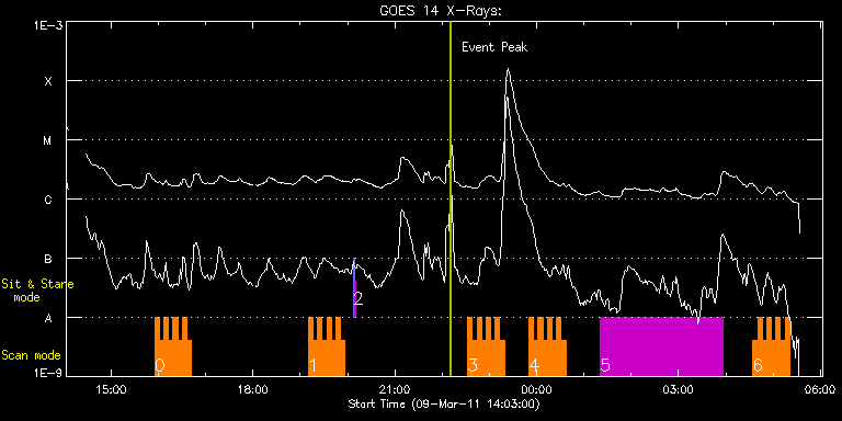 EIS Observation timeline overlay to GOES-Xray curve Code 1" 2" 40" 266" EIS Observations list for this event: STUDY ACRONYM ID DATE OBSERVED DESCRIPTION NOAA# TARGET 0 HH_Flare_180x160_v2 | 21626 | 2011/03/09 15:55:13 | Flare watch AR 11164 | 1164 | Flare TIMELINE ID DATE OBSERVED FITS FILE XCEN (+W/-E) YCEN (+N/-S) DUR ----------------------------------------------------------------------------------------------------------------- 21626 | 2011/03/09 15:55:13.000 | eis_l0_20110309_155513.fits.gz | 872.17 | 413.33 | 5m46s 21626 | 2011/03/09 16:01:02.000 | eis_l0_20110309_160102.fits.gz | 872.25 | 413.41 | 5m46s 21626 | 2011/03/09 16:06:51.000 | eis_l0_20110309_160651.fits.gz | 872.09 | 413.49 | 5m47s 21626 | 2011/03/09 16:12:40.000 | eis_l0_20110309_161240.fits.gz | 872.25 | 413.41 | 5m47s 21626 | 2011/03/09 16:18:30.000 | eis_l0_20110309_161830.fits.gz | 872.17 | 413.49 | 5m46s 21626 | 2011/03/09 16:24:19.000 | eis_l0_20110309_162419.fits.gz | 872.17 | 413.49 | 5m47s 21626 | 2011/03/09 16:30:08.000 | eis_l0_20110309_163008.fits.gz | 872.17 | 413.57 | 5m47s 21626 | 2011/03/09 16:35:58.000 | eis_l0_20110309_163558.fits.gz | 872.17 | 413.57 | 5m47s 1 HH_Flare_180x160_v2 | 21627 | 2011/03/09 19:10:12 | Flare watch AR 11164 | 1164 | Flare TIMELINE ID DATE OBSERVED FITS FILE XCEN (+W/-E) YCEN (+N/-S) DUR ----------------------------------------------------------------------------------------------------------------- 21627 | 2011/03/09 19:10:12.000 | eis_l0_20110309_191012.fits.gz | 872.17 | 413.49 | 5m47s 21627 | 2011/03/09 19:16:02.000 | eis_l0_20110309_191602.fits.gz | 872.25 | 413.33 | 5m47s 21627 | 2011/03/09 19:21:51.000 | eis_l0_20110309_192151.fits.gz | 872.17 | 413.49 | 5m47s 21627 | 2011/03/09 19:27:41.000 | eis_l0_20110309_192741.fits.gz | 872.25 | 413.33 | 5m47s 21627 | 2011/03/09 19:33:31.000 | eis_l0_20110309_193331.fits.gz | 872.17 | 413.49 | 5m46s 21627 | 2011/03/09 19:39:20.000 | eis_l0_20110309_193920.fits.gz | 872.25 | 413.41 | 5m46s 21627 | 2011/03/09 19:45:09.000 | eis_l0_20110309_194509.fits.gz | 872.17 | 413.49 | 5m46s 21627 | 2011/03/09 19:50:58.000 | eis_l0_20110309_195058.fits.gz | 872.25 | 413.49 | 5m46s 2 SYNOP005_A | 21591 | 2011/03/09 20:07:19 | synoptic | | Quiet Sun TIMELINE ID DATE OBSERVED FITS FILE XCEN (+W/-E) YCEN (+N/-S) DUR ----------------------------------------------------------------------------------------------------------------- 21591 | 2011/03/09 20:07:19.000 | eis_l0_20110309_200719.fits.gz | -19.60 | -0.58 | 1m30s 21591 | 2011/03/09 20:09:00.000 | eis_l0_20110309_200900.fits.gz | -0.02 | -0.65 | 1m30s 3 HH_Flare_180x160_v2 | 21628 | 2011/03/09 22:32:26 | Flare watch AR 11164 | 1164 | Flare TIMELINE ID DATE OBSERVED FITS FILE XCEN (+W/-E) YCEN (+N/-S) DUR ----------------------------------------------------------------------------------------------------------------- 21628 | 2011/03/09 22:32:26.000 | eis_l0_20110309_223226.fits.gz | 872.25 | 413.41 | 5m46s 21628 | 2011/03/09 22:38:15.000 | eis_l0_20110309_223815.fits.gz | 872.17 | 413.33 | 5m46s 21628 | 2011/03/09 22:44:04.000 | eis_l0_20110309_224404.fits.gz | 872.17 | 413.49 | 5m46s 21628 | 2011/03/09 22:49:53.000 | eis_l0_20110309_224953.fits.gz | 872.17 | 413.49 | 5m45s 21628 | 2011/03/09 22:55:41.000 | eis_l0_20110309_225541.fits.gz | 872.09 | 413.41 | 5m46s 21628 | 2011/03/09 23:01:30.000 | eis_l0_20110309_230130.fits.gz | 872.25 | 413.49 | 5m46s 21628 | 2011/03/09 23:07:19.000 | eis_l0_20110309_230719.fits.gz | 872.17 | 413.57 | 5m47s 21628 | 2011/03/09 23:13:08.000 | eis_l0_20110309_231308.fits.gz | 872.17 | 413.41 | 5m47s 4 HH_Flare_180x160_v2 | 21629 | 2011/03/09 23:50:12 | Flare watch AR 11164 | 1164 | Flare TIMELINE ID DATE OBSERVED FITS FILE XCEN (+W/-E) YCEN (+N/-S) DUR ----------------------------------------------------------------------------------------------------------------- 21629 | 2011/03/09 23:50:12.000 | eis_l0_20110309_235012.fits.gz | 872.25 | 413.57 | 5m47s 21629 | 2011/03/09 23:56:02.000 | eis_l0_20110309_235602.fits.gz | -9835.29 | -9949.20 | 5m46s 21629 | 2011/03/10 00:01:51.000 | eis_l0_20110310_000151.fits.gz | -9835.29 | -9949.20 | 5m46s 21629 | 2011/03/10 00:07:40.000 | eis_l0_20110310_000740.fits.gz | -9835.29 | -9949.20 | 5m47s 21629 | 2011/03/10 00:13:30.000 | eis_l0_20110310_001330.fits.gz | -9835.29 | -9949.20 | 5m46s 21629 | 2011/03/10 00:19:19.000 | eis_l0_20110310_001919.fits.gz | -9835.29 | -9949.20 | 5m47s 21629 | 2011/03/10 00:25:08.000 | eis_l0_20110310_002508.fits.gz | -9835.29 | -9949.20 | 5m47s 21629 | 2011/03/10 00:30:58.000 | eis_l0_20110310_003058.fits.gz | -9835.29 | -9949.20 | 5m47s 5 HPW015_DETAILED_MAP | 21617 | 2011/03/10 01:20:56 | Active region stereo/cluster quadratur | 1164 | Active Region TIMELINE ID DATE OBSERVED FITS FILE XCEN (+W/-E) YCEN (+N/-S) DUR ----------------------------------------------------------------------------------------------------------------- 21617 | 2011/03/10 01:20:56.000 | eis_l0_20110310_012056.fits.gz | -9844.04 | -9921.20 | 2h35m34s 6 HH_Flare_180x160_v2 | 21630 | 2011/03/10 04:34:26 | Flare watch AR 11164 | 1164 | Flare TIMELINE ID DATE OBSERVED FITS FILE XCEN (+W/-E) YCEN (+N/-S) DUR ----------------------------------------------------------------------------------------------------------------- 21630 | 2011/03/10 04:34:26.000 | eis_l0_20110310_043426.fits.gz | -9835.29 | -9949.20 | 5m46s 21630 | 2011/03/10 04:40:15.000 | eis_l0_20110310_044015.fits.gz | -9835.29 | -9949.20 | 5m47s 21630 | 2011/03/10 04:46:05.000 | eis_l0_20110310_044605.fits.gz | -9835.29 | -9949.20 | 5m47s 21630 | 2011/03/10 04:51:55.000 | eis_l0_20110310_045155.fits.gz | -9835.29 | -9949.20 | 5m47s 21630 | 2011/03/10 04:57:45.000 | eis_l0_20110310_045745.fits.gz | -9835.29 | -9949.20 | 5m46s 21630 | 2011/03/10 05:03:34.000 | eis_l0_20110310_050334.fits.gz | -9835.29 | -9949.20 | 5m47s 21630 | 2011/03/10 05:09:24.000 | eis_l0_20110310_050924.fits.gz | -9835.29 | -9949.20 | 5m46s 21630 | 2011/03/10 05:15:13.000 | eis_l0_20110310_051513.f