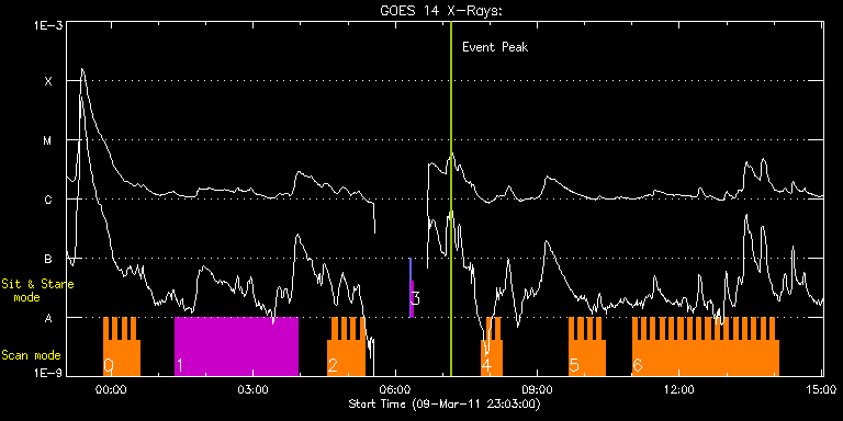 EIS Observation timeline overlay to GOES-Xray curve Code 1" 2" 40" 266" EIS Observations list for this event: STUDY ACRONYM ID DATE OBSERVED DESCRIPTION NOAA# TARGET 0 HH_Flare_180x160_v2 | 21629 | 2011/03/09 23:50:12 | Flare watch AR 11164 | 1164 | Flare TIMELINE ID DATE OBSERVED FITS FILE XCEN (+W/-E) YCEN (+N/-S) DUR ----------------------------------------------------------------------------------------------------------------- 21629 | 2011/03/09 23:50:12.000 | eis_l0_20110309_235012.fits.gz | 872.25 | 413.57 | 5m47s 21629 | 2011/03/09 23:56:02.000 | eis_l0_20110309_235602.fits.gz | -9835.29 | -9949.20 | 5m46s 21629 | 2011/03/10 00:01:51.000 | eis_l0_20110310_000151.fits.gz | -9835.29 | -9949.20 | 5m46s 21629 | 2011/03/10 00:07:40.000 | eis_l0_20110310_000740.fits.gz | -9835.29 | -9949.20 | 5m47s 21629 | 2011/03/10 00:13:30.000 | eis_l0_20110310_001330.fits.gz | -9835.29 | -9949.20 | 5m46s 21629 | 2011/03/10 00:19:19.000 | eis_l0_20110310_001919.fits.gz | -9835.29 | -9949.20 | 5m47s 21629 | 2011/03/10 00:25:08.000 | eis_l0_20110310_002508.fits.gz | -9835.29 | -9949.20 | 5m47s 21629 | 2011/03/10 00:30:58.000 | eis_l0_20110310_003058.fits.gz | -9835.29 | -9949.20 | 5m47s 1 HPW015_DETAILED_MAP | 21617 | 2011/03/10 01:20:56 | Active region stereo/cluster quadratur | 1164 | Active Region TIMELINE ID DATE OBSERVED FITS FILE XCEN (+W/-E) YCEN (+N/-S) DUR ----------------------------------------------------------------------------------------------------------------- 21617 | 2011/03/10 01:20:56.000 | eis_l0_20110310_012056.fits.gz | -9844.04 | -9921.20 | 2h35m34s 2 HH_Flare_180x160_v2 | 21630 | 2011/03/10 04:34:26 | Flare watch AR 11164 | 1164 | Flare TIMELINE ID DATE OBSERVED FITS FILE XCEN (+W/-E) YCEN (+N/-S) DUR ----------------------------------------------------------------------------------------------------------------- 21630 | 2011/03/10 04:34:26.000 | eis_l0_20110310_043426.fits.gz | -9835.29 | -9949.20 | 5m46s 21630 | 2011/03/10 04:40:15.000 | eis_l0_20110310_044015.fits.gz | -9835.29 | -9949.20 | 5m47s 21630 | 2011/03/10 04:46:05.000 | eis_l0_20110310_044605.fits.gz | -9835.29 | -9949.20 | 5m47s 21630 | 2011/03/10 04:51:55.000 | eis_l0_20110310_045155.fits.gz | -9835.29 | -9949.20 | 5m47s 21630 | 2011/03/10 04:57:45.000 | eis_l0_20110310_045745.fits.gz | -9835.29 | -9949.20 | 5m46s 21630 | 2011/03/10 05:03:34.000 | eis_l0_20110310_050334.fits.gz | -9835.29 | -9949.20 | 5m47s 21630 | 2011/03/10 05:09:24.000 | eis_l0_20110310_050924.fits.gz | -9835.29 | -9949.20 | 5m46s 21630 | 2011/03/10 05:15:13.000 | eis_l0_20110310_051513.fits.gz | -9835.29 | -9949.20 | 5m47s 3 SYNOP005_A | 21592 | 2011/03/10 06:18:49 | synoptic | | Quiet Sun TIMELINE ID DATE OBSERVED FITS FILE XCEN (+W/-E) YCEN (+N/-S) DUR ----------------------------------------------------------------------------------------------------------------- 21592 | 2011/03/10 06:18:49.000 | eis_l0_20110310_061849.fits.gz | -9889.00 | -9963.20 | 1m30s 21592 | 2011/03/10 06:20:30.000 | eis_l0_20110310_062030.fits.gz | -9869.50 | -9963.20 | 1m30s 4 HH_Flare_180x160_v2 | 21632 | 2011/03/10 07:49:26 | Flare watch AR 11164 | 1164 | Flare TIMELINE ID DATE OBSERVED FITS FILE XCEN (+W/-E) YCEN (+N/-S) DUR ----------------------------------------------------------------------------------------------------------------- 21632 | 2011/03/10 07:49:26.000 | eis_l0_20110310_074926.fits.gz | -9835.29 | -9949.20 | 5m46s 21632 | 2011/03/10 07:55:15.000 | eis_l0_20110310_075515.fits.gz | -9835.29 | -9949.20 | 5m46s 21632 | 2011/03/10 08:01:04.000 | eis_l0_20110310_080104.fits.gz | -9835.29 | -9949.20 | 5m46s 21632 | 2011/03/10 08:06:53.000 | eis_l0_20110310_080653.fits.gz | -9835.29 | -9949.20 | 5m46s 21632 | 2011/03/10 08:12:42.000 | eis_l0_20110310_081242.fits.gz | -9835.29 | -9949.20 | 2m43s 5 HH_Flare_180x160_v2 | 21671 | 2011/03/10 09:40:14 | Flare watch AR 11166 | | Flare TIMELINE ID DATE OBSERVED FITS FILE XCEN (+W/-E) YCEN (+N/-S) DUR ----------------------------------------------------------------------------------------------------------------- 21671 | 2011/03/10 09:40:14.000 | eis_l0_20110310_094014.fits.gz | -9861.00 | -9953.20 | 5m46s 21671 | 2011/03/10 09:46:02.000 | eis_l0_20110310_094602.fits.gz | -9861.00 | -9953.20 | 5m47s 21671 | 2011/03/10 09:51:52.000 | eis_l0_20110310_095152.fits.gz | -9861.00 | -9953.20 | 5m46s 21671 | 2011/03/10 09:57:41.000 | eis_l0_20110310_095741.fits.gz | -9861.00 | -9953.20 | 5m47s 21671 | 2011/03/10 10:03:30.000 | eis_l0_20110310_100330.fits.gz | -9861.00 | -9953.20 | 5m47s 21671 | 2011/03/10 10:09:20.000 | eis_l0_20110310_100920.fits.gz | -9861.00 | -9953.20 | 5m47s 21671 | 2011/03/10 10:15:09.000 | eis_l0_20110310_101509.fits.gz | -9861.00 | -9953.20 | 5m47s 21671 | 2011/03/10 10:20:59.000 | eis_l0_20110310_102059.fits.gz | -9861.00 | -9953.20 | 5m47s 6 HH_Flare_180x160_v2 | 21672 | 2011/03/10 11:00:13 | Flare watch AR 11166 | | Flare TIMELINE ID DATE OBSERVED FITS FILE XCEN (+W/-E) YCEN (+N/-S) DUR ----------------------------------------------------------------------------------------------------------------- 21672 | 2011/03/10 11:00:13.000 | eis_l0_20110310_110013.fits.gz | -9861.00 | -9953.20 | 5m47s 21672 | 2011/03/10 11:06:03.000 | eis_l0_20110310_110603.fits.gz | -9861.00 | -9953.20 | 5m46s 21672 | 2011/03/10 11:11:52.000 | eis_l0_20110310_111152.fits.gz | -9861.00 | -9953.20 | 5m47s 21672 | 2011/03/10 11:17:42.000 | eis_l0_20110310_111742.fits.gz | -9861.00 | -9953.20 | 5m46s 21672 | 2011/03/10 11:23:31.000 | eis_l0_20110310_112331.fits.gz | -9861.00 | -9953.20 | 5m47s 21672 | 2011/03/10 11:29:20.000 | eis_l0_20110310_112920.fits.gz | -9861.00 | -9953.20 | 5m47s 21672 | 2011/03/10 11:35:10.000 | eis_l0_20110310_113510.fits.gz | -9861.00 | -9953.20 | 5m46s 21672 | 2011/03/10 11:40:59.000 | eis_l0_20110310_114059.fits.gz | -9861.00 | -9953.20 | 5m47s 21672 | 2011/03/10 11:46:49.000 | eis_l0_20110310_114649.fits.gz | -9861.00 | -9953.20 | 5m46s 21672 | 2011/03/10 11:52:37.000 | eis_l0_20110310_115237