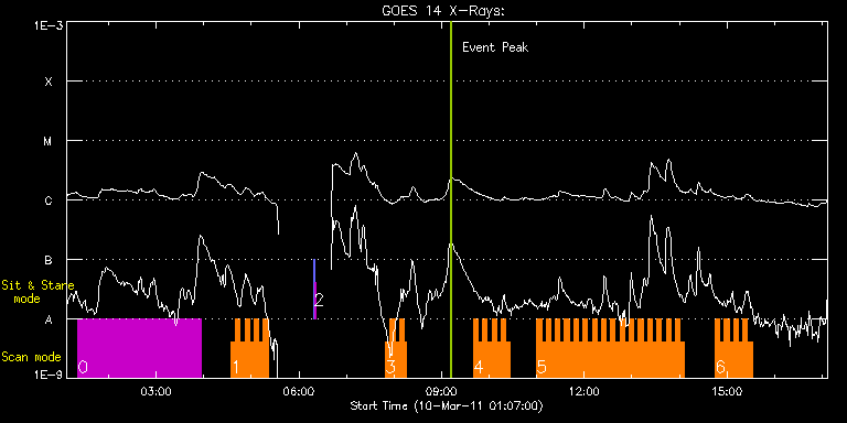 EIS Observation timeline overlay to GOES-Xray curve Code 1" 2" 40" 266" EIS Observations list for this event: STUDY ACRONYM ID DATE OBSERVED DESCRIPTION NOAA# TARGET 0 HPW015_DETAILED_MAP | 21617 | 2011/03/10 01:20:56 | Active region stereo/cluster quadratur | 1164 | Active Region TIMELINE ID DATE OBSERVED FITS FILE XCEN (+W/-E) YCEN (+N/-S) DUR ----------------------------------------------------------------------------------------------------------------- 21617 | 2011/03/10 01:20:56.000 | eis_l0_20110310_012056.fits.gz | -9844.04 | -9921.20 | 2h35m34s 1 HH_Flare_180x160_v2 | 21630 | 2011/03/10 04:34:26 | Flare watch AR 11164 | 1164 | Flare TIMELINE ID DATE OBSERVED FITS FILE XCEN (+W/-E) YCEN (+N/-S) DUR ----------------------------------------------------------------------------------------------------------------- 21630 | 2011/03/10 04:34:26.000 | eis_l0_20110310_043426.fits.gz | -9835.29 | -9949.20 | 5m46s 21630 | 2011/03/10 04:40:15.000 | eis_l0_20110310_044015.fits.gz | -9835.29 | -9949.20 | 5m47s 21630 | 2011/03/10 04:46:05.000 | eis_l0_20110310_044605.fits.gz | -9835.29 | -9949.20 | 5m47s 21630 | 2011/03/10 04:51:55.000 | eis_l0_20110310_045155.fits.gz | -9835.29 | -9949.20 | 5m47s 21630 | 2011/03/10 04:57:45.000 | eis_l0_20110310_045745.fits.gz | -9835.29 | -9949.20 | 5m46s 21630 | 2011/03/10 05:03:34.000 | eis_l0_20110310_050334.fits.gz | -9835.29 | -9949.20 | 5m47s 21630 | 2011/03/10 05:09:24.000 | eis_l0_20110310_050924.fits.gz | -9835.29 | -9949.20 | 5m46s 21630 | 2011/03/10 05:15:13.000 | eis_l0_20110310_051513.fits.gz | -9835.29 | -9949.20 | 5m47s 2 SYNOP005_A | 21592 | 2011/03/10 06:18:49 | synoptic | | Quiet Sun TIMELINE ID DATE OBSERVED FITS FILE XCEN (+W/-E) YCEN (+N/-S) DUR ----------------------------------------------------------------------------------------------------------------- 21592 | 2011/03/10 06:18:49.000 | eis_l0_20110310_061849.fits.gz | -9889.00 | -9963.20 | 1m30s 21592 | 2011/03/10 06:20:30.000 | eis_l0_20110310_062030.fits.gz | -9869.50 | -9963.20 | 1m30s 3 HH_Flare_180x160_v2 | 21632 | 2011/03/10 07:49:26 | Flare watch AR 11164 | 1164 | Flare TIMELINE ID DATE OBSERVED FITS FILE XCEN (+W/-E) YCEN (+N/-S) DUR ----------------------------------------------------------------------------------------------------------------- 21632 | 2011/03/10 07:49:26.000 | eis_l0_20110310_074926.fits.gz | -9835.29 | -9949.20 | 5m46s 21632 | 2011/03/10 07:55:15.000 | eis_l0_20110310_075515.fits.gz | -9835.29 | -9949.20 | 5m46s 21632 | 2011/03/10 08:01:04.000 | eis_l0_20110310_080104.fits.gz | -9835.29 | -9949.20 | 5m46s 21632 | 2011/03/10 08:06:53.000 | eis_l0_20110310_080653.fits.gz | -9835.29 | -9949.20 | 5m46s 21632 | 2011/03/10 08:12:42.000 | eis_l0_20110310_081242.fits.gz | -9835.29 | -9949.20 | 2m43s 4 HH_Flare_180x160_v2 | 21671 | 2011/03/10 09:40:14 | Flare watch AR 11166 | | Flare TIMELINE ID DATE OBSERVED FITS FILE XCEN (+W/-E) YCEN (+N/-S) DUR ----------------------------------------------------------------------------------------------------------------- 21671 | 2011/03/10 09:40:14.000 | eis_l0_20110310_094014.fits.gz | -9861.00 | -9953.20 | 5m46s 21671 | 2011/03/10 09:46:02.000 | eis_l0_20110310_094602.fits.gz | -9861.00 | -9953.20 | 5m47s 21671 | 2011/03/10 09:51:52.000 | eis_l0_20110310_095152.fits.gz | -9861.00 | -9953.20 | 5m46s 21671 | 2011/03/10 09:57:41.000 | eis_l0_20110310_095741.fits.gz | -9861.00 | -9953.20 | 5m47s 21671 | 2011/03/10 10:03:30.000 | eis_l0_20110310_100330.fits.gz | -9861.00 | -9953.20 | 5m47s 21671 | 2011/03/10 10:09:20.000 | eis_l0_20110310_100920.fits.gz | -9861.00 | -9953.20 | 5m47s 21671 | 2011/03/10 10:15:09.000 | eis_l0_20110310_101509.fits.gz | -9861.00 | -9953.20 | 5m47s 21671 | 2011/03/10 10:20:59.000 | eis_l0_20110310_102059.fits.gz | -9861.00 | -9953.20 | 5m47s 5 HH_Flare_180x160_v2 | 21672 | 2011/03/10 11:00:13 | Flare watch AR 11166 | | Flare TIMELINE ID DATE OBSERVED FITS FILE XCEN (+W/-E) YCEN (+N/-S) DUR ----------------------------------------------------------------------------------------------------------------- 21672 | 2011/03/10 11:00:13.000 | eis_l0_20110310_110013.fits.gz | -9861.00 | -9953.20 | 5m47s 21672 | 2011/03/10 11:06:03.000 | eis_l0_20110310_110603.fits.gz | -9861.00 | -9953.20 | 5m46s 21672 | 2011/03/10 11:11:52.000 | eis_l0_20110310_111152.fits.gz | -9861.00 | -9953.20 | 5m47s 21672 | 2011/03/10 11:17:42.000 | eis_l0_20110310_111742.fits.gz | -9861.00 | -9953.20 | 5m46s 21672 | 2011/03/10 11:23:31.000 | eis_l0_20110310_112331.fits.gz | -9861.00 | -9953.20 | 5m47s 21672 | 2011/03/10 11:29:20.000 | eis_l0_20110310_112920.fits.gz | -9861.00 | -9953.20 | 5m47s 21672 | 2011/03/10 11:35:10.000 | eis_l0_20110310_113510.fits.gz | -9861.00 | -9953.20 | 5m46s 21672 | 2011/03/10 11:40:59.000 | eis_l0_20110310_114059.fits.gz | -9861.00 | -9953.20 | 5m47s 21672 | 2011/03/10 11:46:49.000 | eis_l0_20110310_114649.fits.gz | -9861.00 | -9953.20 | 5m46s 21672 | 2011/03/10 11:52:37.000 | eis_l0_20110310_115237.fits.gz | -9861.00 | -9953.20 | 5m47s 21672 | 2011/03/10 11:58:27.000 | eis_l0_20110310_115827.fits.gz | -9861.00 | -9953.20 | 5m46s 21672 | 2011/03/10 12:04:16.000 | eis_l0_20110310_120416.fits.gz | -9861.00 | -9953.20 | 5m46s 21672 | 2011/03/10 12:10:05.000 | eis_l0_20110310_121005.fits.gz | -9861.00 | -9953.20 | 5m46s 21672 | 2011/03/10 12:15:54.000 | eis_l0_20110310_121554.fits.gz | -9861.00 | -9953.20 | 5m47s 21672 | 2011/03/10 12:21:44.000 | eis_l0_20110310_122144.fits.gz | -9861.00 | -9953.20 | 5m47s 21672 | 2011/03/10 12:27:33.000 | eis_l0_20110310_122733.fits.gz | -9861.00 | -9953.20 | 5m47s 21672 | 2011/03/10 12:33:23.000 | eis_l0_20110310_123323.fits.gz | -9861.00 | -9953.20 | 5m46s 21672 | 2011/03/10 12:39:12.000 | eis_l0_20110310_123912.fits.gz | -9861.00 | -9953.20 | 5m47s 21672 | 2011/03/10 12:45:02.000 | eis_l0_20110310_124502.fits.gz | -9861.00 | -9953.20 | 5m47s 21672 | 2011/03/10 12:50:52.000 | eis_l0_20110310_125052.fits.gz | -9861.00 | -9953.20 | 5m46s 21672 | 2011/03/10 12:56:41.000 | eis