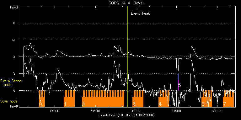 EIS Observation timeline overlay to GOES-Xray curve Code 1" 2" 40" 266" EIS Observations list for this event: STUDY ACRONYM ID DATE OBSERVED DESCRIPTION NOAA# TARGET 0 HH_Flare_180x160_v2 | 21632 | 2011/03/10 07:49:26 | Flare watch AR 11164 | 1164 | Flare TIMELINE ID DATE OBSERVED FITS FILE XCEN (+W/-E) YCEN (+N/-S) DUR ----------------------------------------------------------------------------------------------------------------- 21632 | 2011/03/10 07:49:26.000 | eis_l0_20110310_074926.fits.gz | -9835.29 | -9949.20 | 5m46s 21632 | 2011/03/10 07:55:15.000 | eis_l0_20110310_075515.fits.gz | -9835.29 | -9949.20 | 5m46s 21632 | 2011/03/10 08:01:04.000 | eis_l0_20110310_080104.fits.gz | -9835.29 | -9949.20 | 5m46s 21632 | 2011/03/10 08:06:53.000 | eis_l0_20110310_080653.fits.gz | -9835.29 | -9949.20 | 5m46s 21632 | 2011/03/10 08:12:42.000 | eis_l0_20110310_081242.fits.gz | -9835.29 | -9949.20 | 2m43s 1 HH_Flare_180x160_v2 | 21671 | 2011/03/10 09:40:14 | Flare watch AR 11166 | | Flare TIMELINE ID DATE OBSERVED FITS FILE XCEN (+W/-E) YCEN (+N/-S) DUR ----------------------------------------------------------------------------------------------------------------- 21671 | 2011/03/10 09:40:14.000 | eis_l0_20110310_094014.fits.gz | -9861.00 | -9953.20 | 5m46s 21671 | 2011/03/10 09:46:02.000 | eis_l0_20110310_094602.fits.gz | -9861.00 | -9953.20 | 5m47s 21671 | 2011/03/10 09:51:52.000 | eis_l0_20110310_095152.fits.gz | -9861.00 | -9953.20 | 5m46s 21671 | 2011/03/10 09:57:41.000 | eis_l0_20110310_095741.fits.gz | -9861.00 | -9953.20 | 5m47s 21671 | 2011/03/10 10:03:30.000 | eis_l0_20110310_100330.fits.gz | -9861.00 | -9953.20 | 5m47s 21671 | 2011/03/10 10:09:20.000 | eis_l0_20110310_100920.fits.gz | -9861.00 | -9953.20 | 5m47s 21671 | 2011/03/10 10:15:09.000 | eis_l0_20110310_101509.fits.gz | -9861.00 | -9953.20 | 5m47s 21671 | 2011/03/10 10:20:59.000 | eis_l0_20110310_102059.fits.gz | -9861.00 | -9953.20 | 5m47s 2 HH_Flare_180x160_v2 | 21672 | 2011/03/10 11:00:13 | Flare watch AR 11166 | | Flare TIMELINE ID DATE OBSERVED FITS FILE XCEN (+W/-E) YCEN (+N/-S) DUR ----------------------------------------------------------------------------------------------------------------- 21672 | 2011/03/10 11:00:13.000 | eis_l0_20110310_110013.fits.gz | -9861.00 | -9953.20 | 5m47s 21672 | 2011/03/10 11:06:03.000 | eis_l0_20110310_110603.fits.gz | -9861.00 | -9953.20 | 5m46s 21672 | 2011/03/10 11:11:52.000 | eis_l0_20110310_111152.fits.gz | -9861.00 | -9953.20 | 5m47s 21672 | 2011/03/10 11:17:42.000 | eis_l0_20110310_111742.fits.gz | -9861.00 | -9953.20 | 5m46s 21672 | 2011/03/10 11:23:31.000 | eis_l0_20110310_112331.fits.gz | -9861.00 | -9953.20 | 5m47s 21672 | 2011/03/10 11:29:20.000 | eis_l0_20110310_112920.fits.gz | -9861.00 | -9953.20 | 5m47s 21672 | 2011/03/10 11:35:10.000 | eis_l0_20110310_113510.fits.gz | -9861.00 | -9953.20 | 5m46s 21672 | 2011/03/10 11:40:59.000 | eis_l0_20110310_114059.fits.gz | -9861.00 | -9953.20 | 5m47s 21672 | 2011/03/10 11:46:49.000 | eis_l0_20110310_114649.fits.gz | -9861.00 | -9953.20 | 5m46s 21672 | 2011/03/10 11:52:37.000 | eis_l0_20110310_115237.fits.gz | -9861.00 | -9953.20 | 5m47s 21672 | 2011/03/10 11:58:27.000 | eis_l0_20110310_115827.fits.gz | -9861.00 | -9953.20 | 5m46s 21672 | 2011/03/10 12:04:16.000 | eis_l0_20110310_120416.fits.gz | -9861.00 | -9953.20 | 5m46s 21672 | 2011/03/10 12:10:05.000 | eis_l0_20110310_121005.fits.gz | -9861.00 | -9953.20 | 5m46s 21672 | 2011/03/10 12:15:54.000 | eis_l0_20110310_121554.fits.gz | -9861.00 | -9953.20 | 5m47s 21672 | 2011/03/10 12:21:44.000 | eis_l0_20110310_122144.fits.gz | -9861.00 | -9953.20 | 5m47s 21672 | 2011/03/10 12:27:33.000 | eis_l0_20110310_122733.fits.gz | -9861.00 | -9953.20 | 5m47s 21672 | 2011/03/10 12:33:23.000 | eis_l0_20110310_123323.fits.gz | -9861.00 | -9953.20 | 5m46s 21672 | 2011/03/10 12:39:12.000 | eis_l0_20110310_123912.fits.gz | -9861.00 | -9953.20 | 5m47s 21672 | 2011/03/10 12:45:02.000 | eis_l0_20110310_124502.fits.gz | -9861.00 | -9953.20 | 5m47s 21672 | 2011/03/10 12:50:52.000 | eis_l0_20110310_125052.fits.gz | -9861.00 | -9953.20 | 5m46s 21672 | 2011/03/10 12:56:41.000 | eis_l0_20110310_125641.fits.gz | -9861.00 | -9953.20 | 5m46s 21672 | 2011/03/10 13:02:30.000 | eis_l0_20110310_130230.fits.gz | -9861.00 | -9953.20 | 5m46s 21672 | 2011/03/10 13:08:19.000 | eis_l0_20110310_130819.fits.gz | -9861.00 | -9953.20 | 5m46s 21672 | 2011/03/10 13:14:08.000 | eis_l0_20110310_131408.fits.gz | -9861.00 | -9953.20 | 5m46s 21672 | 2011/03/10 13:19:57.000 | eis_l0_20110310_131957.fits.gz | -9861.00 | -9953.20 | 5m47s 21672 | 2011/03/10 13:25:46.000 | eis_l0_20110310_132546.fits.gz | -9861.00 | -9953.20 | 5m47s 21672 | 2011/03/10 13:31:36.000 | eis_l0_20110310_133136.fits.gz | -9861.00 | -9953.20 | 5m46s 21672 | 2011/03/10 13:37:25.000 | eis_l0_20110310_133725.fits.gz | -9861.00 | -9953.20 | 5m47s 21672 | 2011/03/10 13:43:14.000 | eis_l0_20110310_134314.fits.gz | -9861.00 | -9953.20 | 5m47s 21672 | 2011/03/10 13:49:04.000 | eis_l0_20110310_134904.fits.gz | -9861.00 | -9953.20 | 5m47s 21672 | 2011/03/10 13:54:53.000 | eis_l0_20110310_135453.fits.gz | -9861.00 | -9953.20 | 5m47s 21672 | 2011/03/10 14:00:43.000 | eis_l0_20110310_140043.fits.gz | -9861.00 | -9953.20 | 5m46s 3 HH_Flare_180x160_v2 | 21673 | 2011/03/10 14:45:13 | Flare watch AR 11166 | | Flare TIMELINE ID DATE OBSERVED FITS FILE XCEN (+W/-E) YCEN (+N/-S) DUR ----------------------------------------------------------------------------------------------------------------- 21673 | 2011/03/10 14:45:13.000 | eis_l0_20110310_144513.fits.gz | -9861.00 | -9953.20 | 5m46s 21673 | 2011/03/10 14:51:02.000 | eis_l0_20110310_145102.fits.gz | -9861.00 | -9953.20 | 5m46s 21673 | 2011/03/10 14:56:51.000 | eis_l0_20110310_145651.fits.gz | -9861.00 | -9953.20 | 5m47s 21673 | 2011/03/10 15:02:40.000 | eis_l0_20110310_150240.fits.gz | -9861.00 | -9953.20 | 5m46s 21673 | 2011/03/10 15:08:29.000 | eis_l0_20110310_150829.fits.gz | -9861.00 | -9953.20 | 5m47s 21673 | 2011/03/10 