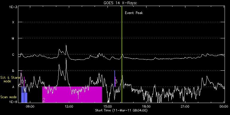 EIS Observation timeline overlay to GOES-Xray curve Code 1" 2" 40" 266" EIS Observations list for this event: STUDY ACRONYM ID DATE OBSERVED DESCRIPTION NOAA# TARGET 0 Alignment_modify_v2 | 21656 | 2011/03/11 08:17:20 | Alignment East Limb | | Quiet Sun TIMELINE ID DATE OBSERVED FITS FILE XCEN (+W/-E) YCEN (+N/-S) DUR ----------------------------------------------------------------------------------------------------------------- 21656 | 2011/03/11 08:17:20.000 | eis_l0_20110311_081720.fits.gz | -9854.52 | -9963.20 | 1m 21656 | 2011/03/11 08:18:45.000 | eis_l0_20110311_081845.fits.gz | -9893.96 | -9963.20 | 2m34s 21656 | 2011/03/11 08:21:53.000 | eis_l0_20110311_082153.fits.gz | -9893.96 | -9963.20 | 2m34s 21656 | 2011/03/11 08:25:00.000 | eis_l0_20110311_082500.fits.gz | -9893.96 | -9963.20 | 2m34s 21656 | 2011/03/11 08:28:08.000 | eis_l0_20110311_082808.fits.gz | -9893.96 | -9963.20 | 2m34s 1 Alignment_modify_v2 | 21657 | 2011/03/11 08:31:50 | Alignment East Limb | | Quiet Sun TIMELINE ID DATE OBSERVED FITS FILE XCEN (+W/-E) YCEN (+N/-S) DUR ----------------------------------------------------------------------------------------------------------------- 21657 | 2011/03/11 08:31:50.000 | eis_l0_20110311_083150.fits.gz | -9854.52 | -9963.20 | 1m 21657 | 2011/03/11 08:33:15.000 | eis_l0_20110311_083315.fits.gz | -9893.96 | -9963.20 | 2m34s 21657 | 2011/03/11 08:36:23.000 | eis_l0_20110311_083623.fits.gz | -9893.96 | -9963.20 | 2m34s 21657 | 2011/03/11 08:39:30.000 | eis_l0_20110311_083930.fits.gz | -9893.96 | -9963.20 | 2m34s 21657 | 2011/03/11 08:42:38.000 | eis_l0_20110311_084238.fits.gz | -9893.96 | -9963.20 | 2m34s 2 SK_CH_DIAG_320x384 | 21637 | 2011/03/11 09:57:19 | HOP 81 | | Coronal Hole TIMELINE ID DATE OBSERVED FITS FILE XCEN (+W/-E) YCEN (+N/-S) DUR ----------------------------------------------------------------------------------------------------------------- 21637 | 2011/03/11 09:57:19.000 | eis_l0_20110311_095719.fits.gz | -9869.25 | -9963.20 | 4h35m36s 3 SYNOP005_A | 21635 | 2011/03/11 15:32:33 | synoptic | | Quiet Sun TIMELINE ID DATE OBSERVED FITS FILE XCEN (+W/-E) YCEN (+N/-S) DUR ----------------------------------------------------------------------------------------------------------------- 21635 | 2011/03/11 15:32:33.000 | eis_l0_20110311_153233.fits.gz | -9889.00 | -9963.20 | 1m30s 21635 | 2011/03/11 15:34:14.000 | eis_l0_20110311_153414.fits.gz | -9869.50 | -9963.20 | 1m30s : Check study information : Download file : View thumbnails For this event, also check for:
