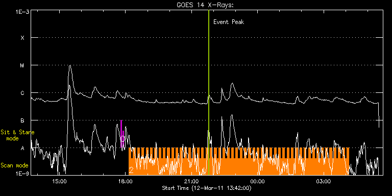 EIS Observation timeline overlay to GOES-Xray curve Code 1" 2" 40" 266" EIS Observations list for this event: STUDY ACRONYM ID DATE OBSERVED DESCRIPTION NOAA# TARGET 0 regcal071 | 21684 | 2011/03/12 17:46:12 | Dark exposures, CCD bottom rows (100s | | Engineering TIMELINE ID DATE OBSERVED FITS FILE XCEN (+W/-E) YCEN (+N/-S) DUR ----------------------------------------------------------------------------------------------------------------- 21684 | 2011/03/12 17:46:12.000 | eis_l0_20110312_174612.fits.gz | 710.36 | -87.89 | 3m22s 1 regcal072 | 21685 | 2011/03/12 17:52:32 | Dark exposures, top CCD rows (100s exp | | Engineering TIMELINE ID DATE OBSERVED FITS FILE XCEN (+W/-E) YCEN (+N/-S) DUR ----------------------------------------------------------------------------------------------------------------- 21685 | 2011/03/12 17:52:32.000 | eis_l0_20110312_175232.fits.gz | 711.13 | 423.03 | 3m22s 2 HH_Flare_180x160_v2 | 21686 | 2011/03/12 18:09:14 | Fast scans for flare observations. | 1166 | Flare TIMELINE ID DATE OBSERVED FITS FILE XCEN (+W/-E) YCEN (+N/-S) DUR ----------------------------------------------------------------------------------------------------------------- 21686 | 2011/03/12 18:09:14.000 | eis_l0_20110312_180914.fits.gz | 696.56 | 216.88 | 5m46s 21686 | 2011/03/12 18:15:03.000 | eis_l0_20110312_181503.fits.gz | 697.18 | 216.64 | 5m46s 21686 | 2011/03/12 18:20:52.000 | eis_l0_20110312_182052.fits.gz | 697.80 | 216.57 | 5m46s 21686 | 2011/03/12 18:26:41.000 | eis_l0_20110312_182641.fits.gz | 698.26 | 216.57 | 5m46s 21686 | 2011/03/12 18:32:30.000 | eis_l0_20110312_183230.fits.gz | 698.96 | 216.41 | 5m46s 21686 | 2011/03/12 18:38:19.000 | eis_l0_20110312_183819.fits.gz | 699.58 | 216.33 | 5m47s 21686 | 2011/03/12 18:44:08.000 | eis_l0_20110312_184408.fits.gz | 700.12 | 216.26 | 5m47s 21686 | 2011/03/12 18:49:58.000 | eis_l0_20110312_184958.fits.gz | 700.81 | 216.18 | 5m47s 21686 | 2011/03/12 18:55:48.000 | eis_l0_20110312_185548.fits.gz | 701.35 | 216.18 | 5m46s 21686 | 2011/03/12 19:01:37.000 | eis_l0_20110312_190137.fits.gz | 701.97 | 216.02 | 5m47s 21686 | 2011/03/12 19:07:27.000 | eis_l0_20110312_190727.fits.gz | 702.59 | 215.87 | 5m46s 21686 | 2011/03/12 19:13:16.000 | eis_l0_20110312_191316.fits.gz | 703.21 | 215.87 | 5m46s 21686 | 2011/03/12 19:19:04.000 | eis_l0_20110312_191904.fits.gz | 703.90 | 215.72 | 5m46s 21686 | 2011/03/12 19:24:53.000 | eis_l0_20110312_192453.fits.gz | 704.37 | 215.64 | 5m45s 21686 | 2011/03/12 19:30:41.000 | eis_l0_20110312_193041.fits.gz | 704.98 | 215.56 | 5m47s 21686 | 2011/03/12 19:36:30.000 | eis_l0_20110312_193630.fits.gz | 705.53 | 215.56 | 5m47s 21686 | 2011/03/12 19:42:20.000 | eis_l0_20110312_194220.fits.gz | 706.30 | 215.41 | 5m46s 21686 | 2011/03/12 19:48:09.000 | eis_l0_20110312_194809.fits.gz | 706.84 | 215.33 | 5m47s 21686 | 2011/03/12 19:53:59.000 | eis_l0_20110312_195359.fits.gz | 707.46 | 215.25 | 5m47s 21686 | 2011/03/12 19:59:48.000 | eis_l0_20110312_195948.fits.gz | 708.07 | 215.10 | 5m47s 21686 | 2011/03/12 20:05:38.000 | eis_l0_20110312_200538.fits.gz | 708.54 | 215.18 | 5m46s 21686 | 2011/03/12 20:11:27.000 | eis_l0_20110312_201127.fits.gz | 709.23 | 214.94 | 5m46s 21686 | 2011/03/12 20:17:16.000 | eis_l0_20110312_201716.fits.gz | 709.93 | 214.79 | 5m46s 21686 | 2011/03/12 20:23:05.000 | eis_l0_20110312_202305.fits.gz | 710.39 | 214.71 | 5m46s 21686 | 2011/03/12 20:28:54.000 | eis_l0_20110312_202854.fits.gz | 711.09 | 214.79 | 5m46s 21686 | 2011/03/12 20:34:42.000 | eis_l0_20110312_203442.fits.gz | 711.71 | 214.71 | 5m47s 21686 | 2011/03/12 20:40:32.000 | eis_l0_20110312_204032.fits.gz | 712.24 | 214.71 | 5m46s 21686 | 2011/03/12 20:46:21.000 | eis_l0_20110312_204621.fits.gz | 712.86 | 214.48 | 5m47s 21686 | 2011/03/12 20:52:11.000 | eis_l0_20110312_205211.fits.gz | 713.40 | 214.48 | 5m47s 21686 | 2011/03/12 20:58:00.000 | eis_l0_20110312_205800.fits.gz | 714.02 | 214.25 | 5m47s 21686 | 2011/03/12 21:03:50.000 | eis_l0_20110312_210350.fits.gz | 714.64 | 214.25 | 5m46s 21686 | 2011/03/12 21:09:39.000 | eis_l0_20110312_210939.fits.gz | 715.26 | 213.94 | 5m47s 21686 | 2011/03/12 21:15:29.000 | eis_l0_20110312_211529.fits.gz | 715.88 | 213.86 | 5m46s 21686 | 2011/03/12 21:21:18.000 | eis_l0_20110312_212118.fits.gz | 716.42 | 213.94 | 5m46s 21686 | 2011/03/12 21:27:07.000 | eis_l0_20110312_212707.fits.gz | 716.96 | 213.94 | 5m46s 21686 | 2011/03/12 21:32:56.000 | eis_l0_20110312_213256.fits.gz | 717.58 | 213.71 | 5m46s 21686 | 2011/03/12 21:38:44.000 | eis_l0_20110312_213844.fits.gz | 718.19 | 213.71 | 5m47s 21686 | 2011/03/12 21:44:34.000 | eis_l0_20110312_214434.fits.gz | 718.81 | 213.63 | 5m46s 21686 | 2011/03/12 21:50:23.000 | eis_l0_20110312_215023.fits.gz | 719.35 | 213.48 | 5m47s 21686 | 2011/03/12 21:56:12.000 | eis_l0_20110312_215612.fits.gz | 720.05 | 213.40 | 5m47s 21686 | 2011/03/12 22:02:02.000 | eis_l0_20110312_220202.fits.gz | 720.51 | 213.40 | 5m47s 21686 | 2011/03/12 22:07:52.000 | eis_l0_20110312_220752.fits.gz | 721.21 | 213.24 | 5m46s 21686 | 2011/03/12 22:13:41.000 | eis_l0_20110312_221341.fits.gz | 721.67 | 213.24 | 5m47s 21686 | 2011/03/12 22:19:31.000 | eis_l0_20110312_221931.fits.gz | 722.29 | 213.09 | 5m47s 21686 | 2011/03/12 22:25:20.000 | eis_l0_20110312_222520.fits.gz | 722.91 | 213.01 | 5m47s 21686 | 2011/03/12 22:31:10.000 | eis_l0_20110312_223110.fits.gz | 723.52 | 212.86 | 5m47s 21686 | 2011/03/12 22:37:00.000 | eis_l0_20110312_223700.fits.gz | 724.06 | 212.78 | 5m46s 21686 | 2011/03/12 22:42:49.000 | eis_l0_20110312_224249.fits.gz | 724.60 | 212.70 | 5m46s 21686 | 2011/03/12 22:48:38.000 | eis_l0_20110312_224838.fits.gz | 725.22 | 212.63 | 5m46s 21686 | 2011/03/12 22:54:27.000 | eis_l0_20110312_225427.fits.gz | 725.76 | 212.63 | 5m46s 21686 | 2011/03/12 23:00:15.000 | eis_l0_20110312_230015.fits.gz | 726.46 | 212.47 | 5m47s 21686 | 2011/03/12 23:06:05.000 | eis_l0_20110312_230605.fits.gz | 727.00 | 212.39 | 5m46s 21686 | 2011/03/12 23:11:54.000 | eis_l0_20110312_231154.fits.gz | 727.54 | 212