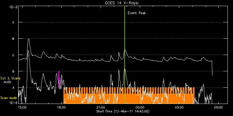 EIS Observation timeline overlay to GOES-Xray curve Code 1" 2" 40" 266" EIS Observations list for this event: STUDY ACRONYM ID DATE OBSERVED DESCRIPTION NOAA# TARGET 0 regcal071 | 21684 | 2011/03/12 17:46:12 | Dark exposures, CCD bottom rows (100s | | Engineering TIMELINE ID DATE OBSERVED FITS FILE XCEN (+W/-E) YCEN (+N/-S) DUR ----------------------------------------------------------------------------------------------------------------- 21684 | 2011/03/12 17:46:12.000 | eis_l0_20110312_174612.fits.gz | 710.36 | -87.89 | 3m22s 1 regcal072 | 21685 | 2011/03/12 17:52:32 | Dark exposures, top CCD rows (100s exp | | Engineering TIMELINE ID DATE OBSERVED FITS FILE XCEN (+W/-E) YCEN (+N/-S) DUR ----------------------------------------------------------------------------------------------------------------- 21685 | 2011/03/12 17:52:32.000 | eis_l0_20110312_175232.fits.gz | 711.13 | 423.03 | 3m22s 2 HH_Flare_180x160_v2 | 21686 | 2011/03/12 18:09:14 | Fast scans for flare observations. | 1166 | Flare TIMELINE ID DATE OBSERVED FITS FILE XCEN (+W/-E) YCEN (+N/-S) DUR ----------------------------------------------------------------------------------------------------------------- 21686 | 2011/03/12 18:09:14.000 | eis_l0_20110312_180914.fits.gz | 696.56 | 216.88 | 5m46s 21686 | 2011/03/12 18:15:03.000 | eis_l0_20110312_181503.fits.gz | 697.18 | 216.64 | 5m46s 21686 | 2011/03/12 18:20:52.000 | eis_l0_20110312_182052.fits.gz | 697.80 | 216.57 | 5m46s 21686 | 2011/03/12 18:26:41.000 | eis_l0_20110312_182641.fits.gz | 698.26 | 216.57 | 5m46s 21686 | 2011/03/12 18:32:30.000 | eis_l0_20110312_183230.fits.gz | 698.96 | 216.41 | 5m46s 21686 | 2011/03/12 18:38:19.000 | eis_l0_20110312_183819.fits.gz | 699.58 | 216.33 | 5m47s 21686 | 2011/03/12 18:44:08.000 | eis_l0_20110312_184408.fits.gz | 700.12 | 216.26 | 5m47s 21686 | 2011/03/12 18:49:58.000 | eis_l0_20110312_184958.fits.gz | 700.81 | 216.18 | 5m47s 21686 | 2011/03/12 18:55:48.000 | eis_l0_20110312_185548.fits.gz | 701.35 | 216.18 | 5m46s 21686 | 2011/03/12 19:01:37.000 | eis_l0_20110312_190137.fits.gz | 701.97 | 216.02 | 5m47s 21686 | 2011/03/12 19:07:27.000 | eis_l0_20110312_190727.fits.gz | 702.59 | 215.87 | 5m46s 21686 | 2011/03/12 19:13:16.000 | eis_l0_20110312_191316.fits.gz | 703.21 | 215.87 | 5m46s 21686 | 2011/03/12 19:19:04.000 | eis_l0_20110312_191904.fits.gz | 703.90 | 215.72 | 5m46s 21686 | 2011/03/12 19:24:53.000 | eis_l0_20110312_192453.fits.gz | 704.37 | 215.64 | 5m45s 21686 | 2011/03/12 19:30:41.000 | eis_l0_20110312_193041.fits.gz | 704.98 | 215.56 | 5m47s 21686 | 2011/03/12 19:36:30.000 | eis_l0_20110312_193630.fits.gz | 705.53 | 215.56 | 5m47s 21686 | 2011/03/12 19:42:20.000 | eis_l0_20110312_194220.fits.gz | 706.30 | 215.41 | 5m46s 21686 | 2011/03/12 19:48:09.000 | eis_l0_20110312_194809.fits.gz | 706.84 | 215.33 | 5m47s 21686 | 2011/03/12 19:53:59.000 | eis_l0_20110312_195359.fits.gz | 707.46 | 215.25 | 5m47s 21686 | 2011/03/12 19:59:48.000 | eis_l0_20110312_195948.fits.gz | 708.07 | 215.10 | 5m47s 21686 | 2011/03/12 20:05:38.000 | eis_l0_20110312_200538.fits.gz | 708.54 | 215.18 | 5m46s 21686 | 2011/03/12 20:11:27.000 | eis_l0_20110312_201127.fits.gz | 709.23 | 214.94 | 5m46s 21686 | 2011/03/12 20:17:16.000 | eis_l0_20110312_201716.fits.gz | 709.93 | 214.79 | 5m46s 21686 | 2011/03/12 20:23:05.000 | eis_l0_20110312_202305.fits.gz | 710.39 | 214.71 | 5m46s 21686 | 2011/03/12 20:28:54.000 | eis_l0_20110312_202854.fits.gz | 711.09 | 214.79 | 5m46s 21686 | 2011/03/12 20:34:42.000 | eis_l0_20110312_203442.fits.gz | 711.71 | 214.71 | 5m47s 21686 | 2011/03/12 20:40:32.000 | eis_l0_20110312_204032.fits.gz | 712.24 | 214.71 | 5m46s 21686 | 2011/03/12 20:46:21.000 | eis_l0_20110312_204621.fits.gz | 712.86 | 214.48 | 5m47s 21686 | 2011/03/12 20:52:11.000 | eis_l0_20110312_205211.fits.gz | 713.40 | 214.48 | 5m47s 21686 | 2011/03/12 20:58:00.000 | eis_l0_20110312_205800.fits.gz | 714.02 | 214.25 | 5m47s 21686 | 2011/03/12 21:03:50.000 | eis_l0_20110312_210350.fits.gz | 714.64 | 214.25 | 5m46s 21686 | 2011/03/12 21:09:39.000 | eis_l0_20110312_210939.fits.gz | 715.26 | 213.94 | 5m47s 21686 | 2011/03/12 21:15:29.000 | eis_l0_20110312_211529.fits.gz | 715.88 | 213.86 | 5m46s 21686 | 2011/03/12 21:21:18.000 | eis_l0_20110312_212118.fits.gz | 716.42 | 213.94 | 5m46s 21686 | 2011/03/12 21:27:07.000 | eis_l0_20110312_212707.fits.gz | 716.96 | 213.94 | 5m46s 21686 | 2011/03/12 21:32:56.000 | eis_l0_20110312_213256.fits.gz | 717.58 | 213.71 | 5m46s 21686 | 2011/03/12 21:38:44.000 | eis_l0_20110312_213844.fits.gz | 718.19 | 213.71 | 5m47s 21686 | 2011/03/12 21:44:34.000 | eis_l0_20110312_214434.fits.gz | 718.81 | 213.63 | 5m46s 21686 | 2011/03/12 21:50:23.000 | eis_l0_20110312_215023.fits.gz | 719.35 | 213.48 | 5m47s 21686 | 2011/03/12 21:56:12.000 | eis_l0_20110312_215612.fits.gz | 720.05 | 213.40 | 5m47s 21686 | 2011/03/12 22:02:02.000 | eis_l0_20110312_220202.fits.gz | 720.51 | 213.40 | 5m47s 21686 | 2011/03/12 22:07:52.000 | eis_l0_20110312_220752.fits.gz | 721.21 | 213.24 | 5m46s 21686 | 2011/03/12 22:13:41.000 | eis_l0_20110312_221341.fits.gz | 721.67 | 213.24 | 5m47s 21686 | 2011/03/12 22:19:31.000 | eis_l0_20110312_221931.fits.gz | 722.29 | 213.09 | 5m47s 21686 | 2011/03/12 22:25:20.000 | eis_l0_20110312_222520.fits.gz | 722.91 | 213.01 | 5m47s 21686 | 2011/03/12 22:31:10.000 | eis_l0_20110312_223110.fits.gz | 723.52 | 212.86 | 5m47s 21686 | 2011/03/12 22:37:00.000 | eis_l0_20110312_223700.fits.gz | 724.06 | 212.78 | 5m46s 21686 | 2011/03/12 22:42:49.000 | eis_l0_20110312_224249.fits.gz | 724.60 | 212.70 | 5m46s 21686 | 2011/03/12 22:48:38.000 | eis_l0_20110312_224838.fits.gz | 725.22 | 212.63 | 5m46s 21686 | 2011/03/12 22:54:27.000 | eis_l0_20110312_225427.fits.gz | 725.76 | 212.63 | 5m46s 21686 | 2011/03/12 23:00:15.000 | eis_l0_20110312_230015.fits.gz | 726.46 | 212.47 | 5m47s 21686 | 2011/03/12 23:06:05.000 | eis_l0_20110312_230605.fits.gz | 727.00 | 212.39 | 5m46s 21686 | 2011/03/12 23:11:54.000 | eis_l0_20110312_231154.fits.gz | 727.54 | 212