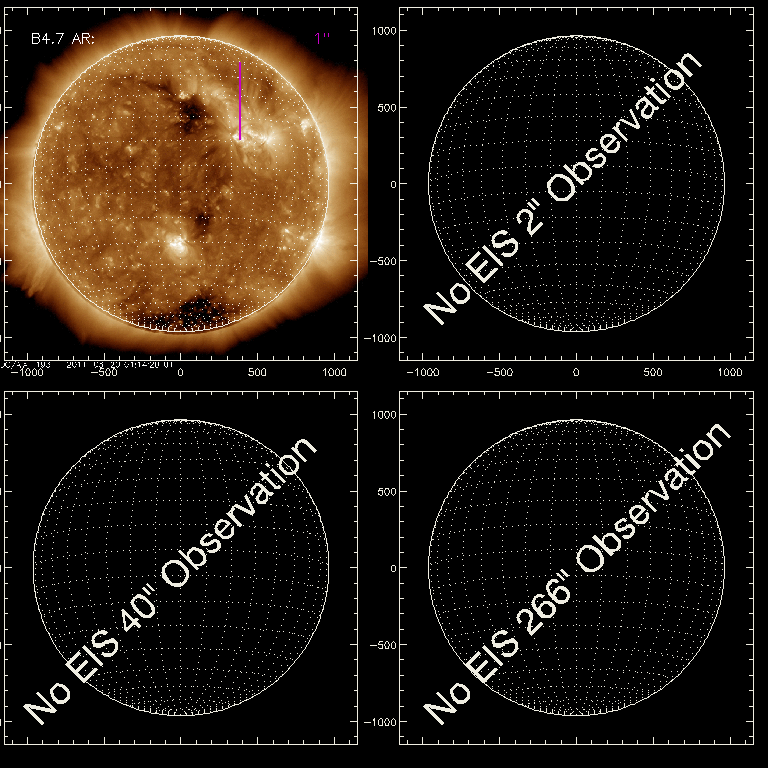 EIS Observation timeline overlay to GOES-Xray curve Code 1" 2" 40" 266" EIS Observations list for this event: STUDY ACRONYM ID DATE OBSERVED DESCRIPTION NOAA# TARGET 0 regcal072 | 21702 | 2011/03/19 17:18:00 | Dark exposures, top CCD rows (100s exp | | Engineering TIMELINE ID DATE OBSERVED FITS FILE XCEN (+W/-E) YCEN (+N/-S) DUR ----------------------------------------------------------------------------------------------------------------- 21702 | 2011/03/19 17:18:00.000 | eis_l0_20110319_171800.fits.gz | 386.15 | 536.58 | 3m22s : Check study information : Download file : View thumbnails For this event, also check for: