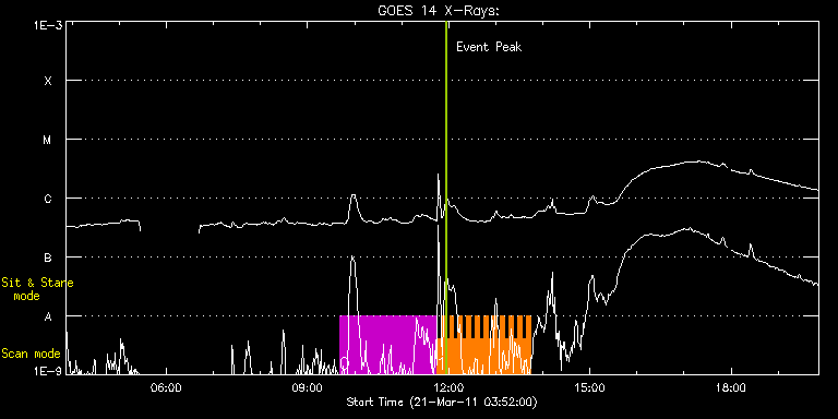 EIS Observation timeline overlay to GOES-Xray curve Code 1" 2" 40" 266" EIS Observations list for this event: STUDY ACRONYM ID DATE OBSERVED DESCRIPTION NOAA# TARGET 0 HPW021_VEL_240x512v1 | 21705 | 2011/03/21 09:40:38 | Detailed diagnostic scan of active reg | 1175 | Active Region TIMELINE ID DATE OBSERVED FITS FILE XCEN (+W/-E) YCEN (+N/-S) DUR ----------------------------------------------------------------------------------------------------------------- 21705 | 2011/03/21 09:40:38.000 | eis_l0_20110321_094038.fits.gz | 669.93 | 234.24 | 2h3m47s 1 IUU_SCAN_STEPS_002 | 21706 | 2011/03/21 11:44:43 | Fast scans of active region core. | | Active Region TIMELINE ID DATE OBSERVED FITS FILE XCEN (+W/-E) YCEN (+N/-S) DUR ----------------------------------------------------------------------------------------------------------------- 21706 | 2011/03/21 11:44:43.000 | eis_l0_20110321_114443.fits.gz | 681.60 | 302.62 | 5m24s 21706 | 2011/03/21 11:50:10.000 | eis_l0_20110321_115010.fits.gz | 682.14 | 302.46 | 5m24s 21706 | 2011/03/21 11:55:37.000 | eis_l0_20110321_115537.fits.gz | 682.68 | 302.39 | 5m24s 21706 | 2011/03/21 12:01:04.000 | eis_l0_20110321_120104.fits.gz | 683.22 | 302.31 | 5m23s 21706 | 2011/03/21 12:06:31.000 | eis_l0_20110321_120631.fits.gz | 683.76 | 302.16 | 5m23s 21706 | 2011/03/21 12:11:58.000 | eis_l0_20110321_121158.fits.gz | 684.30 | 302.23 | 5m23s 21706 | 2011/03/21 12:17:24.000 | eis_l0_20110321_121724.fits.gz | 684.92 | 302.08 | 5m24s 21706 | 2011/03/21 12:22:51.000 | eis_l0_20110321_122251.fits.gz | 685.54 | 301.92 | 5m23s 21706 | 2011/03/21 12:28:18.000 | eis_l0_20110321_122818.fits.gz | 686.08 | 301.92 | 5m23s 21706 | 2011/03/21 12:33:44.000 | eis_l0_20110321_123344.fits.gz | 686.62 | 301.92 | 5m24s 21706 | 2011/03/21 12:39:11.000 | eis_l0_20110321_123911.fits.gz | 687.16 | 301.77 | 5m24s 21706 | 2011/03/21 12:44:38.000 | eis_l0_20110321_124438.fits.gz | 687.70 | 301.69 | 5m24s 21706 | 2011/03/21 12:50:05.000 | eis_l0_20110321_125005.fits.gz | 688.32 | 301.54 | 5m23s 21706 | 2011/03/21 12:55:32.000 | eis_l0_20110321_125532.fits.gz | 688.78 | 301.46 | 5m23s 21706 | 2011/03/21 13:00:59.000 | eis_l0_20110321_130059.fits.gz | 689.32 | 301.61 | 5m23s 21706 | 2011/03/21 13:06:25.000 | eis_l0_20110321_130625.fits.gz | 689.86 | 301.46 | 5m24s 21706 | 2011/03/21 13:11:52.000 | eis_l0_20110321_131152.fits.gz | 690.40 | 301.31 | 5m24s 21706 | 2011/03/21 13:17:19.000 | eis_l0_20110321_131719.fits.gz | 691.02 | 301.38 | 5m23s 21706 | 2011/03/21 13:22:46.000 | eis_l0_20110321_132246.fits.gz | 691.56 | 301.15 | 5m23s 21706 | 2011/03/21 13:28:12.000 | eis_l0_20110321_132812.fits.gz | 692.18 | 301.00 | 5m24s 21706 | 2011/03/21 13:33:39.000 | eis_l0_20110321_133339.fits.gz | 692.64 | 301.08 | 5m23s 21706 | 2011/03/21 13:39:06.000 | eis_l0_20110321_133906.fits.gz | 693.18 | 300.84 | 5m23s : Check study information : Download file : View thumbnails For this event, also check for: