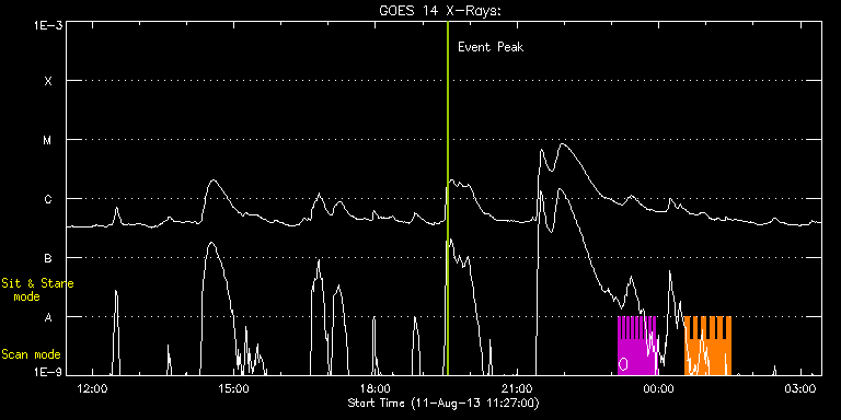 EIS Observation timeline overlay to GOES-Xray curve