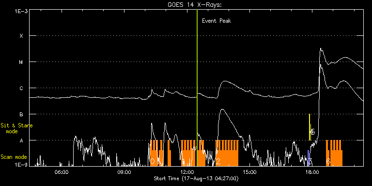 EIS Observation timeline overlay to GOES-Xray curve Code 1" 2" 40" 266" EIS Observations list for this event: STUDY ACRONYM ID DATE OBSERVED DESCRIPTION NOAA# TARGET 0 HH_Flare_162x152 | 35709 | 2013/08/17 10:14:42 | AR Observations | 1818 | Flare TIMELINE ID DATE OBSERVED FITS FILE XCEN (+W/-E) YCEN (+N/-S) DUR ----------------------------------------------------------------------------------------------------------------- 35709 | 2013/08/17 10:14:42.000 | eis_l0_20130817_101442.fits.gz | 382.95 | -214.48 | 4m11s 35709 | 2013/08/17 10:18:55.000 | eis_l0_20130817_101855.fits.gz | 383.57 | -214.40 | 4m11s 35709 | 2013/08/17 10:23:09.000 | eis_l0_20130817_102309.fits.gz | 384.18 | -214.63 | 4m10s 35709 | 2013/08/17 10:27:22.000 | eis_l0_20130817_102722.fits.gz | 384.73 | -214.48 | 4m11s 35709 | 2013/08/17 10:31:36.000 | eis_l0_20130817_103136.fits.gz | 385.34 | -214.40 | 4m10s 35709 | 2013/08/17 10:40:03.000 | eis_l0_20130817_104003.fits.gz | 386.50 | -214.48 | 4m10s 35709 | 2013/08/17 10:44:16.000 | eis_l0_20130817_104416.fits.gz | 387.12 | -214.32 | 4m11s 35709 | 2013/08/17 10:48:29.000 | eis_l0_20130817_104829.fits.gz | 387.82 | -214.40 | 4m11s 35709 | 2013/08/17 11:05:23.000 | eis_l0_20130817_110523.fits.gz | 390.05 | -214.09 | 4m11s 35709 | 2013/08/17 11:09:37.000 | eis_l0_20130817_110937.fits.gz | 390.67 | -214.17 | 4m10s 1 HH_Flare_162x152 | 35710 | 2013/08/17 11:44:14 | AR Observations | | Flare TIMELINE ID DATE OBSERVED FITS FILE XCEN (+W/-E) YCEN (+N/-S) DUR ----------------------------------------------------------------------------------------------------------------- 35710 | 2013/08/17 11:44:14.000 | eis_l0_20130817_114414.fits.gz | 395.39 | -213.70 | 4m10s 35710 | 2013/08/17 11:48:27.000 | eis_l0_20130817_114827.fits.gz | 396.00 | -213.86 | 4m11s 35710 | 2013/08/17 11:52:41.000 | eis_l0_20130817_115241.fits.gz | 396.54 | -213.78 | 4m10s 35710 | 2013/08/17 11:56:54.000 | eis_l0_20130817_115654.fits.gz | 397.24 | -213.86 | 4m11s 35710 | 2013/08/17 12:01:07.000 | eis_l0_20130817_120107.fits.gz | 397.70 | -213.78 | 4m11s 35710 | 2013/08/17 12:05:21.000 | eis_l0_20130817_120521.fits.gz | 398.32 | -213.78 | 4m10s 35710 | 2013/08/17 12:09:34.000 | eis_l0_20130817_120934.fits.gz | 399.09 | -213.86 | 4m11s 35710 | 2013/08/17 12:13:48.000 | eis_l0_20130817_121348.fits.gz | 399.63 | -213.86 | 4m10s 35710 | 2013/08/17 12:18:01.000 | eis_l0_20130817_121801.fits.gz | 400.10 | -213.86 | 4m11s 35710 | 2013/08/17 12:30:41.000 | eis_l0_20130817_123041.fits.gz | 401.87 | -213.63 | 4m11s 35710 | 2013/08/17 12:34:55.000 | eis_l0_20130817_123455.fits.gz | 402.34 | -213.70 | 4m10s 35710 | 2013/08/17 12:39:08.000 | eis_l0_20130817_123908.fits.gz | 402.95 | -213.70 | 4m11s 35710 | 2013/08/17 12:43:22.000 | eis_l0_20130817_124322.fits.gz | 403.57 | -213.63 | 4m10s 35710 | 2013/08/17 12:47:35.000 | eis_l0_20130817_124735.fits.gz | 404.19 | -213.47 | 4m11s 2 HH_Flare_162x152 | 35711 | 2013/08/17 13:23:14 | AR Observations | | Flare TIMELINE ID DATE OBSERVED FITS FILE XCEN (+W/-E) YCEN (+N/-S) DUR ----------------------------------------------------------------------------------------------------------------- 35711 | 2013/08/17 13:23:14.000 | eis_l0_20130817_132314.fits.gz | 409.14 | -213.32 | 4m10s 35711 | 2013/08/17 13:27:27.000 | eis_l0_20130817_132727.fits.gz | 409.75 | -213.24 | 4m11s 35711 | 2013/08/17 13:31:40.000 | eis_l0_20130817_133140.fits.gz | 410.22 | -213.16 | 4m11s 35711 | 2013/08/17 13:35:54.000 | eis_l0_20130817_133554.fits.gz | 410.83 | -213.09 | 4m11s 35711 | 2013/08/17 13:40:08.000 | eis_l0_20130817_134008.fits.gz | 411.45 | -213.09 | 4m10s 35711 | 2013/08/17 13:44:21.000 | eis_l0_20130817_134421.fits.gz | 411.92 | -213.09 | 4m10s 35711 | 2013/08/17 13:48:34.000 | eis_l0_20130817_134834.fits.gz | 412.53 | -213.01 | 4m11s 35711 | 2013/08/17 13:52:48.000 | eis_l0_20130817_135248.fits.gz | 413.08 | -213.01 | 4m10s 35711 | 2013/08/17 13:57:01.000 | eis_l0_20130817_135701.fits.gz | 413.69 | -213.01 | 4m11s 35711 | 2013/08/17 14:01:14.000 | eis_l0_20130817_140114.fits.gz | 414.31 | -213.01 | 4m11s 35711 | 2013/08/17 14:05:28.000 | eis_l0_20130817_140528.fits.gz | 414.85 | -213.01 | 4m11s 35711 | 2013/08/17 14:09:41.000 | eis_l0_20130817_140941.fits.gz | 415.47 | -213.01 | 4m11s 35711 | 2013/08/17 14:13:55.000 | eis_l0_20130817_141355.fits.gz | 416.01 | -212.85 | 4m11s 35711 | 2013/08/17 14:18:08.000 | eis_l0_20130817_141808.fits.gz | 416.63 | -212.93 | 4m11s 35711 | 2013/08/17 14:22:22.000 | eis_l0_20130817_142222.fits.gz | 417.17 | -212.85 | 4m10s 3 PRY_slot_contextLITE | 35681 | 2013/08/17 17:47:21 | Change of EIS pointing and alignment w | | Active Region TIMELINE ID DATE OBSERVED FITS FILE XCEN (+W/-E) YCEN (+N/-S) DUR ----------------------------------------------------------------------------------------------------------------- 35681 | 2013/08/17 17:47:21.000 | eis_l0_20130817_174721.fits.gz | -15.29 | -0.35 | 2m56s 4 Alignment_266 | 35682 | 2013/08/17 17:51:27 | Change of EIS pointing and alignment w | | Quiet Sun TIMELINE ID DATE OBSERVED FITS FILE XCEN (+W/-E) YCEN (+N/-S) DUR ----------------------------------------------------------------------------------------------------------------- 35682 | 2013/08/17 17:51:27.000 | eis_l0_20130817_175127.fits.gz | -132.57 | -0.42 | 1m22s 5 XRT_synop_AIA | 35683 | 2013/08/17 17:54:41 | Change of EIS pointing and alignment w | | Quiet Sun TIMELINE ID DATE OBSERVED FITS FILE XCEN (+W/-E) YCEN (+N/-S) DUR ----------------------------------------------------------------------------------------------------------------- 35683 | 2013/08/17 17:54:41.000 | eis_l0_20130817_175441.fits.gz | -132.49 | -0.58 | 10s 6 HH_Flare_162x152 | 35713 | 2013/08/17 18:39:21 | AR Observations | | Flare TIMELINE ID DATE OBSERVED FITS FILE XCEN (+W/-E) YCEN (+N/-S) DUR ----------------------------------------------------------------------------------------------------------------- 35713 | 2013/08/17 18:39:21.000 | eis_l0_20130817_183921.fits.gz | 451.85 | -210.69 | 4m1