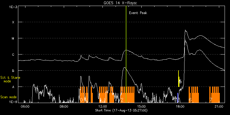 EIS Observation timeline overlay to GOES-Xray curve Code 1" 2" 40" 266" EIS Observations list for this event: STUDY ACRONYM ID DATE OBSERVED DESCRIPTION NOAA# TARGET 0 HH_Flare_162x152 | 35709 | 2013/08/17 10:14:42 | AR Observations | 1818 | Flare TIMELINE ID DATE OBSERVED FITS FILE XCEN (+W/-E) YCEN (+N/-S) DUR ----------------------------------------------------------------------------------------------------------------- 35709 | 2013/08/17 10:14:42.000 | eis_l0_20130817_101442.fits.gz | 382.95 | -214.48 | 4m11s 35709 | 2013/08/17 10:18:55.000 | eis_l0_20130817_101855.fits.gz | 383.57 | -214.40 | 4m11s 35709 | 2013/08/17 10:23:09.000 | eis_l0_20130817_102309.fits.gz | 384.18 | -214.63 | 4m10s 35709 | 2013/08/17 10:27:22.000 | eis_l0_20130817_102722.fits.gz | 384.73 | -214.48 | 4m11s 35709 | 2013/08/17 10:31:36.000 | eis_l0_20130817_103136.fits.gz | 385.34 | -214.40 | 4m10s 35709 | 2013/08/17 10:40:03.000 | eis_l0_20130817_104003.fits.gz | 386.50 | -214.48 | 4m10s 35709 | 2013/08/17 10:44:16.000 | eis_l0_20130817_104416.fits.gz | 387.12 | -214.32 | 4m11s 35709 | 2013/08/17 10:48:29.000 | eis_l0_20130817_104829.fits.gz | 387.82 | -214.40 | 4m11s 35709 | 2013/08/17 11:05:23.000 | eis_l0_20130817_110523.fits.gz | 390.05 | -214.09 | 4m11s 35709 | 2013/08/17 11:09:37.000 | eis_l0_20130817_110937.fits.gz | 390.67 | -214.17 | 4m10s 1 HH_Flare_162x152 | 35710 | 2013/08/17 11:44:14 | AR Observations | | Flare TIMELINE ID DATE OBSERVED FITS FILE XCEN (+W/-E) YCEN (+N/-S) DUR ----------------------------------------------------------------------------------------------------------------- 35710 | 2013/08/17 11:44:14.000 | eis_l0_20130817_114414.fits.gz | 395.39 | -213.70 | 4m10s 35710 | 2013/08/17 11:48:27.000 | eis_l0_20130817_114827.fits.gz | 396.00 | -213.86 | 4m11s 35710 | 2013/08/17 11:52:41.000 | eis_l0_20130817_115241.fits.gz | 396.54 | -213.78 | 4m10s 35710 | 2013/08/17 11:56:54.000 | eis_l0_20130817_115654.fits.gz | 397.24 | -213.86 | 4m11s 35710 | 2013/08/17 12:01:07.000 | eis_l0_20130817_120107.fits.gz | 397.70 | -213.78 | 4m11s 35710 | 2013/08/17 12:05:21.000 | eis_l0_20130817_120521.fits.gz | 398.32 | -213.78 | 4m10s 35710 | 2013/08/17 12:09:34.000 | eis_l0_20130817_120934.fits.gz | 399.09 | -213.86 | 4m11s 35710 | 2013/08/17 12:13:48.000 | eis_l0_20130817_121348.fits.gz | 399.63 | -213.86 | 4m10s 35710 | 2013/08/17 12:18:01.000 | eis_l0_20130817_121801.fits.gz | 400.10 | -213.86 | 4m11s 35710 | 2013/08/17 12:30:41.000 | eis_l0_20130817_123041.fits.gz | 401.87 | -213.63 | 4m11s 35710 | 2013/08/17 12:34:55.000 | eis_l0_20130817_123455.fits.gz | 402.34 | -213.70 | 4m10s 35710 | 2013/08/17 12:39:08.000 | eis_l0_20130817_123908.fits.gz | 402.95 | -213.70 | 4m11s 35710 | 2013/08/17 12:43:22.000 | eis_l0_20130817_124322.fits.gz | 403.57 | -213.63 | 4m10s 35710 | 2013/08/17 12:47:35.000 | eis_l0_20130817_124735.fits.gz | 404.19 | -213.47 | 4m11s 2 HH_Flare_162x152 | 35711 | 2013/08/17 13:23:14 | AR Observations | | Flare TIMELINE ID DATE OBSERVED FITS FILE XCEN (+W/-E) YCEN (+N/-S) DUR ----------------------------------------------------------------------------------------------------------------- 35711 | 2013/08/17 13:23:14.000 | eis_l0_20130817_132314.fits.gz | 409.14 | -213.32 | 4m10s 35711 | 2013/08/17 13:27:27.000 | eis_l0_20130817_132727.fits.gz | 409.75 | -213.24 | 4m11s 35711 | 2013/08/17 13:31:40.000 | eis_l0_20130817_133140.fits.gz | 410.22 | -213.16 | 4m11s 35711 | 2013/08/17 13:35:54.000 | eis_l0_20130817_133554.fits.gz | 410.83 | -213.09 | 4m11s 35711 | 2013/08/17 13:40:08.000 | eis_l0_20130817_134008.fits.gz | 411.45 | -213.09 | 4m10s 35711 | 2013/08/17 13:44:21.000 | eis_l0_20130817_134421.fits.gz | 411.92 | -213.09 | 4m10s 35711 | 2013/08/17 13:48:34.000 | eis_l0_20130817_134834.fits.gz | 412.53 | -213.01 | 4m11s 35711 | 2013/08/17 13:52:48.000 | eis_l0_20130817_135248.fits.gz | 413.08 | -213.01 | 4m10s 35711 | 2013/08/17 13:57:01.000 | eis_l0_20130817_135701.fits.gz | 413.69 | -213.01 | 4m11s 35711 | 2013/08/17 14:01:14.000 | eis_l0_20130817_140114.fits.gz | 414.31 | -213.01 | 4m11s 35711 | 2013/08/17 14:05:28.000 | eis_l0_20130817_140528.fits.gz | 414.85 | -213.01 | 4m11s 35711 | 2013/08/17 14:09:41.000 | eis_l0_20130817_140941.fits.gz | 415.47 | -213.01 | 4m11s 35711 | 2013/08/17 14:13:55.000 | eis_l0_20130817_141355.fits.gz | 416.01 | -212.85 | 4m11s 35711 | 2013/08/17 14:18:08.000 | eis_l0_20130817_141808.fits.gz | 416.63 | -212.93 | 4m11s 35711 | 2013/08/17 14:22:22.000 | eis_l0_20130817_142222.fits.gz | 417.17 | -212.85 | 4m10s 3 PRY_slot_contextLITE | 35681 | 2013/08/17 17:47:21 | Change of EIS pointing and alignment w | | Active Region TIMELINE ID DATE OBSERVED FITS FILE XCEN (+W/-E) YCEN (+N/-S) DUR ----------------------------------------------------------------------------------------------------------------- 35681 | 2013/08/17 17:47:21.000 | eis_l0_20130817_174721.fits.gz | -15.29 | -0.35 | 2m56s 4 Alignment_266 | 35682 | 2013/08/17 17:51:27 | Change of EIS pointing and alignment w | | Quiet Sun TIMELINE ID DATE OBSERVED FITS FILE XCEN (+W/-E) YCEN (+N/-S) DUR ----------------------------------------------------------------------------------------------------------------- 35682 | 2013/08/17 17:51:27.000 | eis_l0_20130817_175127.fits.gz | -132.57 | -0.42 | 1m22s 5 XRT_synop_AIA | 35683 | 2013/08/17 17:54:41 | Change of EIS pointing and alignment w | | Quiet Sun TIMELINE ID DATE OBSERVED FITS FILE XCEN (+W/-E) YCEN (+N/-S) DUR ----------------------------------------------------------------------------------------------------------------- 35683 | 2013/08/17 17:54:41.000 | eis_l0_20130817_175441.fits.gz | -132.49 | -0.58 | 10s 6 HH_Flare_162x152 | 35713 | 2013/08/17 18:39:21 | AR Observations | | Flare TIMELINE ID DATE OBSERVED FITS FILE XCEN (+W/-E) YCEN (+N/-S) DUR ----------------------------------------------------------------------------------------------------------------- 35713 | 2013/08/17 18:39:21.000 | eis_l0_20130817_183921.fits.gz | 451.85 | -210.69 | 4m1